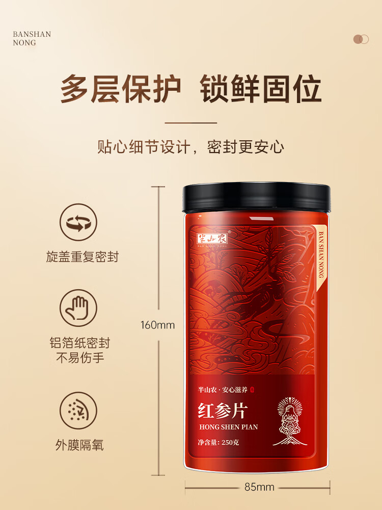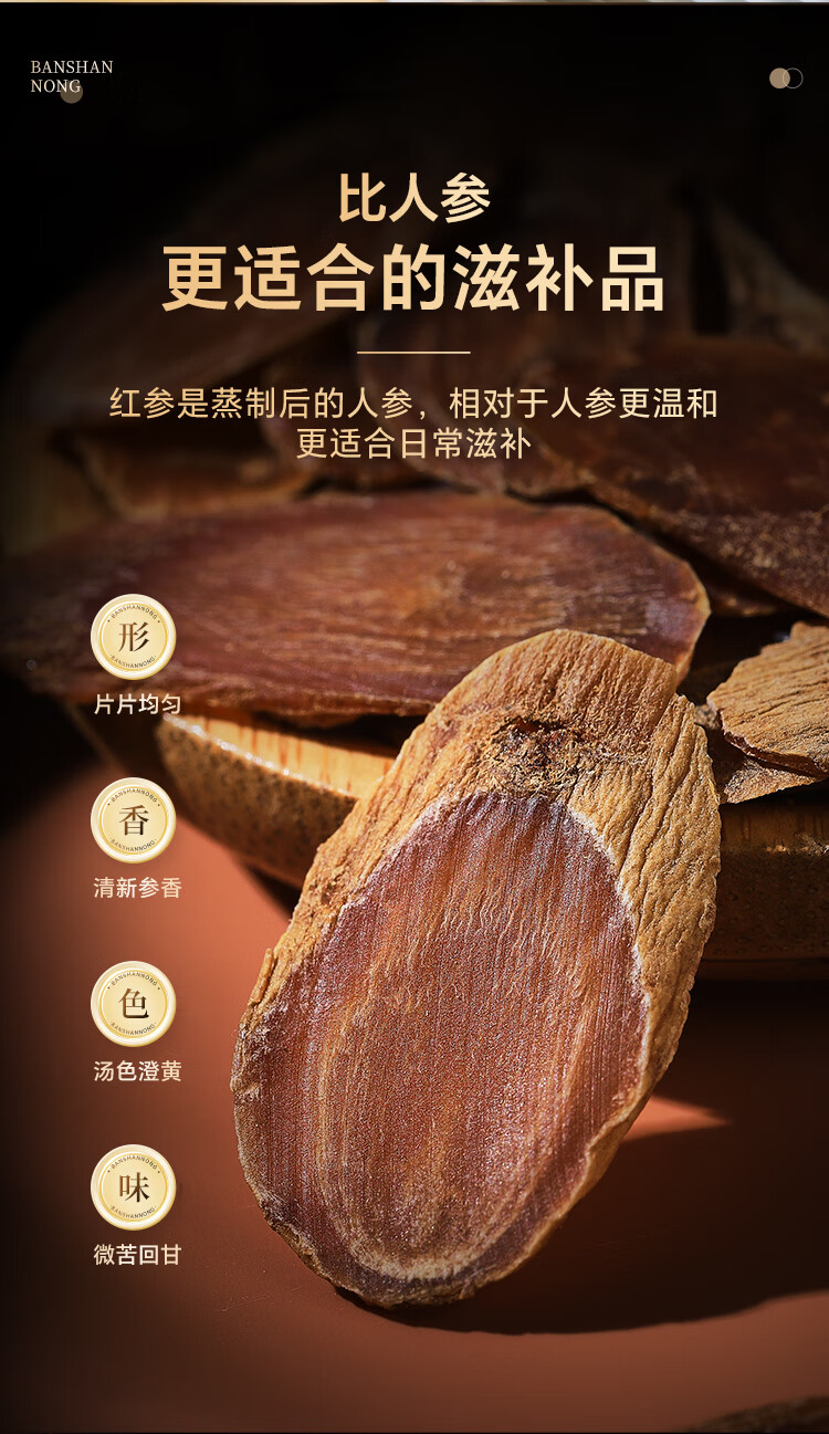 半山农 红参片250g正宗长白山红人参非高丽参 老年人补品过年礼品送长辈