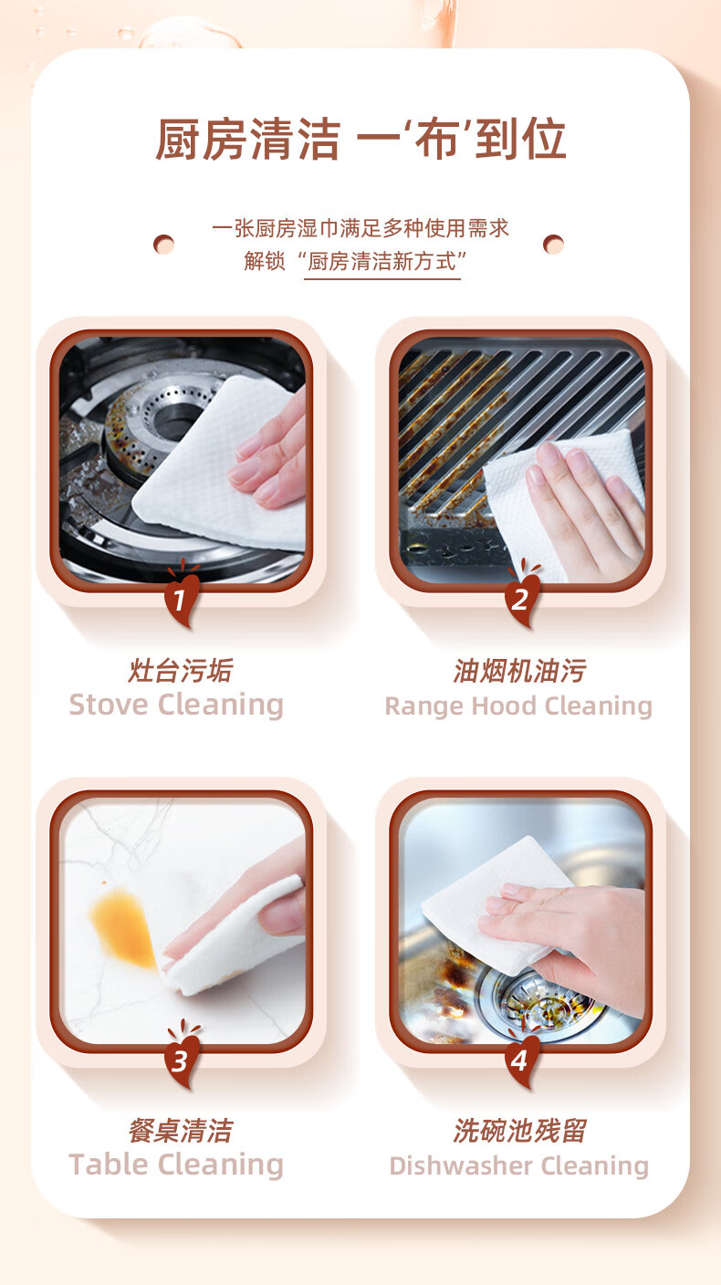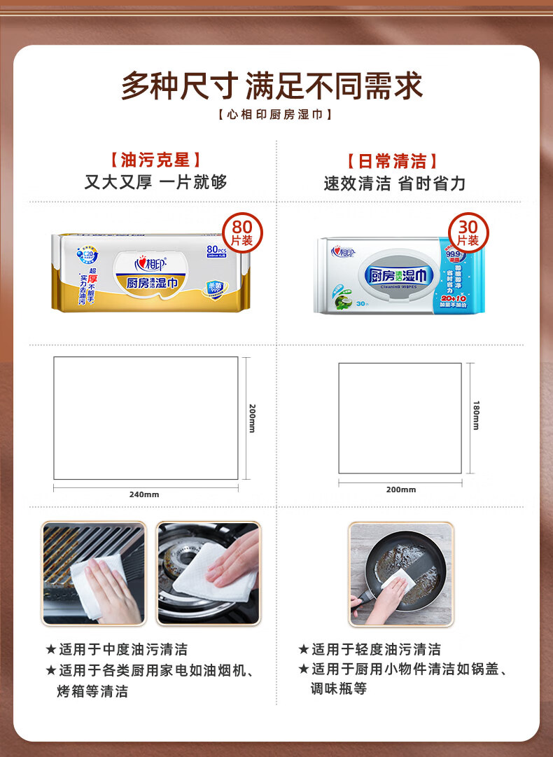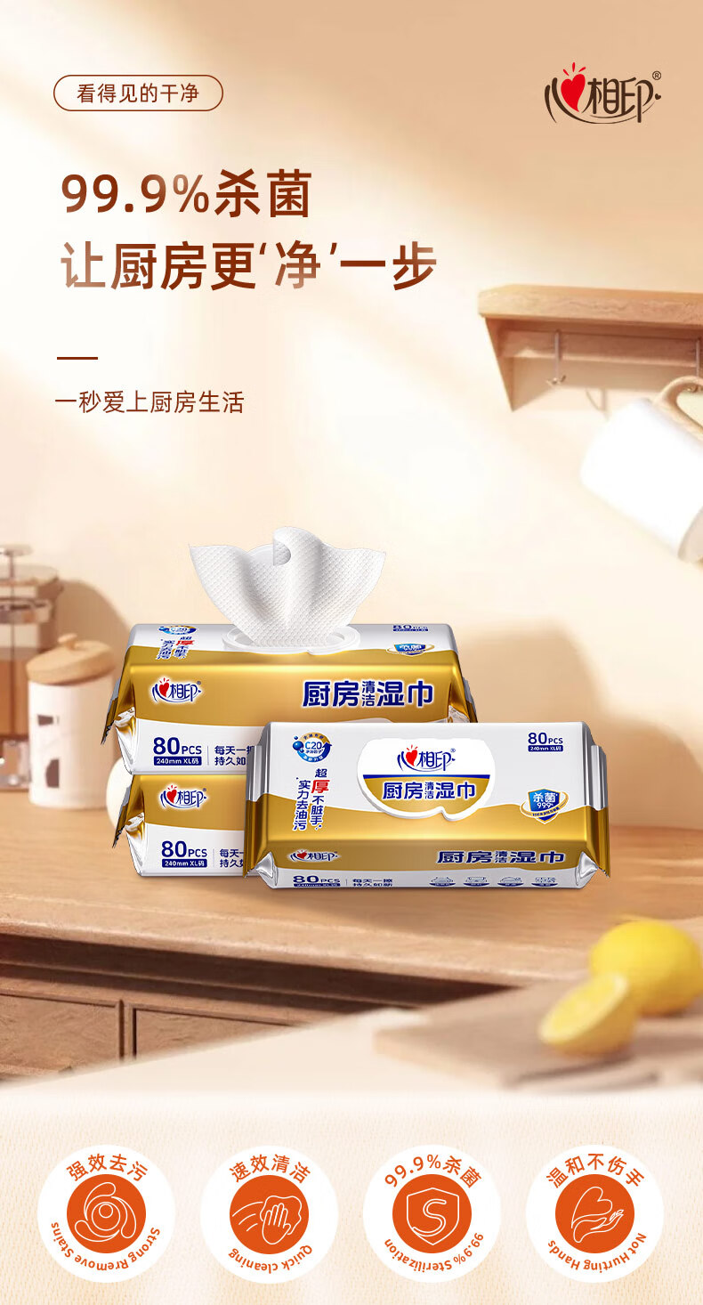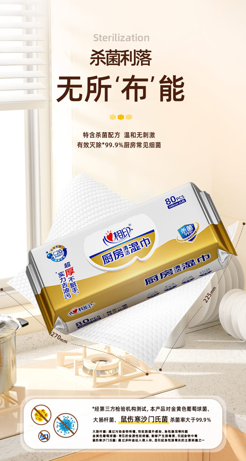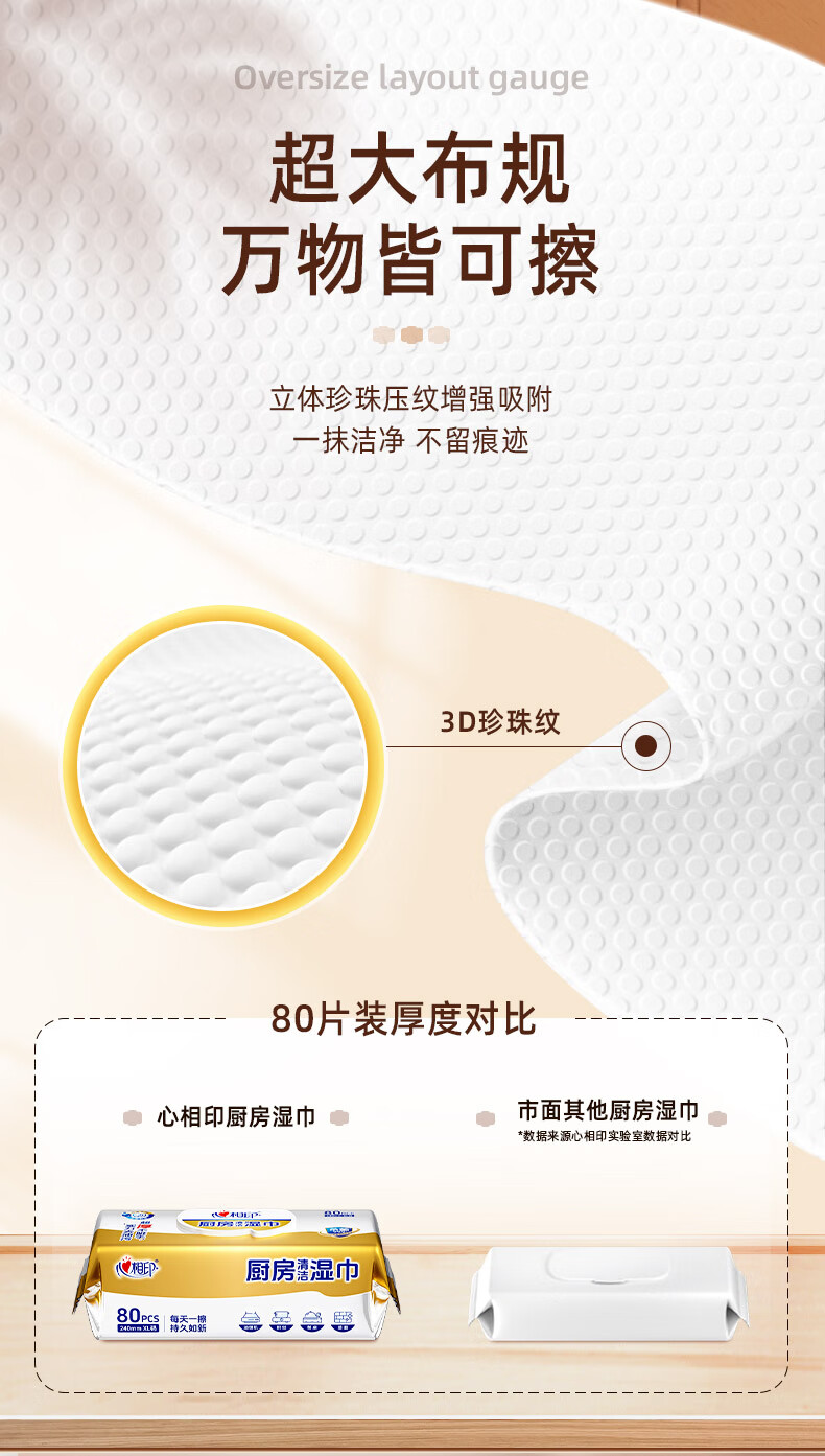 心相印厨房湿巾 80抽 金装去污去油厨房用纸专用湿纸巾