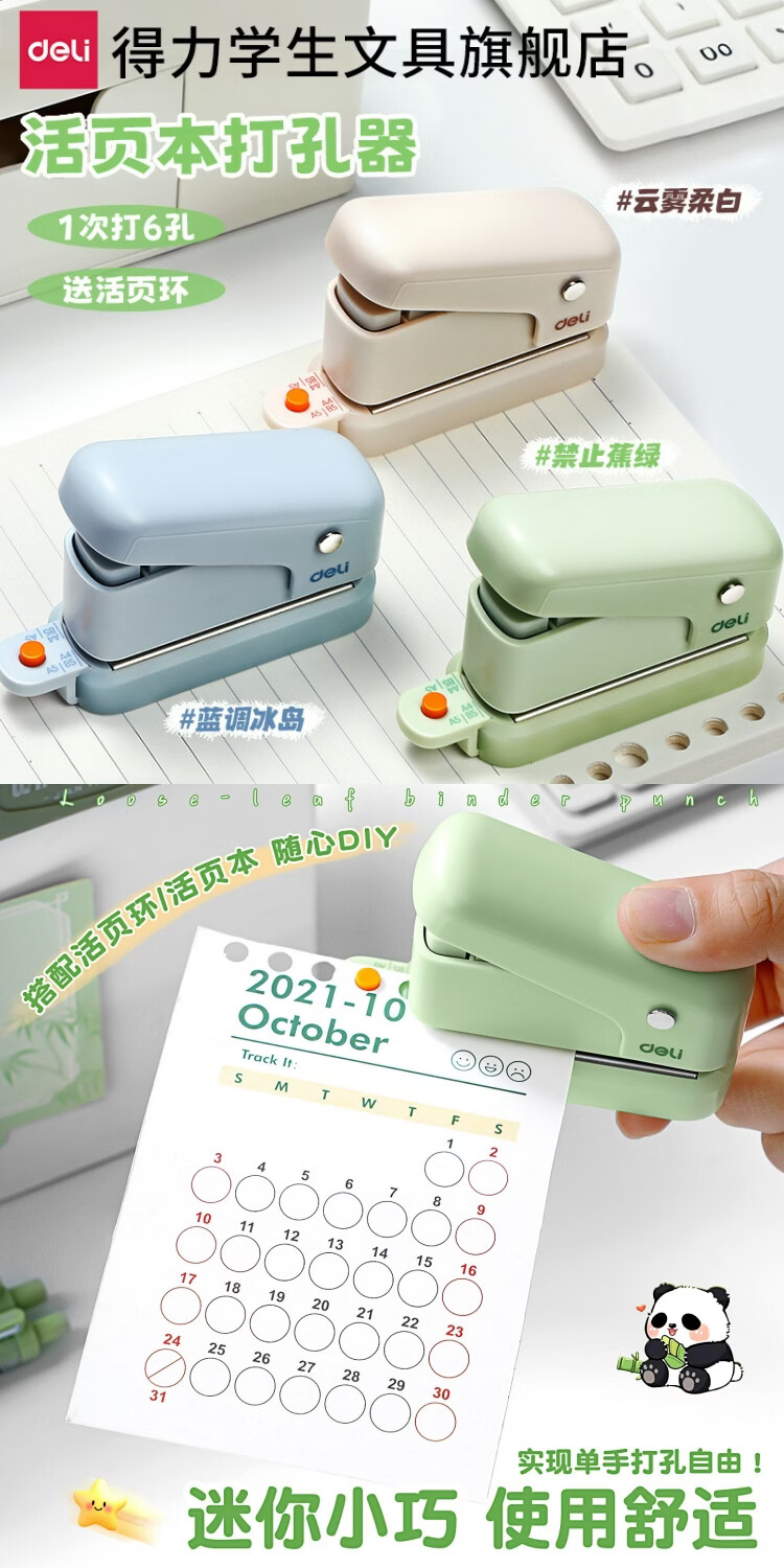 得力多功能打孔器圆环孔b5活页本打孔机活页夹多孔打洞器小型六孔装订打眼器a4a5替芯纸张打洞机手动 【莱茵绿】3孔6孔/一机两用