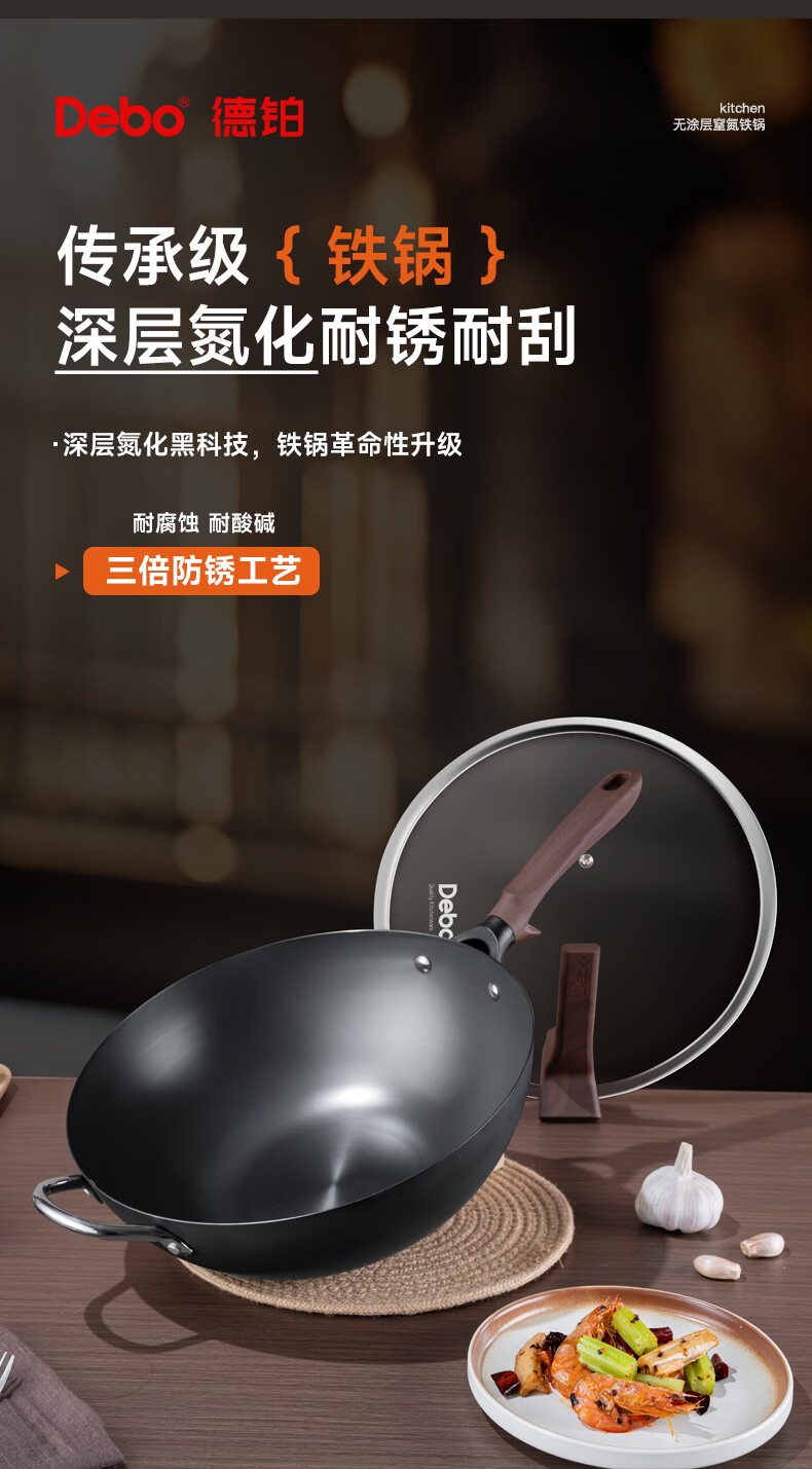 Debo德铂泽纳斯34cm炒锅铁锅无涂层免开锅炒菜锅 泽纳斯34cm 34cm