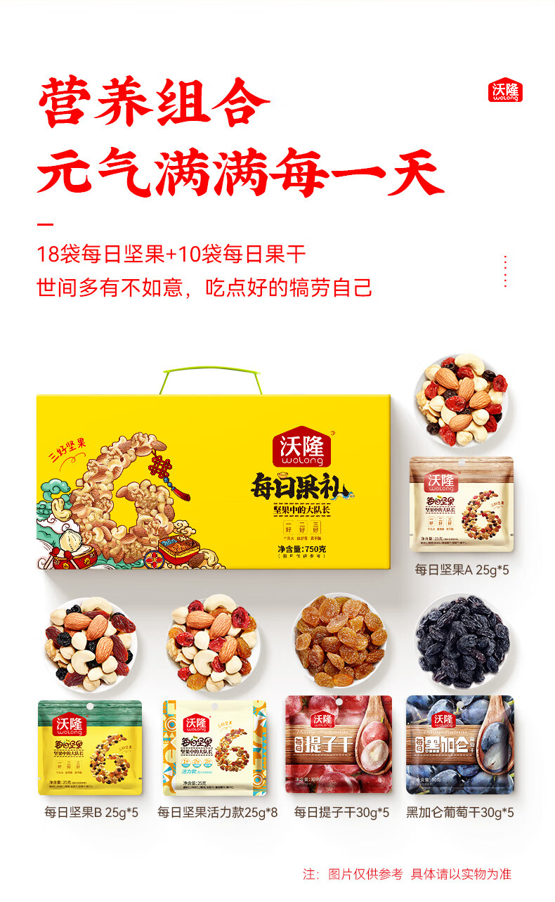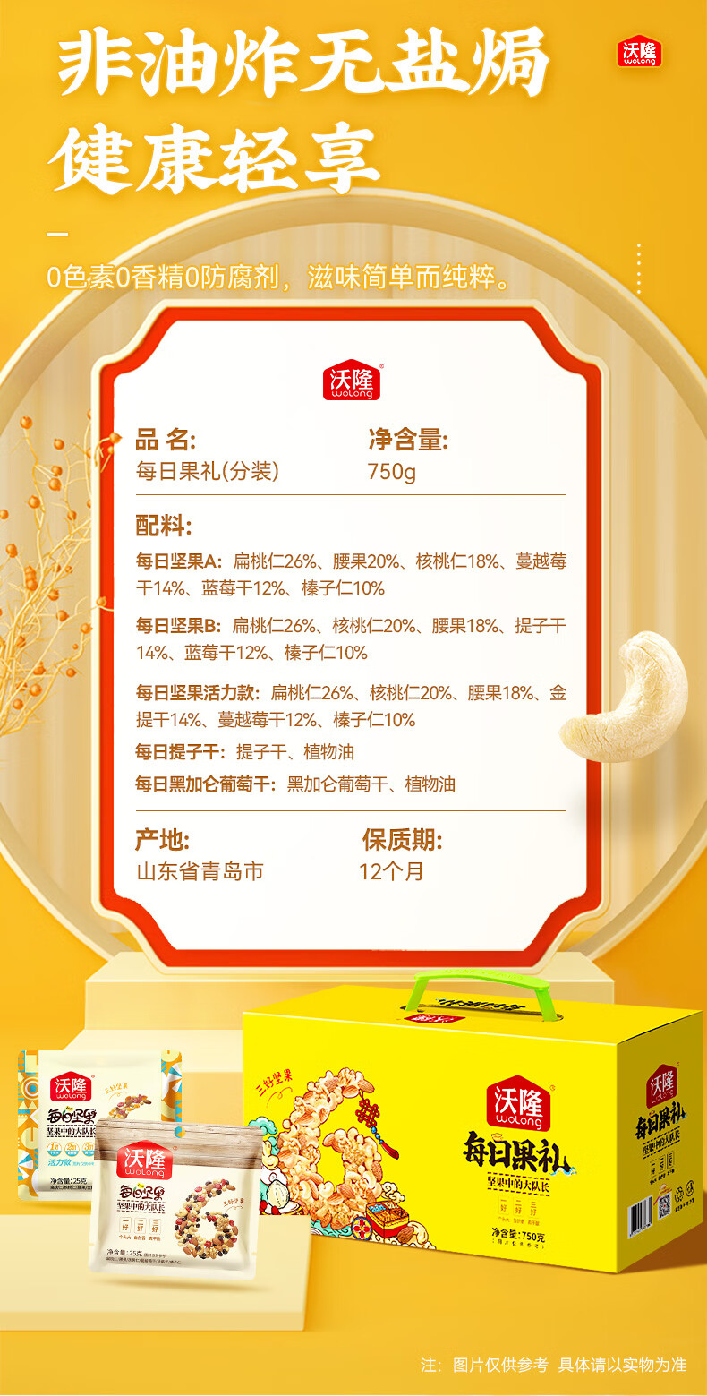 沃隆每日坚果750g/28袋小零食果干混合坚果礼盒办公室休闲零食大礼包