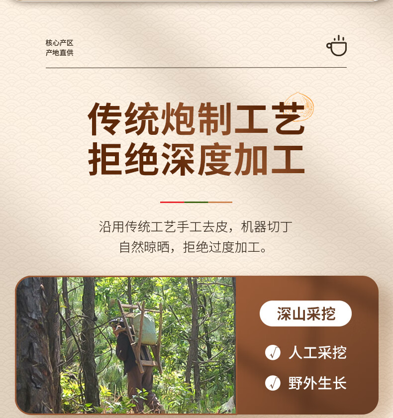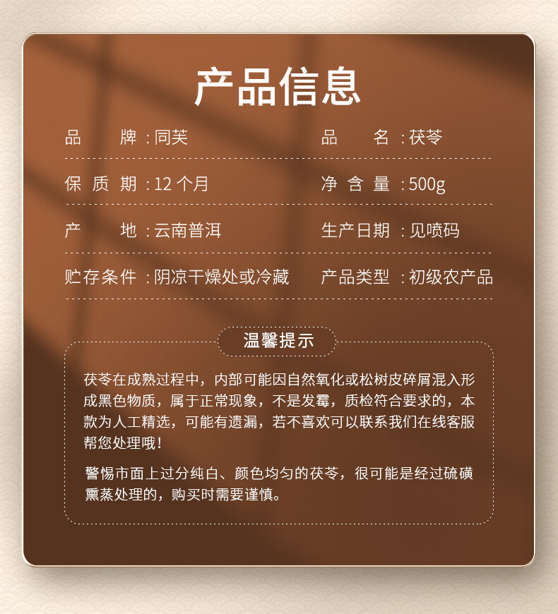 同芙 茯苓500g(大块1.0-1.2cm)云南白茯苓块中心丁无硫熏 药材原料