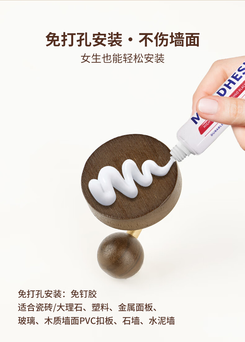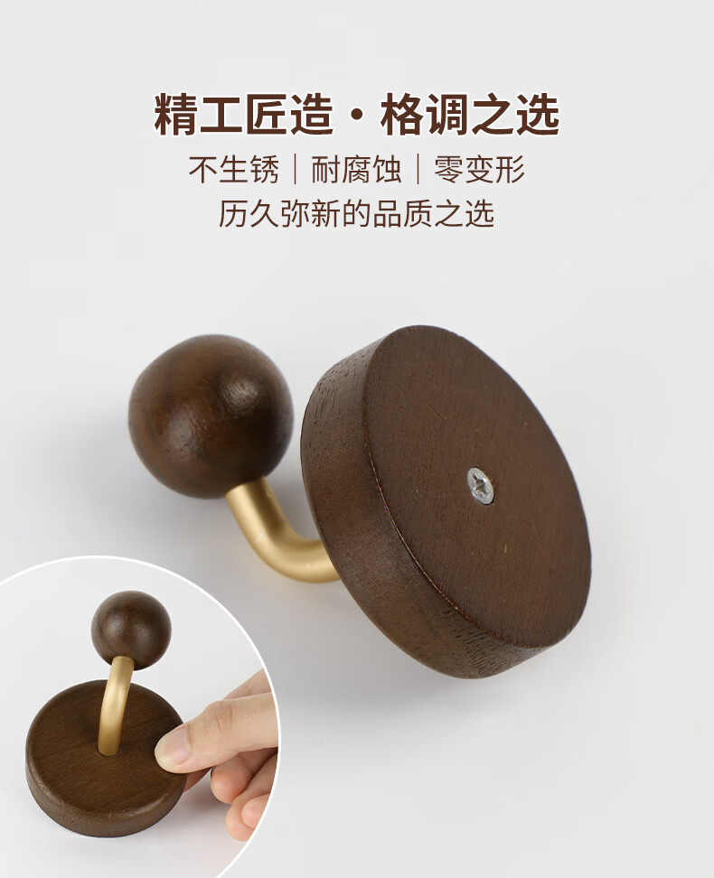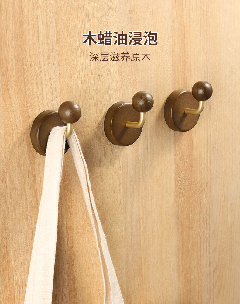 卡贝(cobbe)胡桃木门后浴室挂钩强力粘胶挂衣架壁挂墙上单钩免打孔衣服挂衣钩 胡桃木衣钩【5.7*5.5CM】 1个