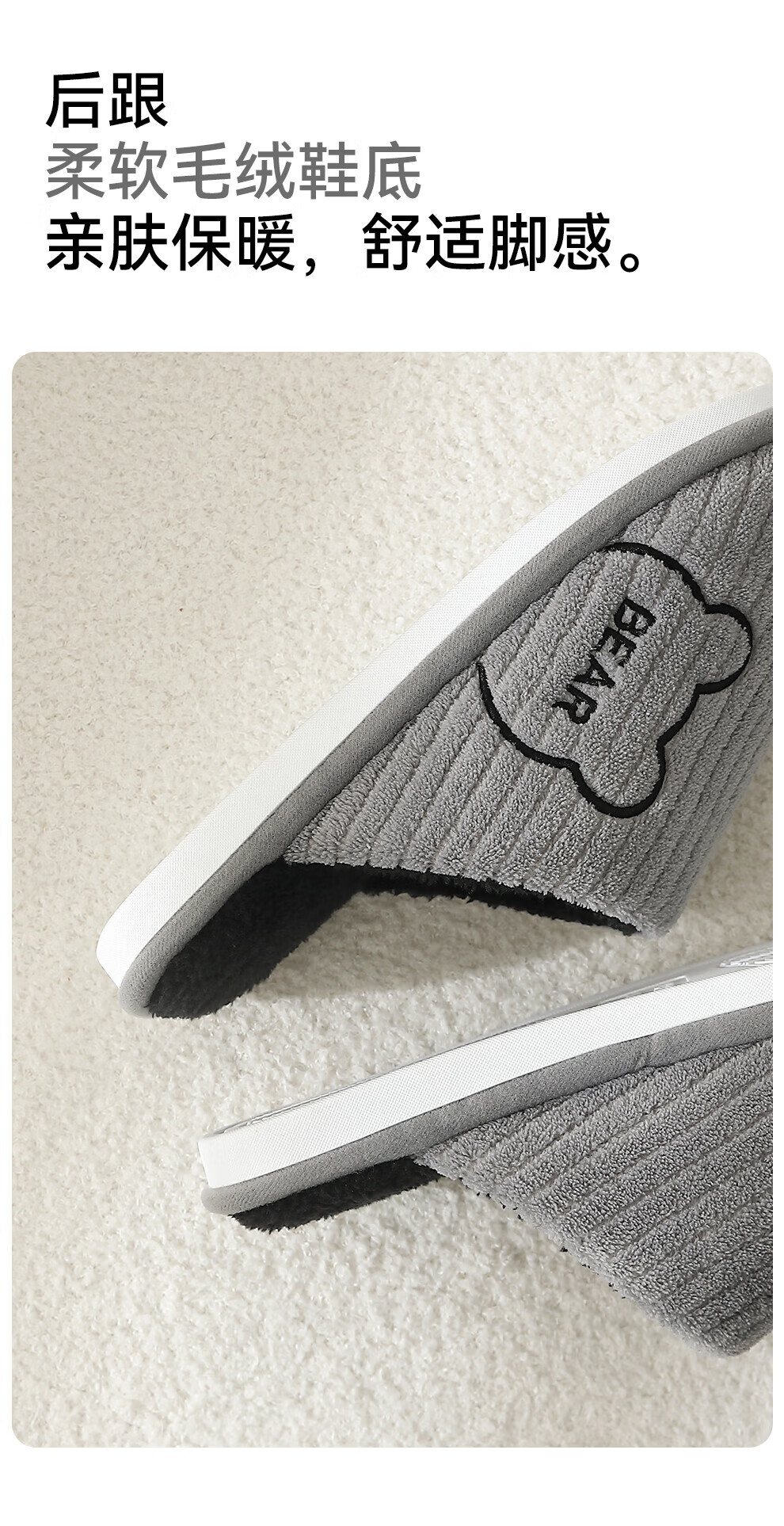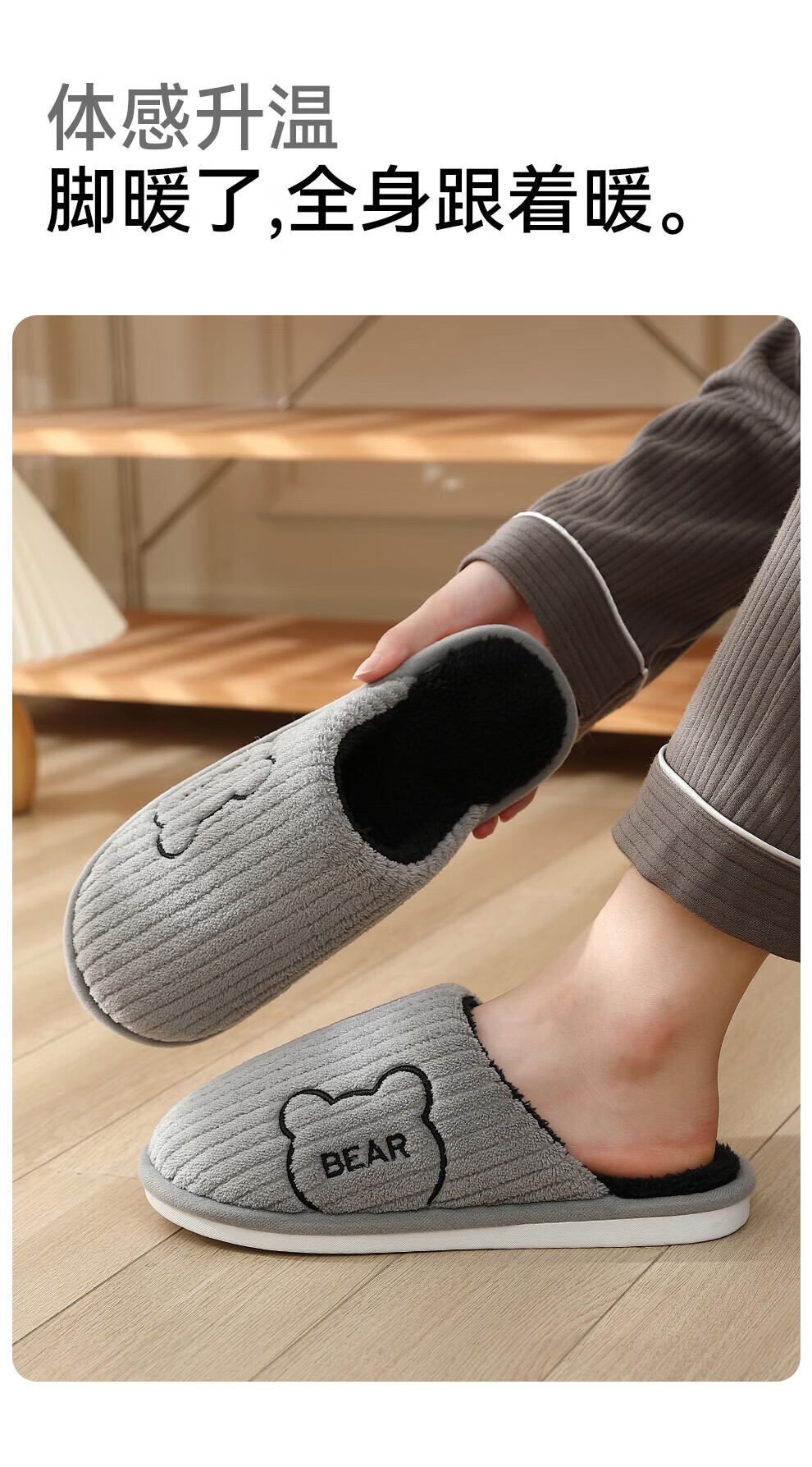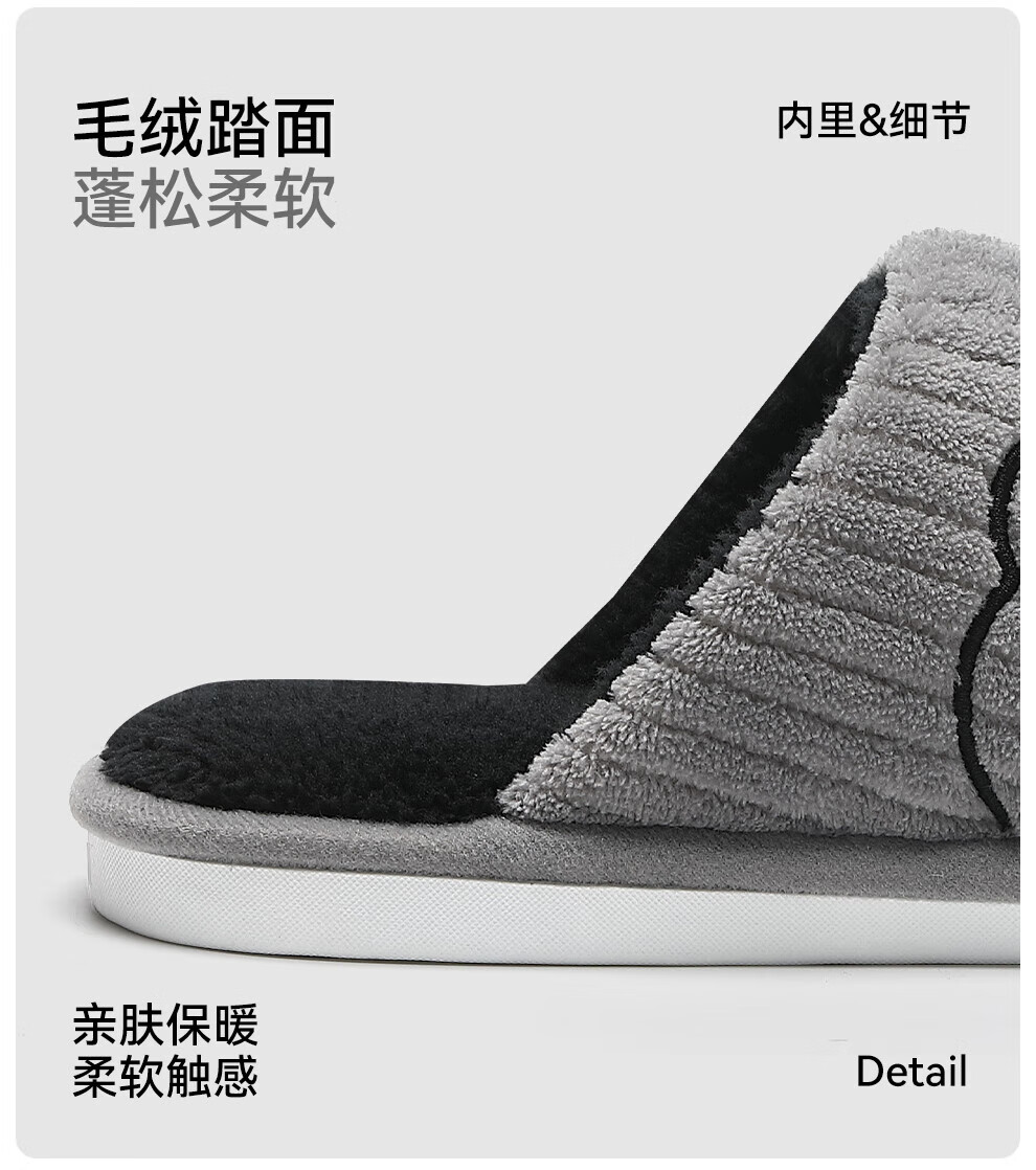 FZT抗菌防臭棉拖鞋女士新款2025秋冬季保暖毛绒简约舒适居家棉鞋男 黑色 44-45 偏小一码43-44