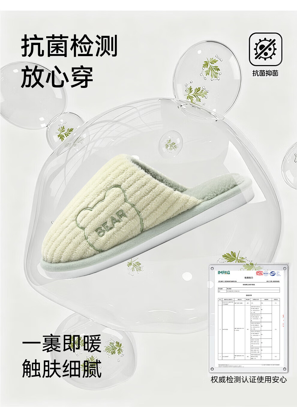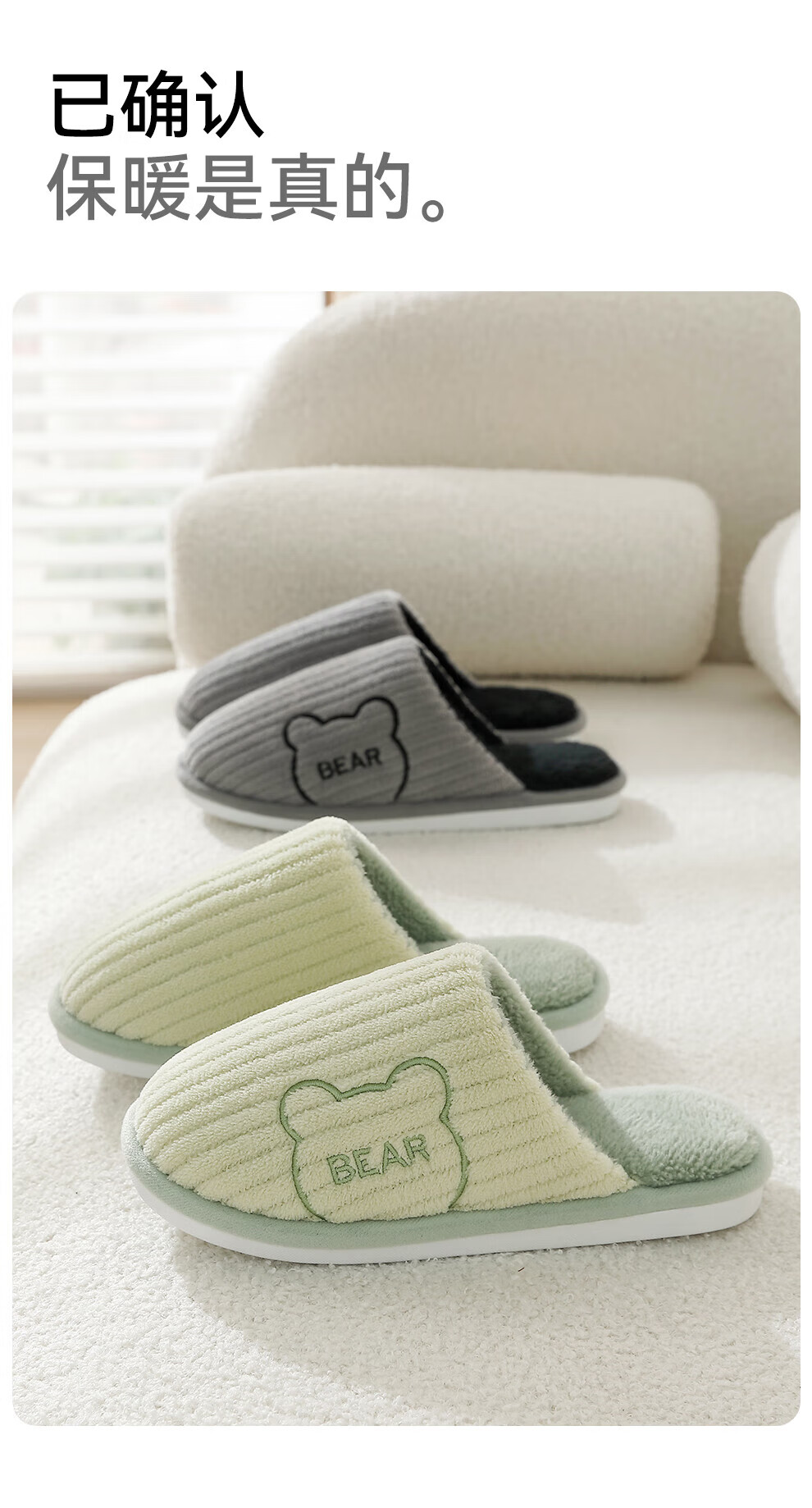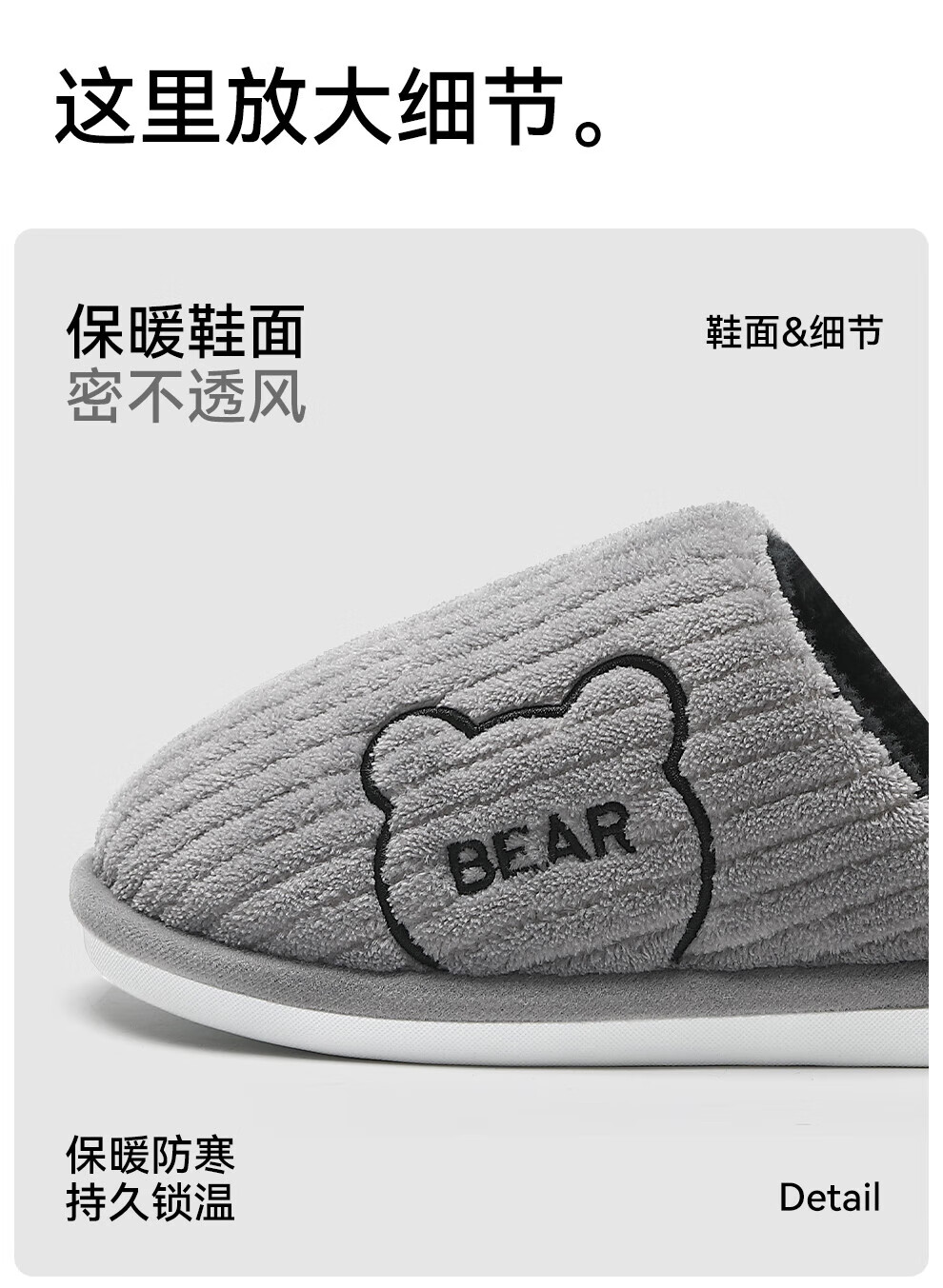 FZT抗菌防臭棉拖鞋女士新款2025秋冬季保暖毛绒简约舒适居家棉鞋男 黑色 44-45 偏小一码43-44