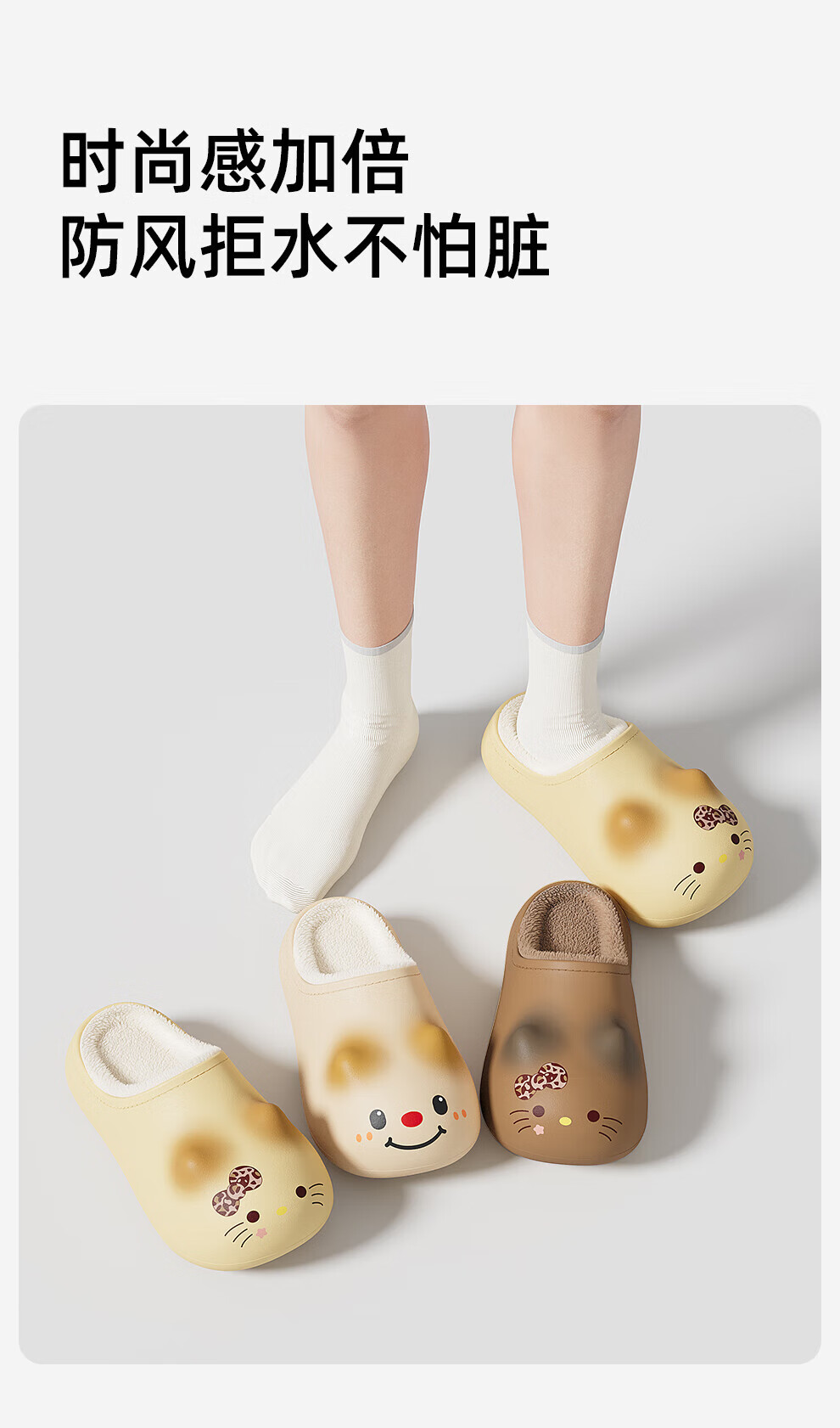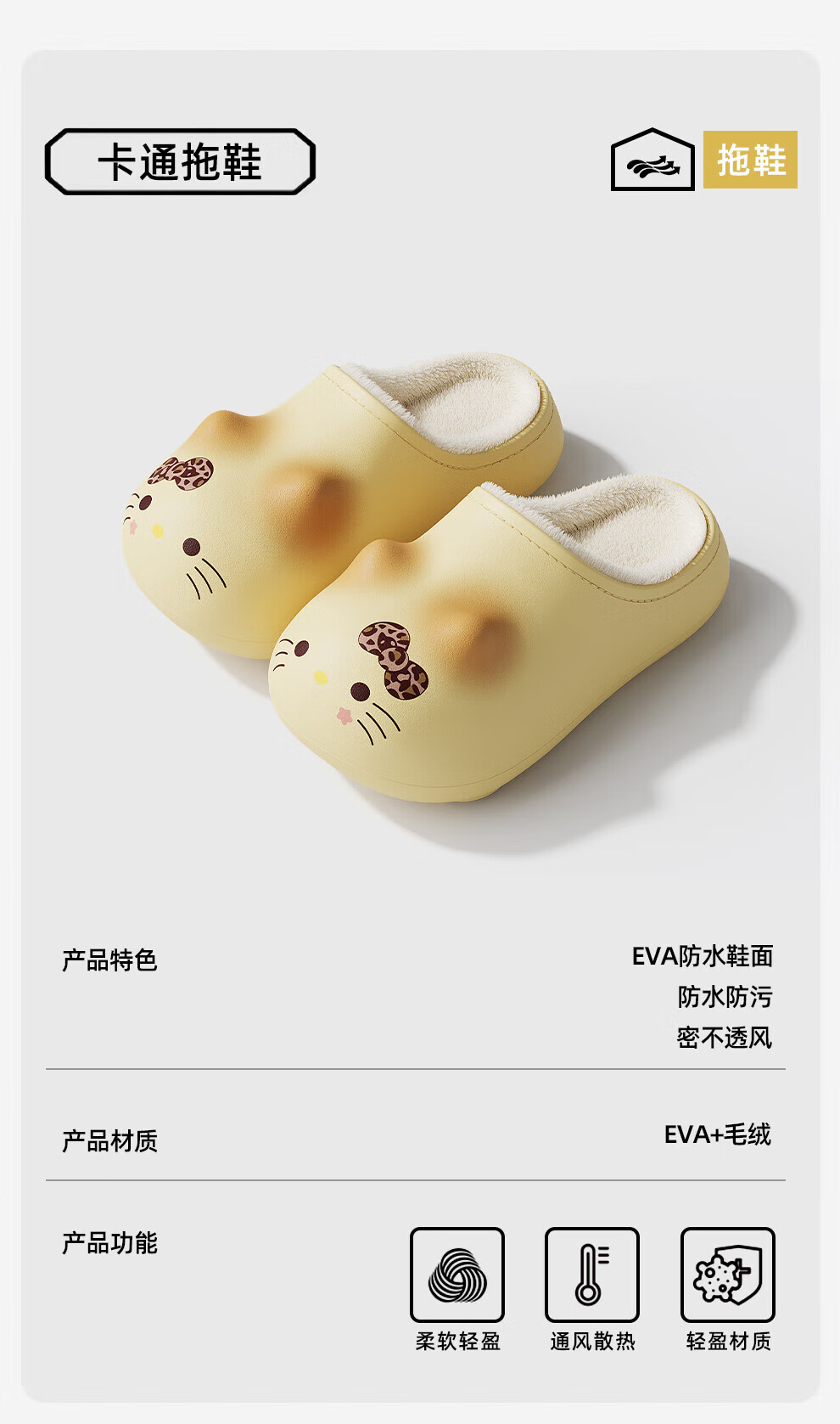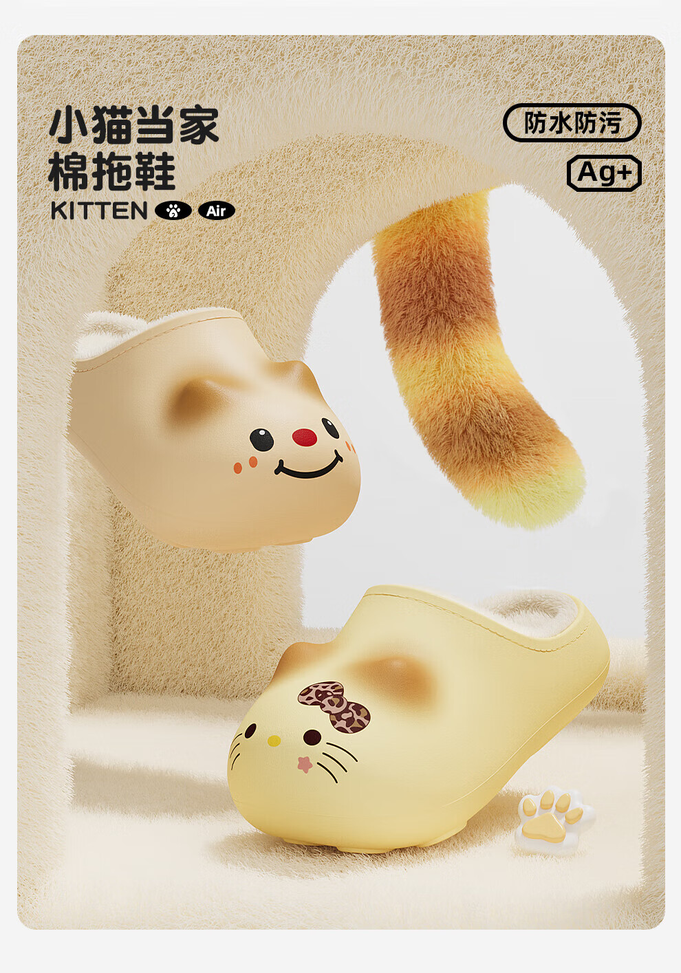 FZT防水猫咪棉拖鞋女款2025年秋冬季新款包跟保暖家居室内防滑外穿女 奶黄 36-37 标准码