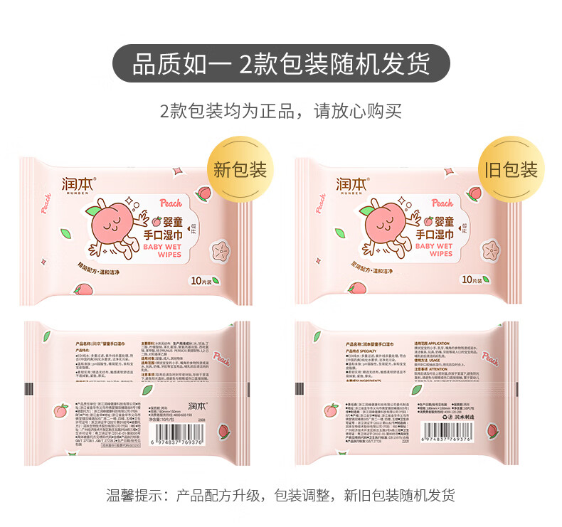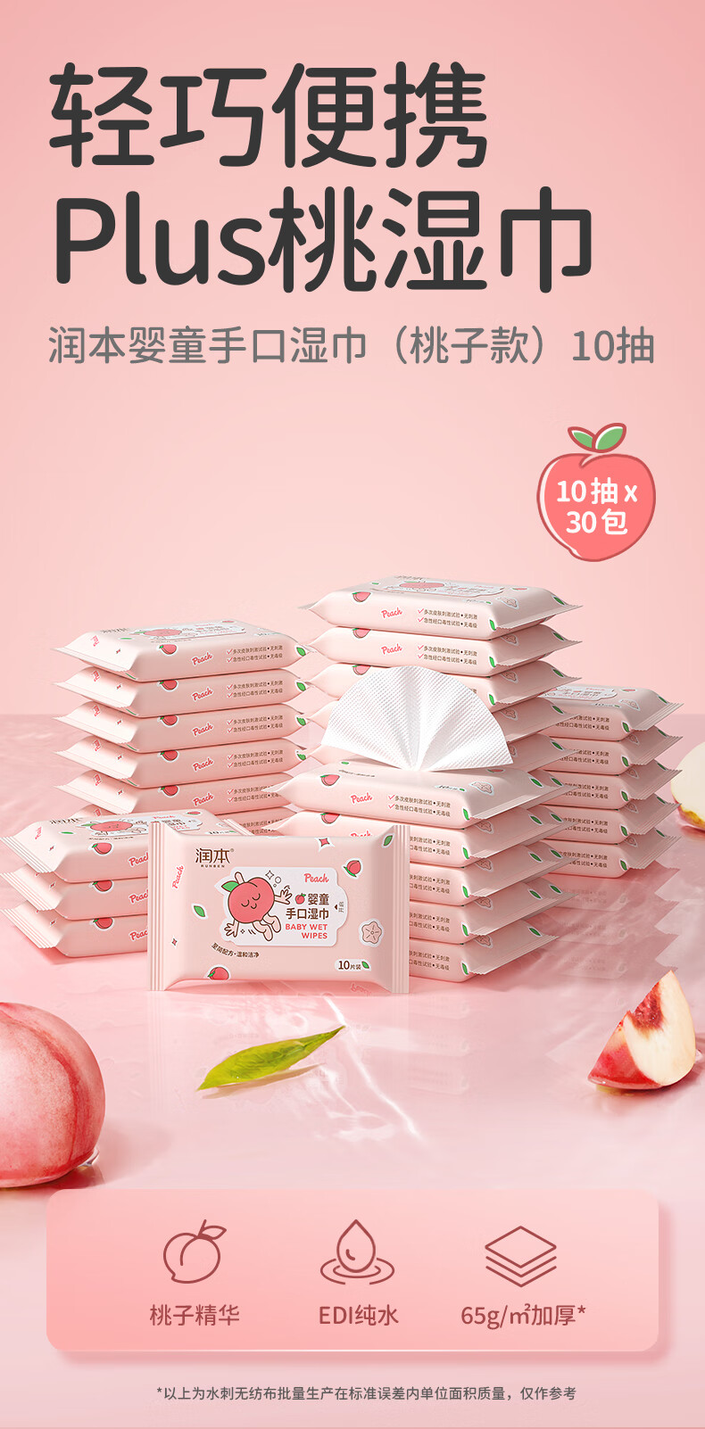 润本(RUNBEN)婴儿湿巾小包成人便携式湿巾纸宝宝手口专用独立装湿纸巾 10抽 30包