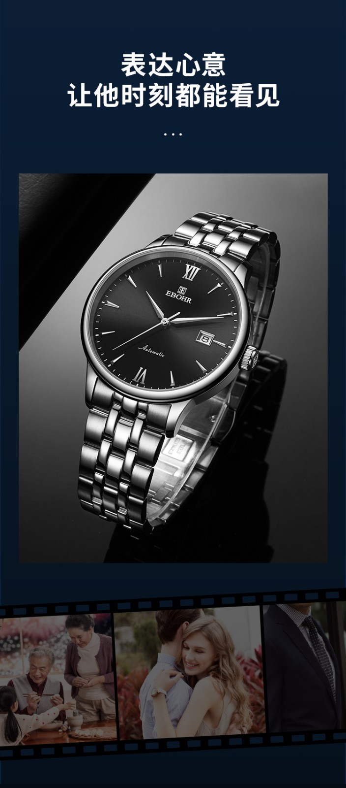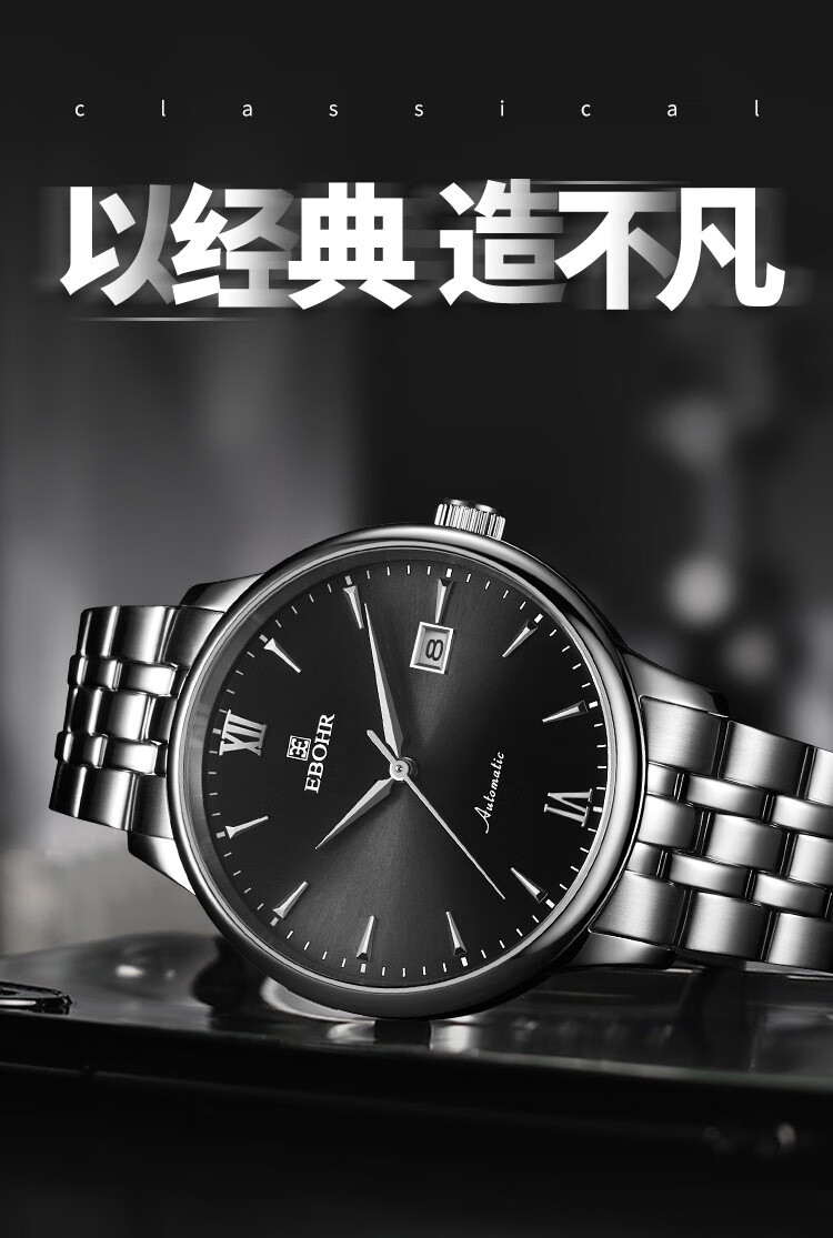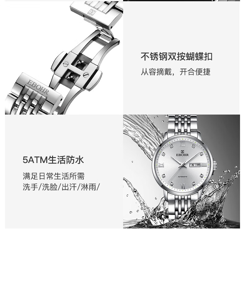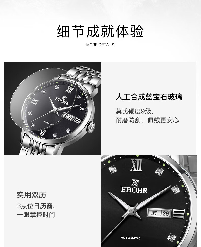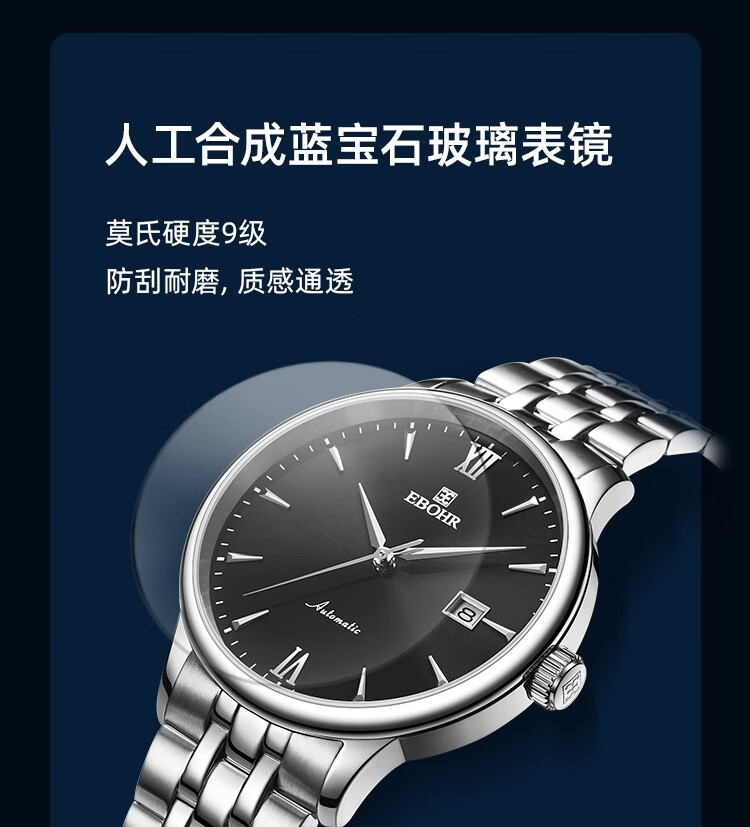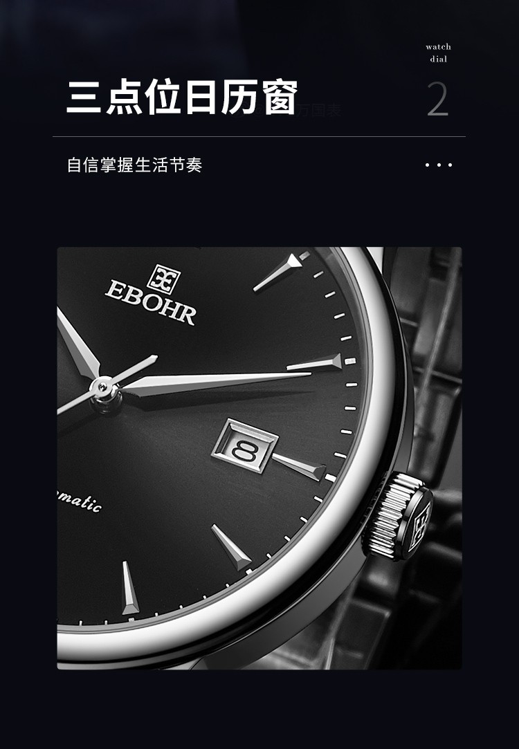 依波(EBOHR)手表男大师系列男士自动机械表生日礼物钢带国表商务送男友礼物 商务白盘双历51751418