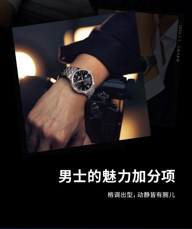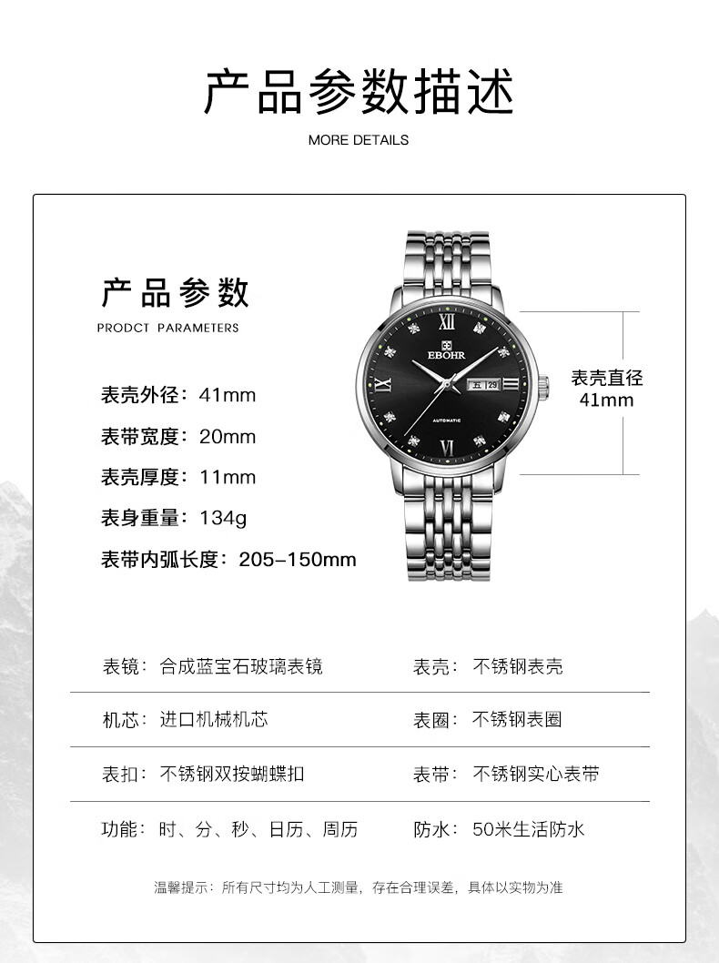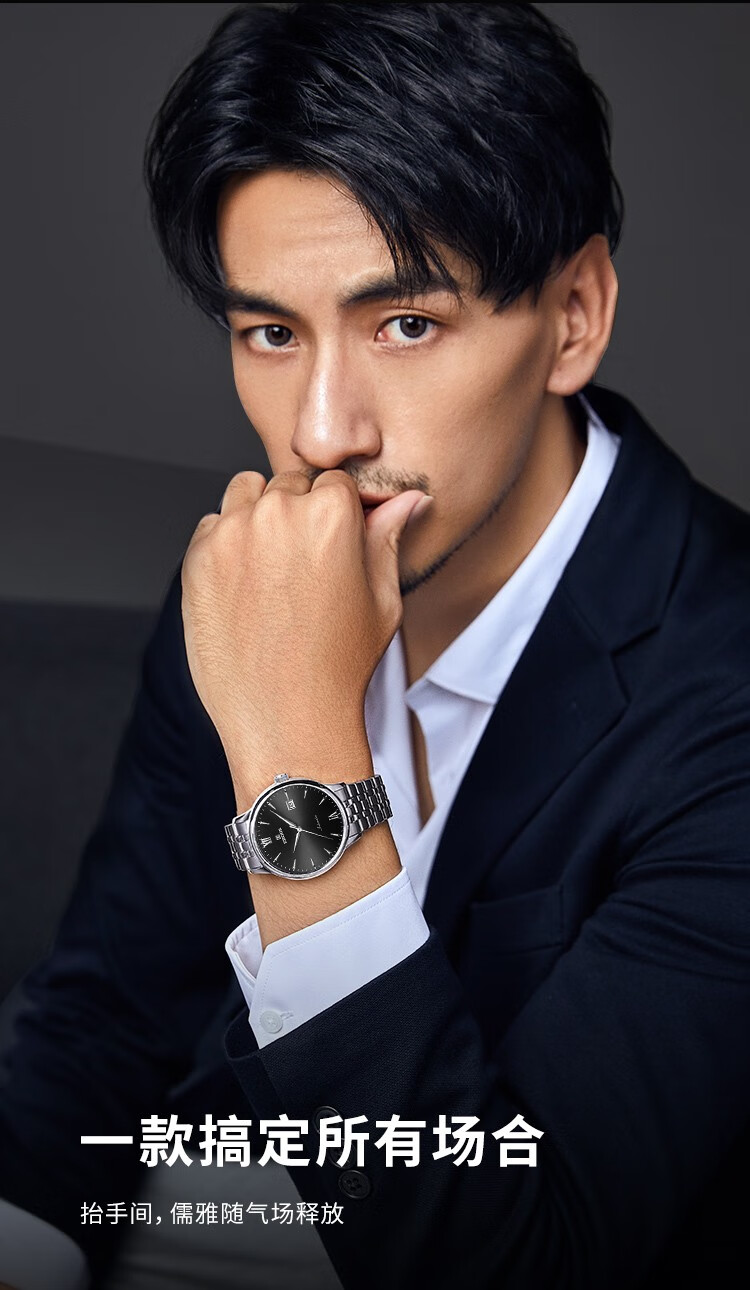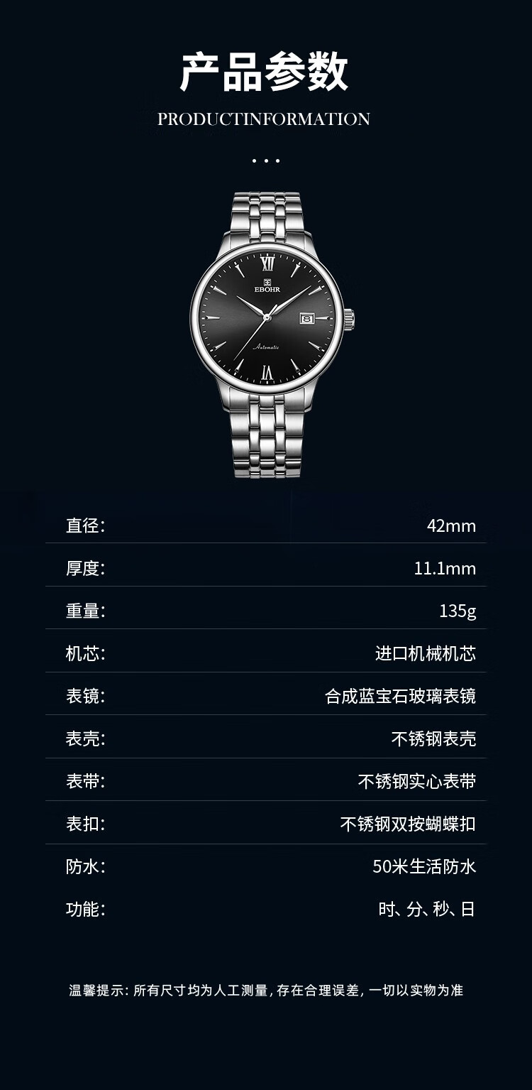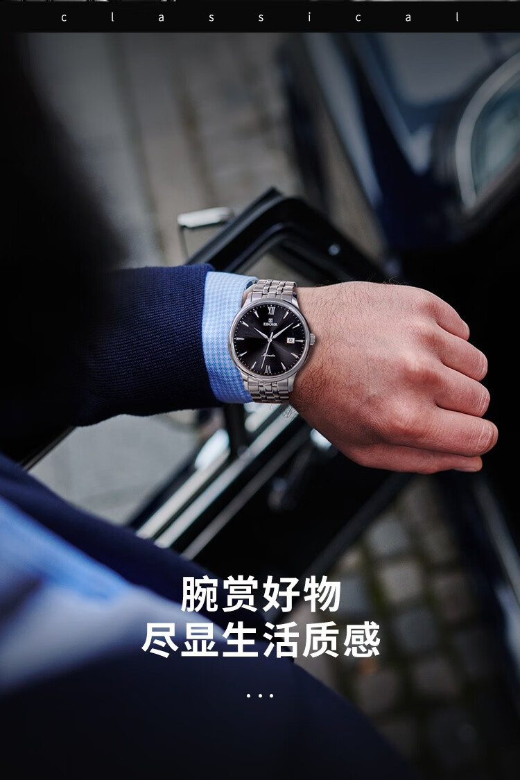 依波(EBOHR)手表男大师系列男士自动机械表生日礼物钢带国表商务送男友礼物 商务白盘双历51751418