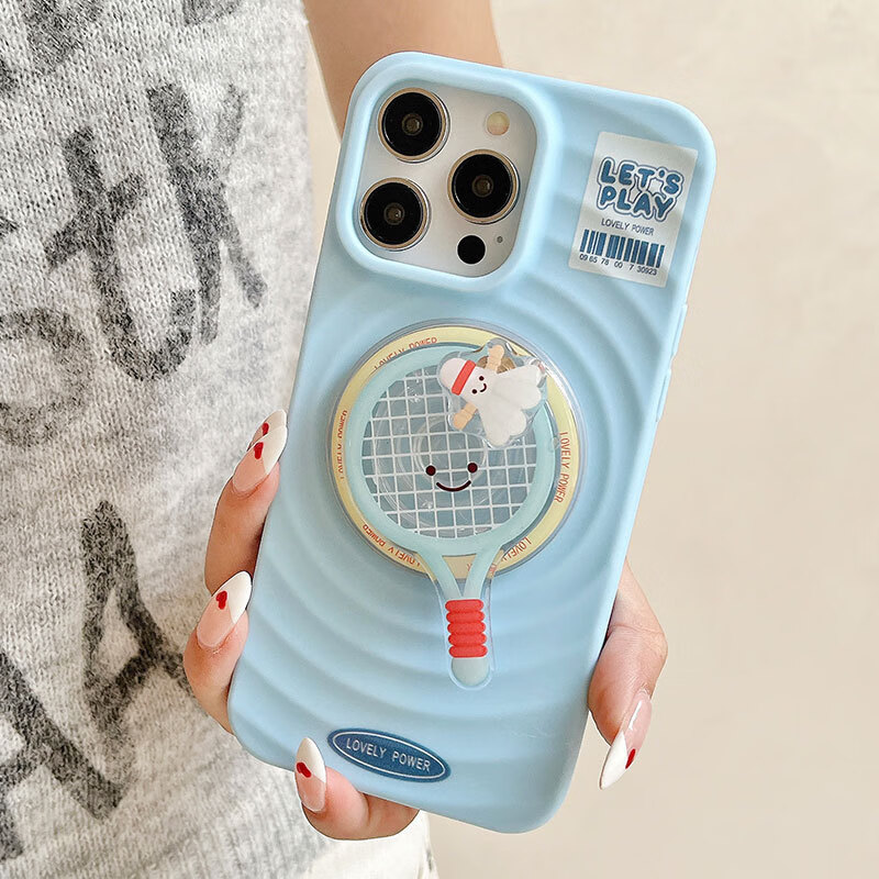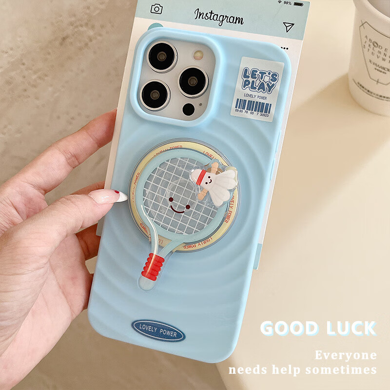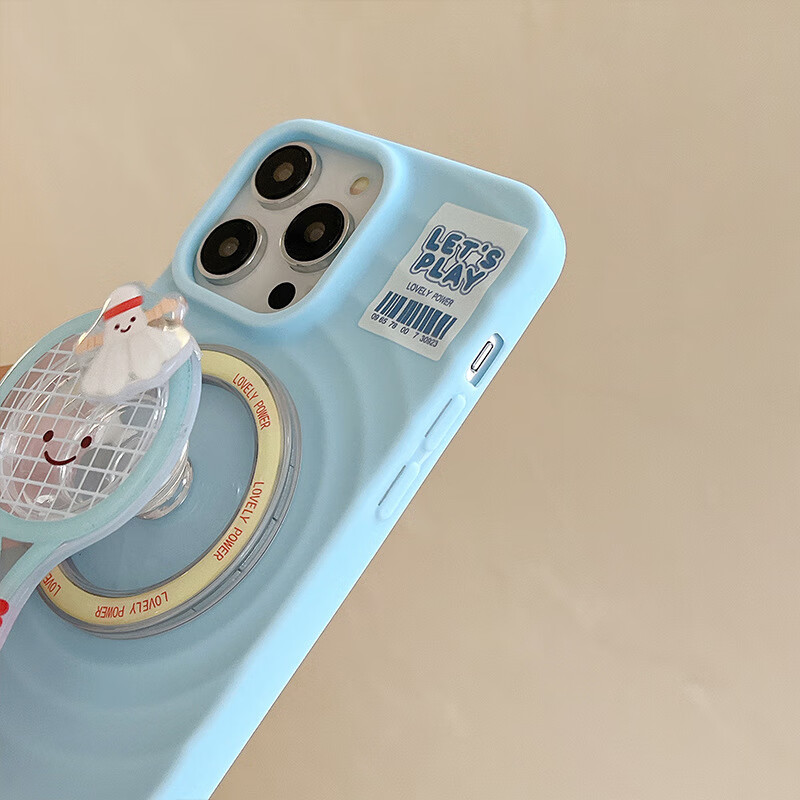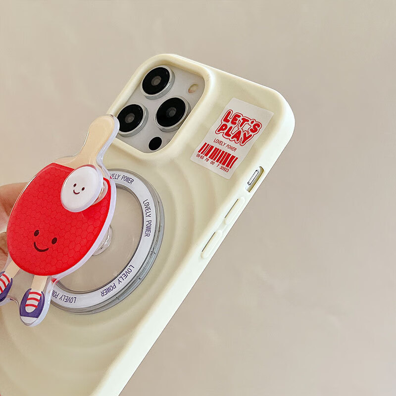 乒乓球羽毛球适用苹果15promax全包手机壳ip16pro磁吸支架套 磁吸白色壳+磁吸支架-旋转乒乓球 iphone13