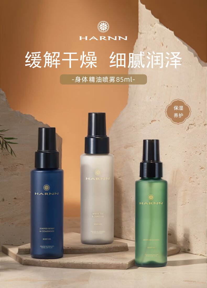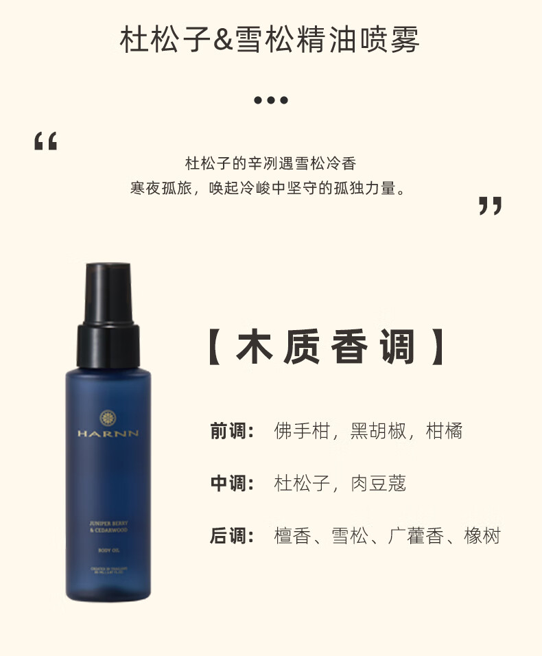 HARNN泰国进口身体油米糠按摩精油喷雾保湿舒缓焕亮spa刮痧推背伴手礼 【沁雅松香】杜松子&雪松85ml