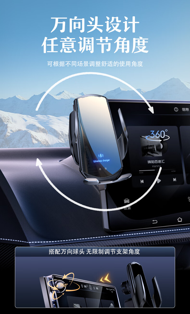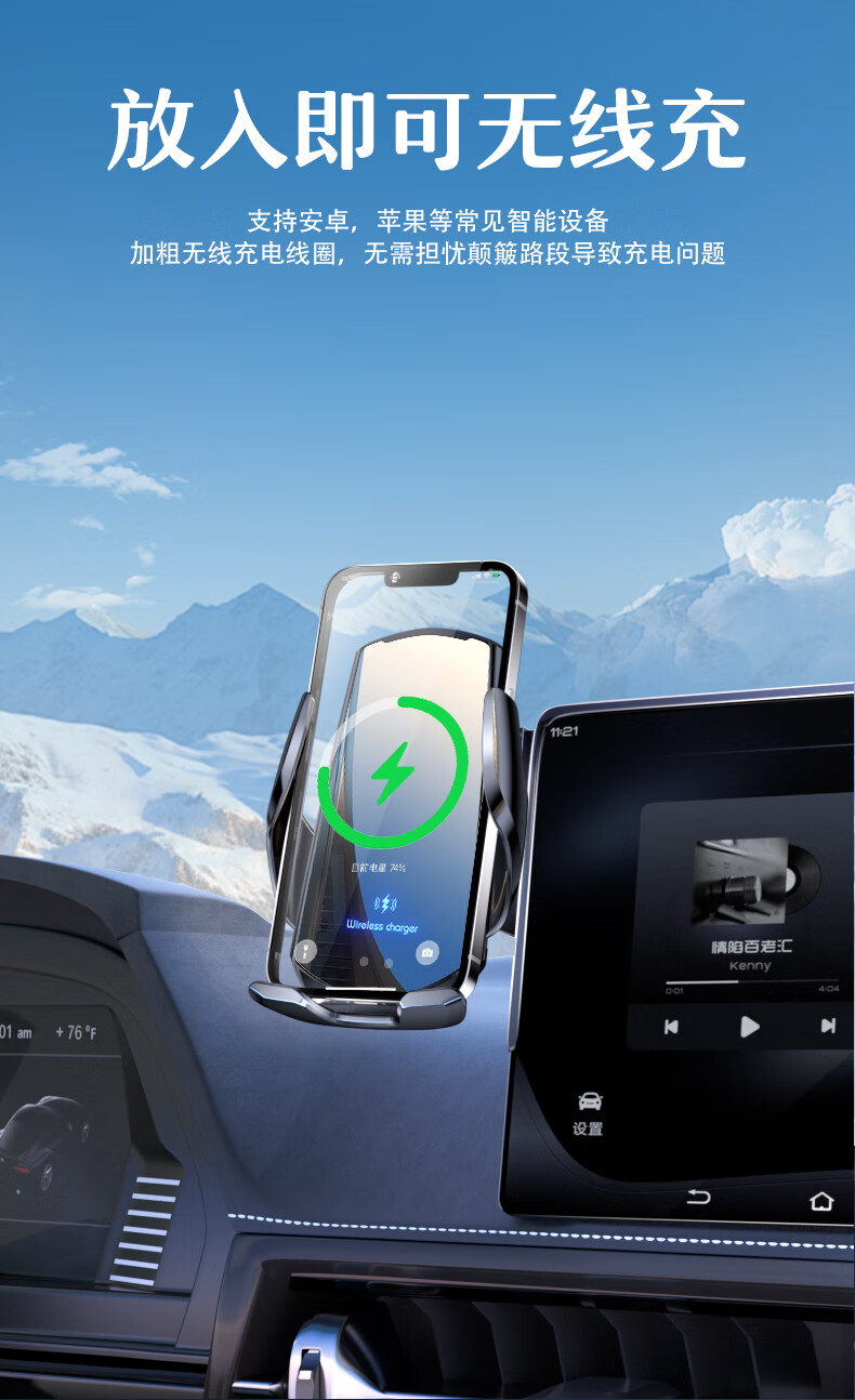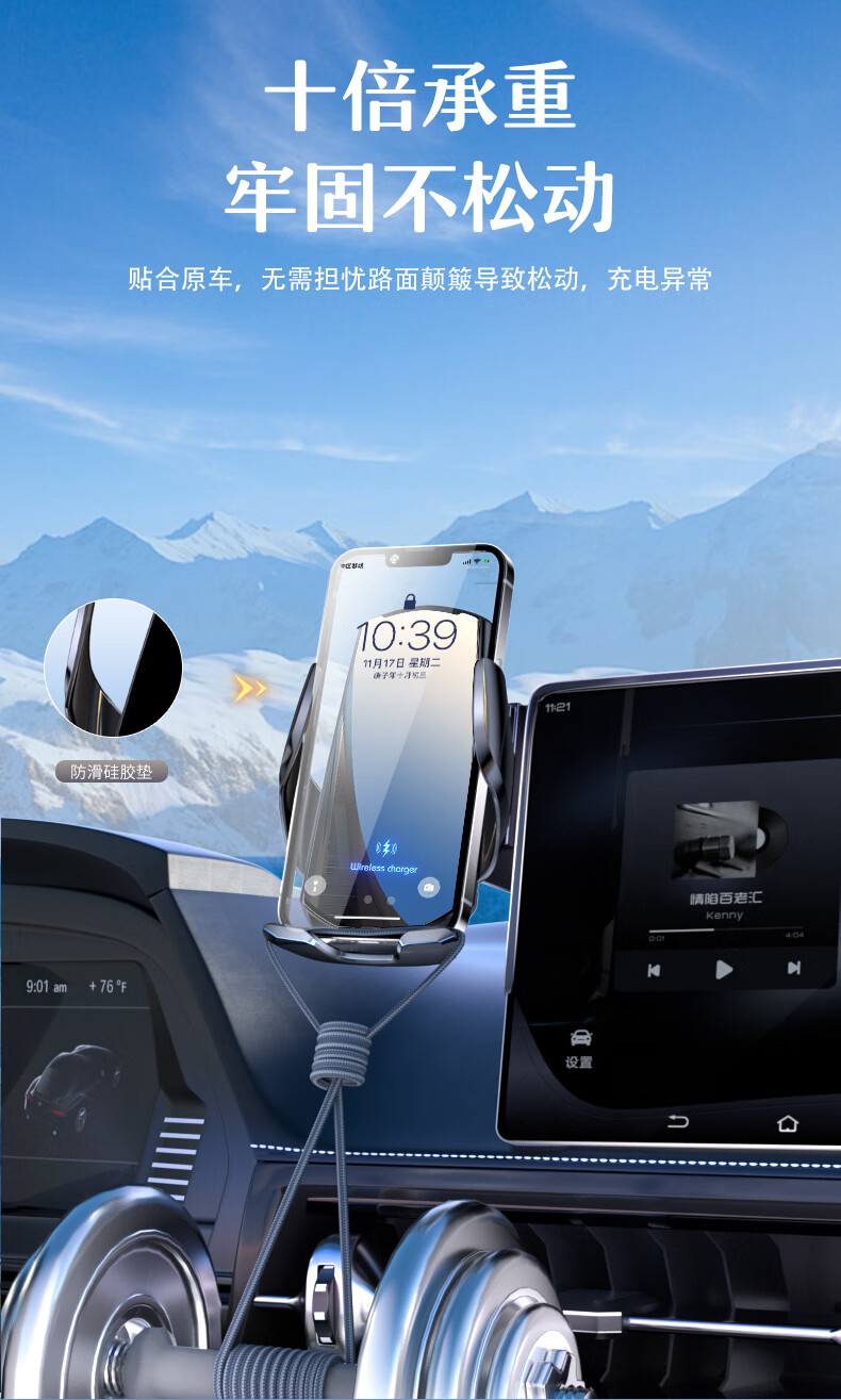鑫卡威适用于25款名爵ES5屏幕汽车载手机支架无线充电导航屏幕装饰配件 重力夹紧款【可单手取放】 25款名爵ES5(15.6英寸)