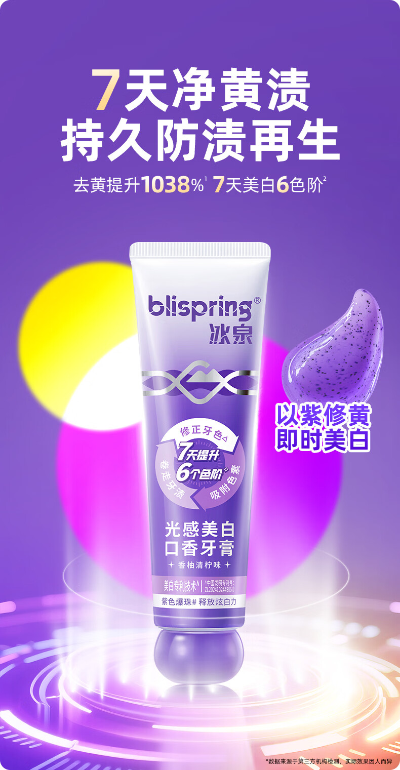 冰泉(blispring)色修光感美白口香牙膏去牙渍牙黄去口臭口气 【拍1到手7件】色修100g*2+旅行装40g*2+牙刷*3