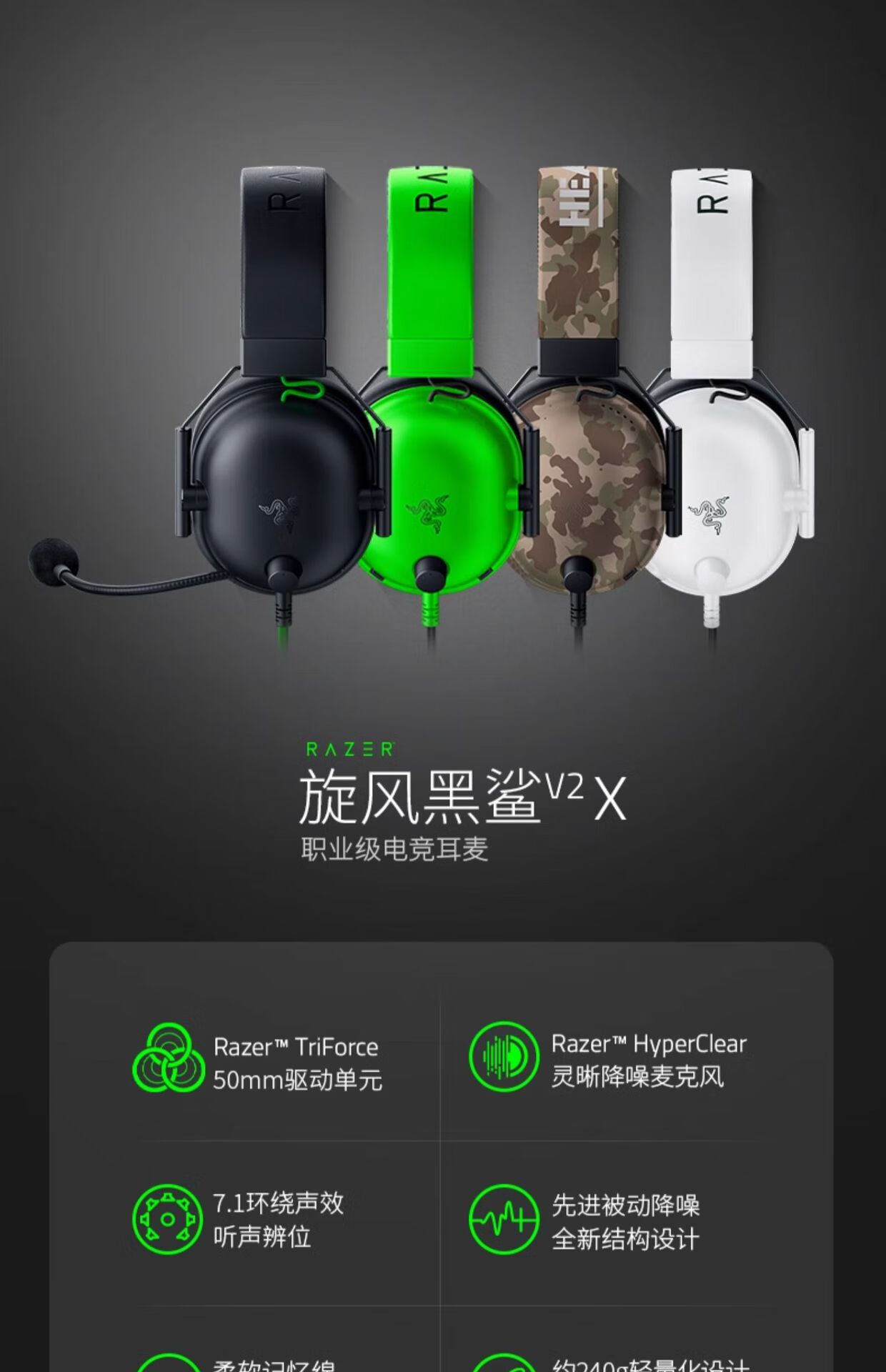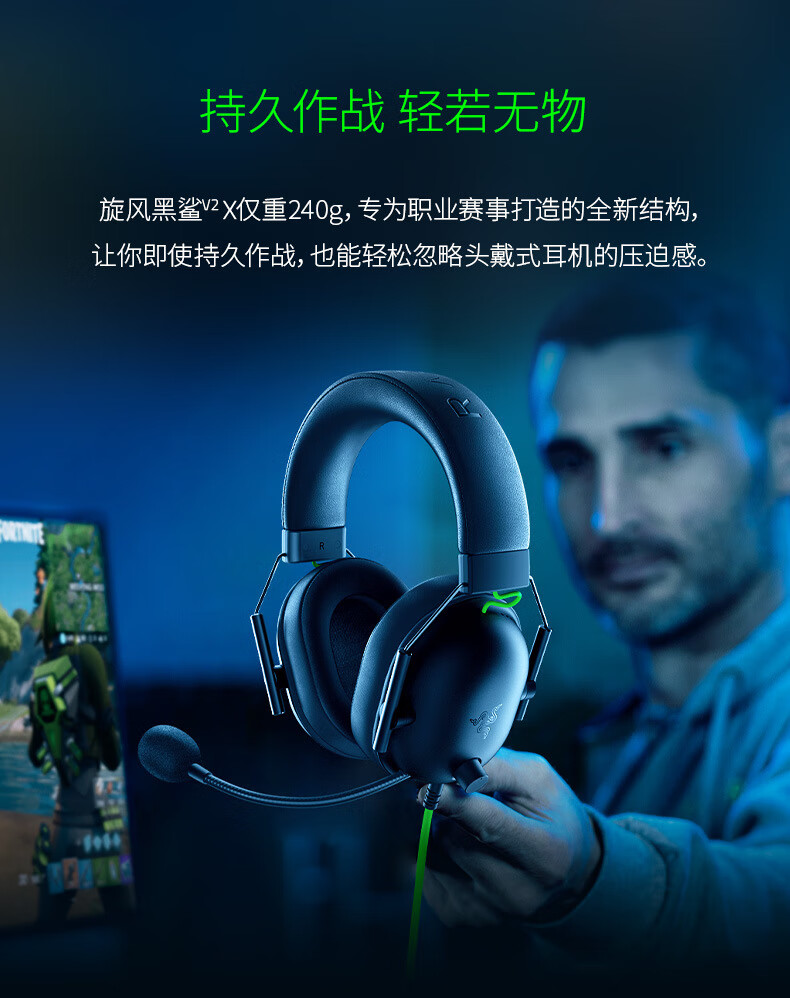 Razer旋风黑鲨V2X头戴式无畏契约FPS电竞游戏CSGO耳机麦7.1环绕声适用 旋风黑鲨 白色