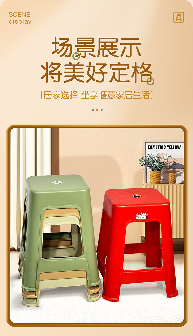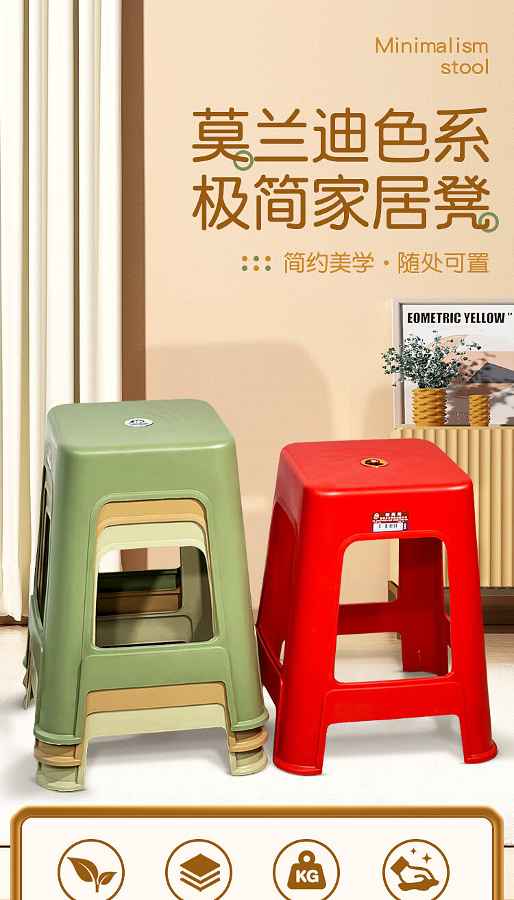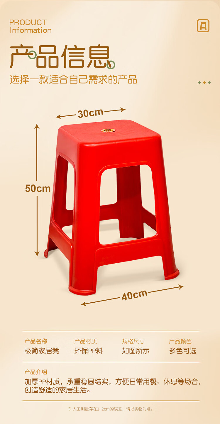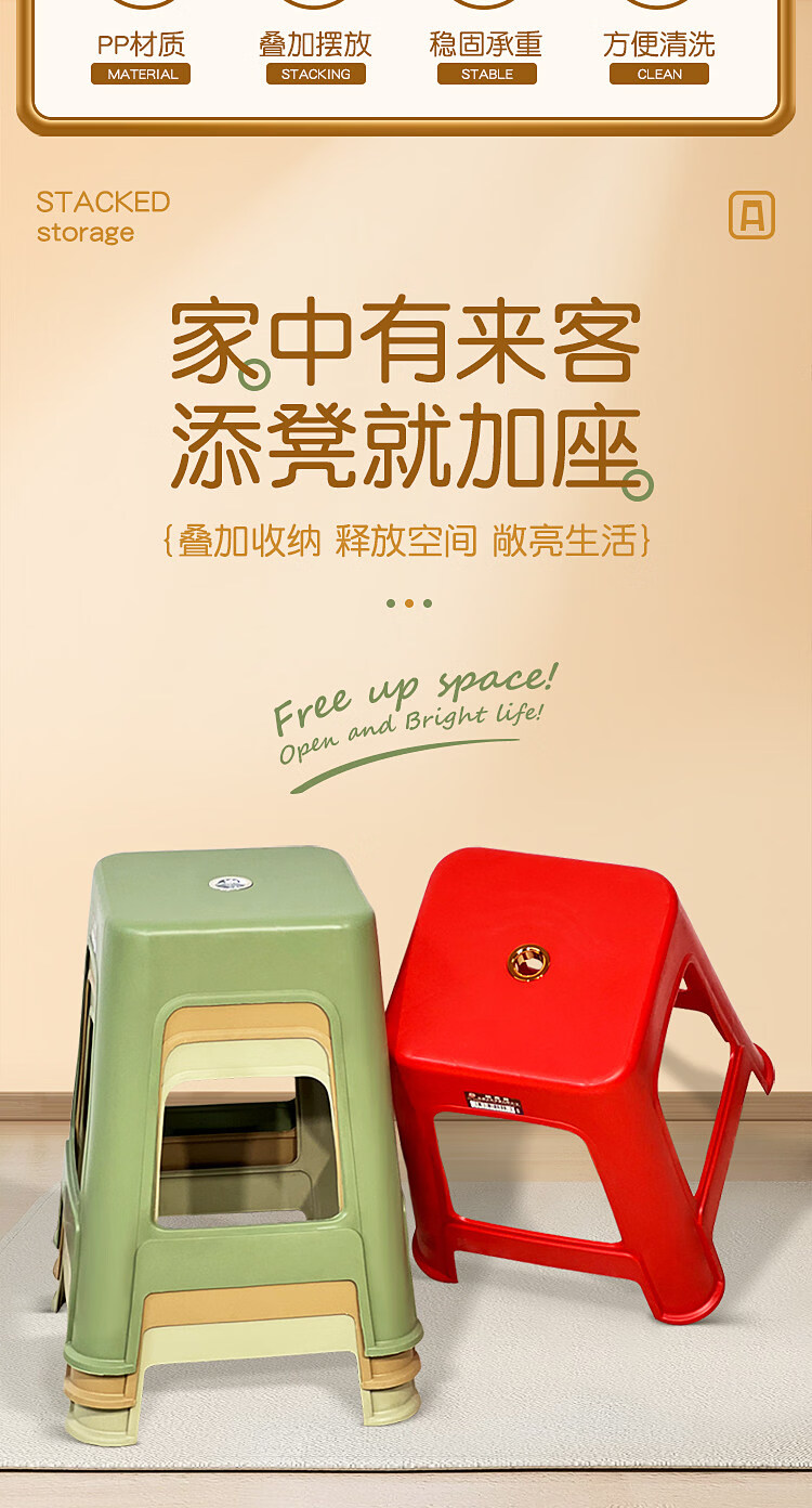 胖东来代购同款塑料凳子加厚加宽塑料凳子加宽加厚家用客厅厂家高 红色-坐高50cm