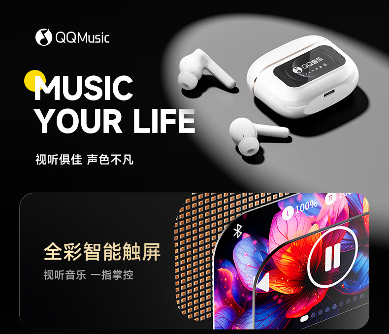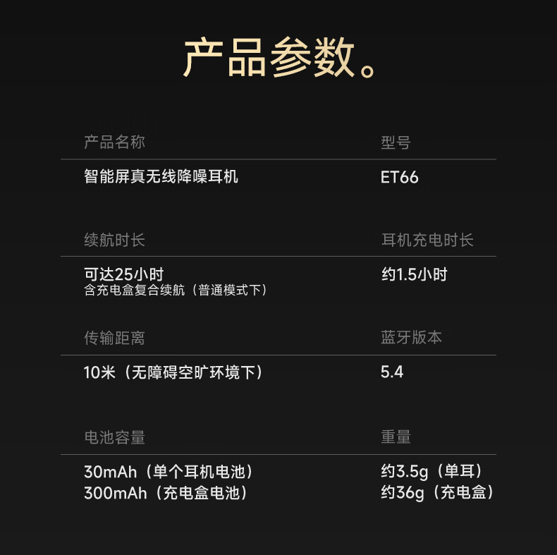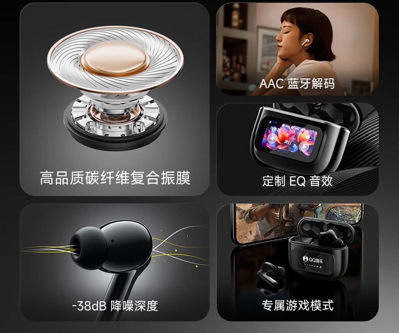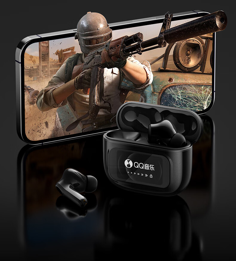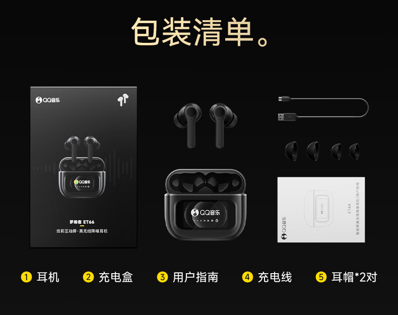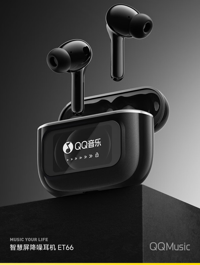 QQ音乐无线蓝牙耳机全彩智能主动降噪蓝牙5.4低延迟游戏ET66 黑色