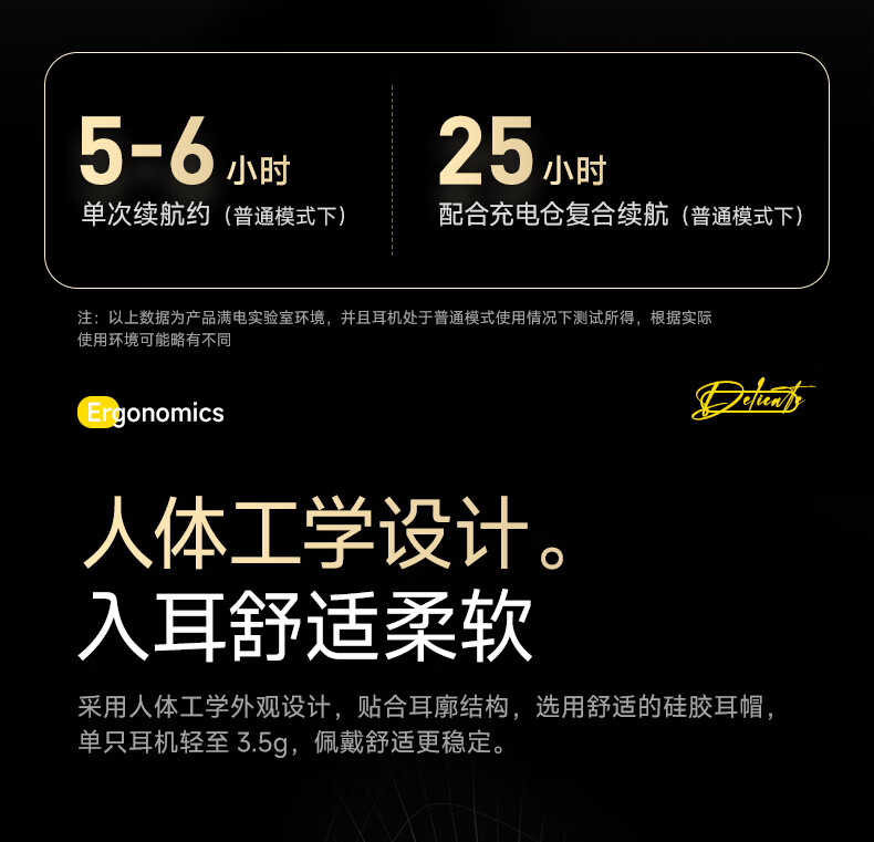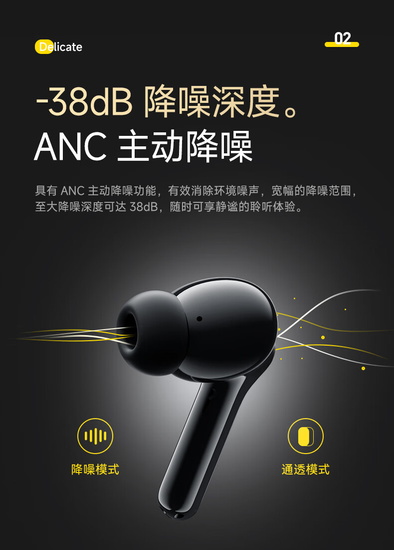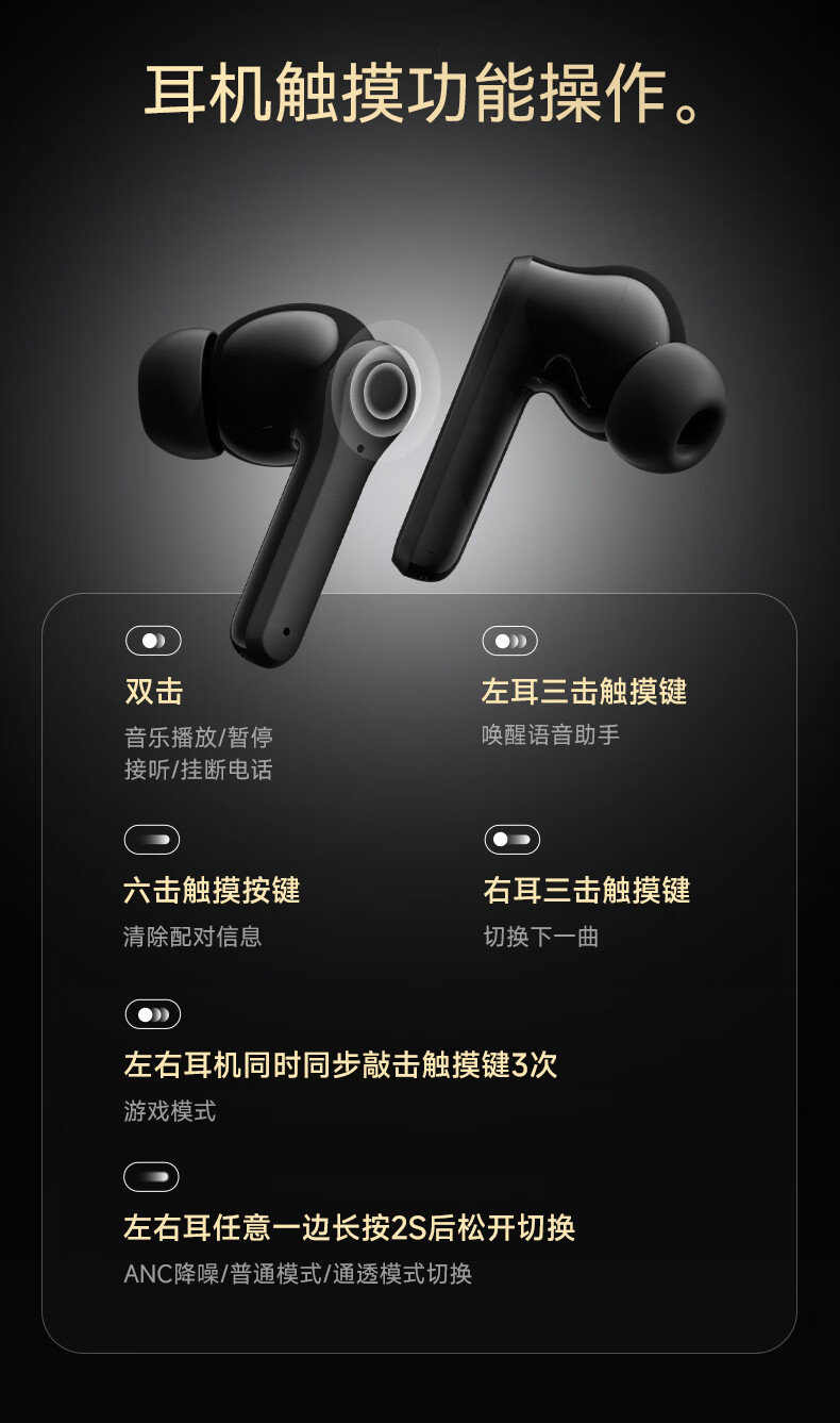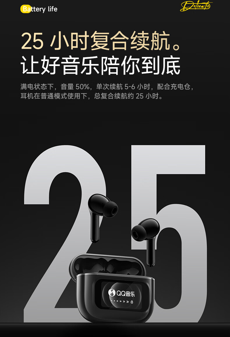 QQ音乐无线蓝牙耳机全彩智能主动降噪蓝牙5.4低延迟游戏ET66 黑色