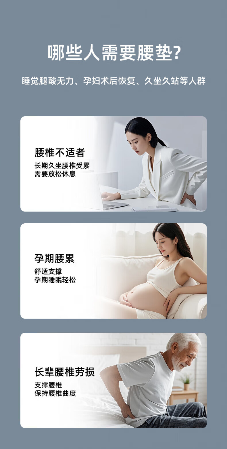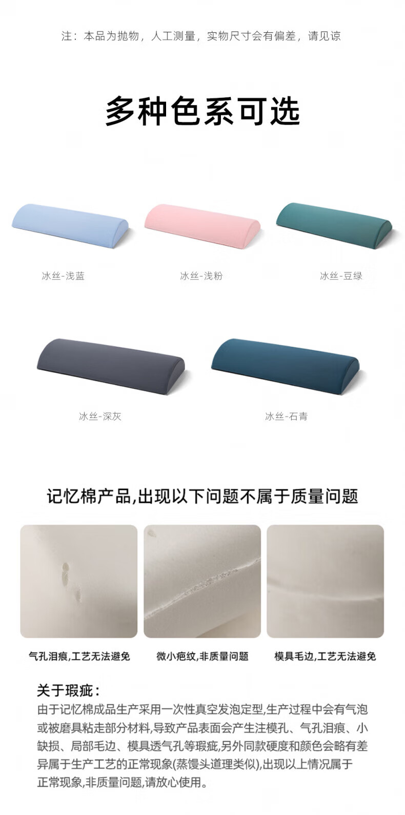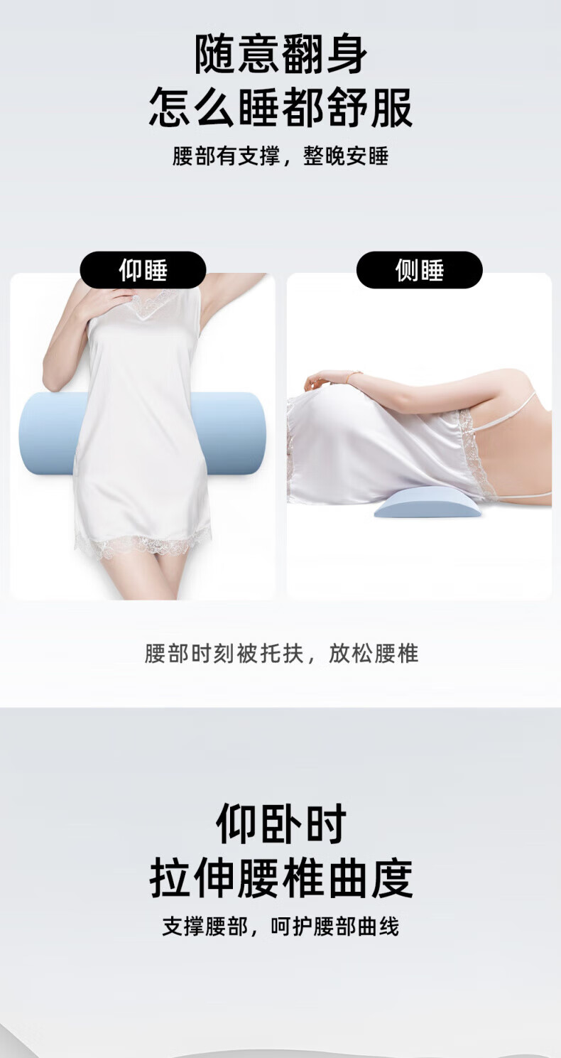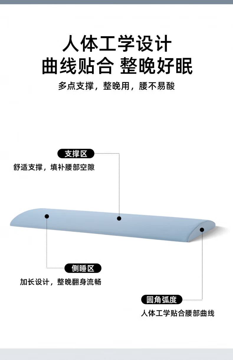 AILUKI日本腰枕睡觉专用腰垫护腰睡垫低腰托腰部支撑靠垫床上平躺腰椎盘 3cm低薄款_清凉冰丝-浅蓝色 48cm*20cm 【常规】