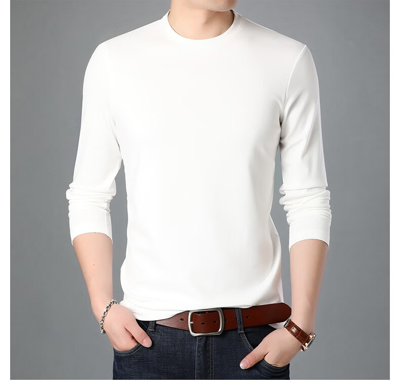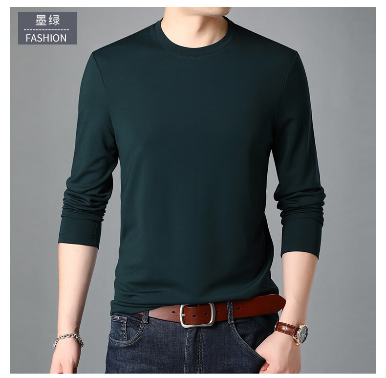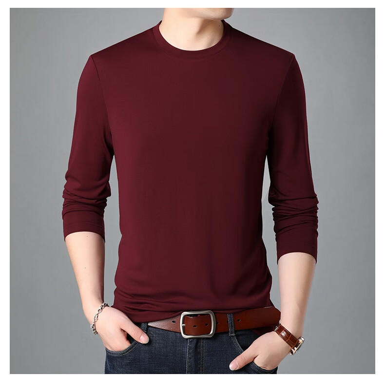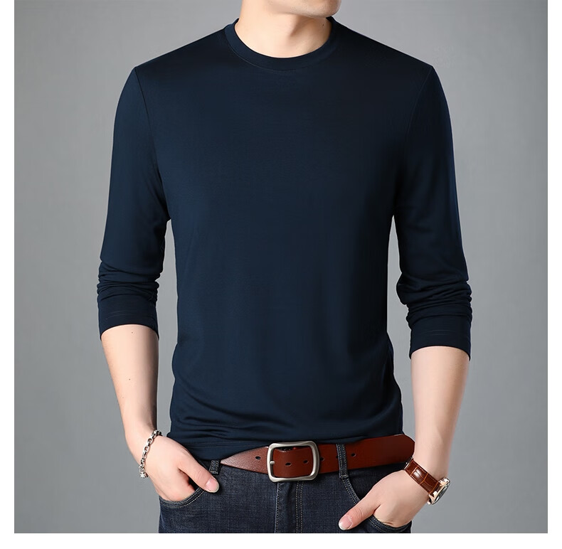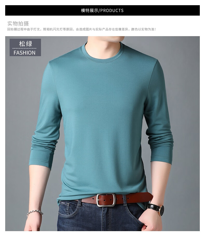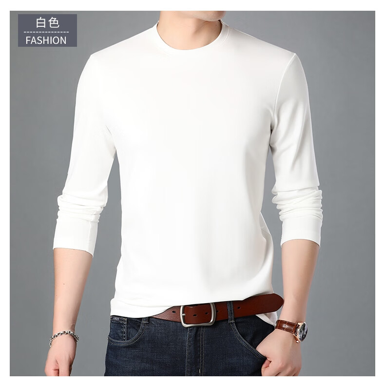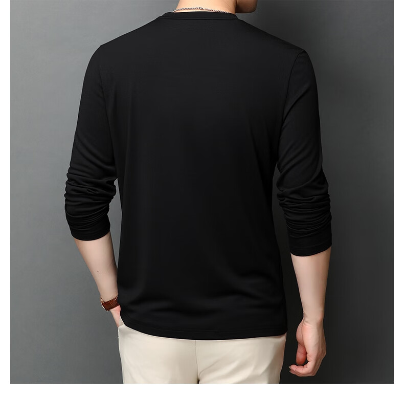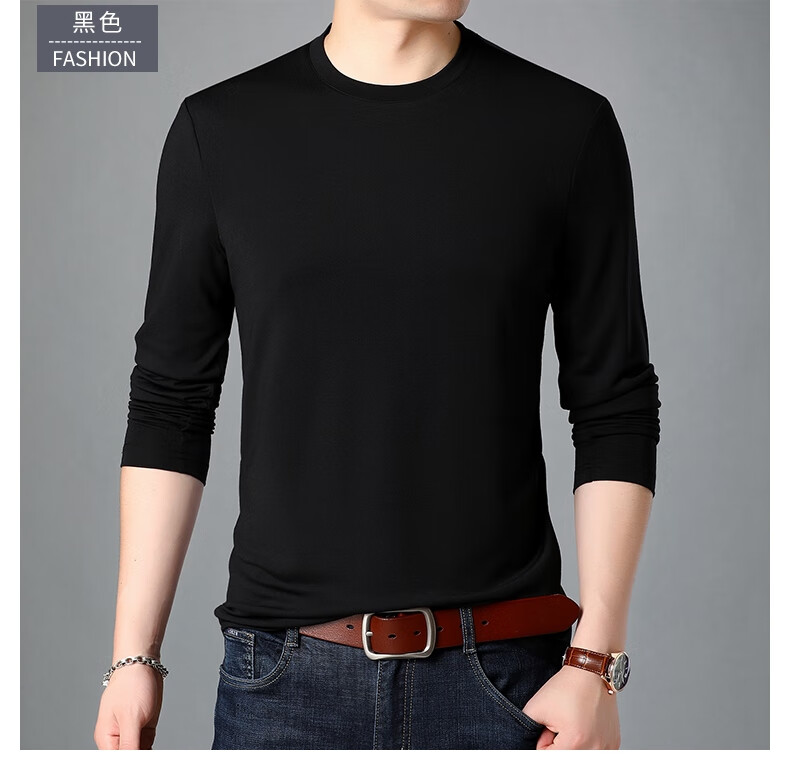 罗蒙(ROMON)白色西装男士打底衫莫代尔长袖t恤内衬春秋薄款男上衣 黑色 y6512 L 适合体重(120-140斤)