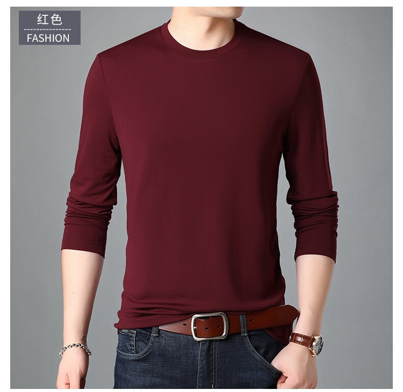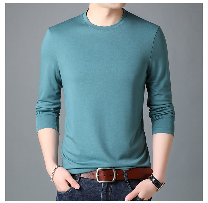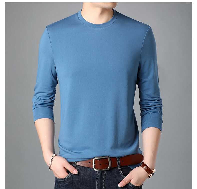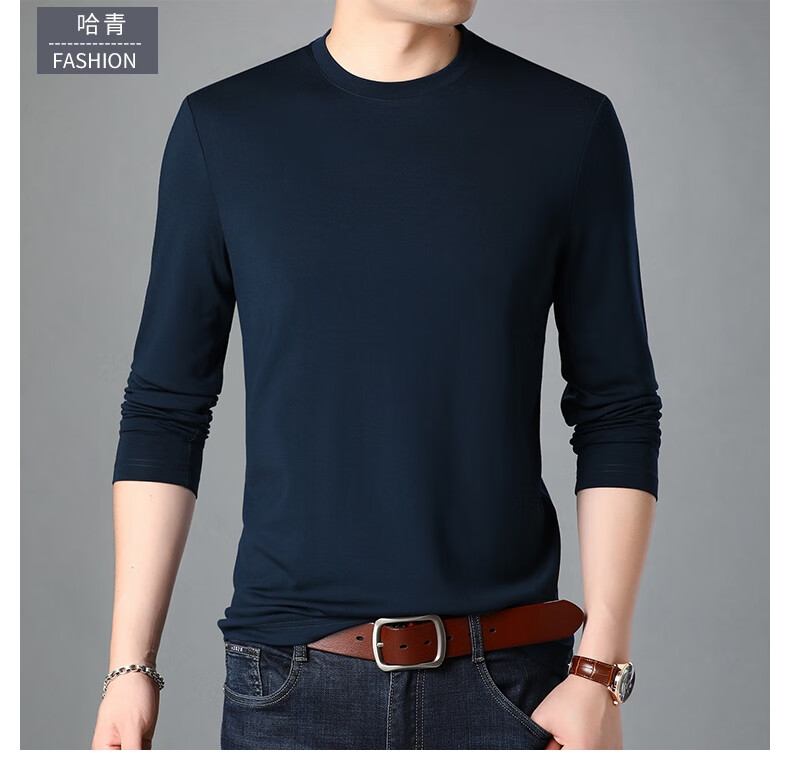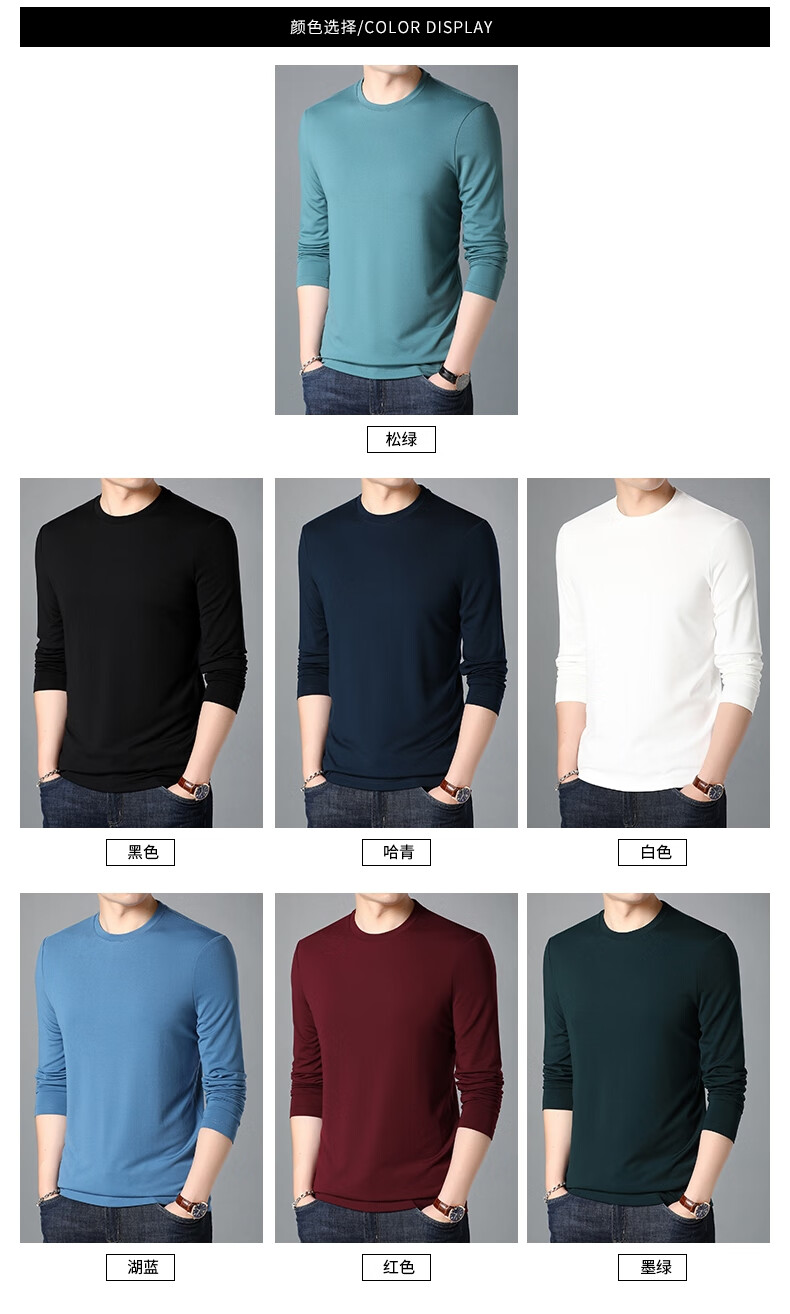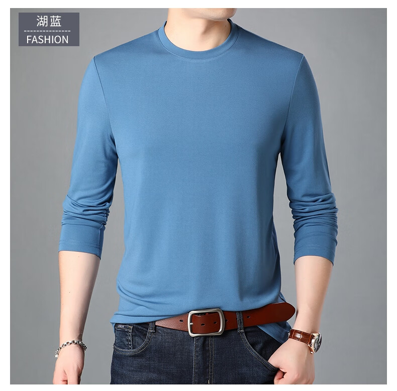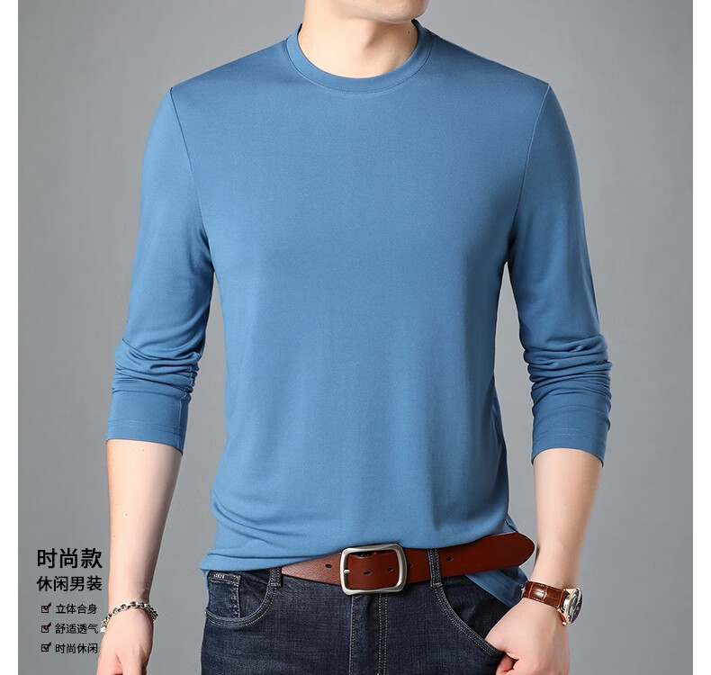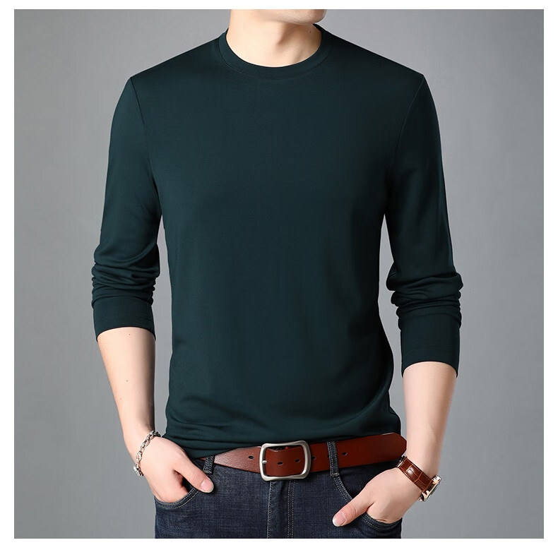 罗蒙(ROMON)白色西装男士打底衫莫代尔长袖t恤内衬春秋薄款男上衣 黑色 y6512 L 适合体重(120-140斤)