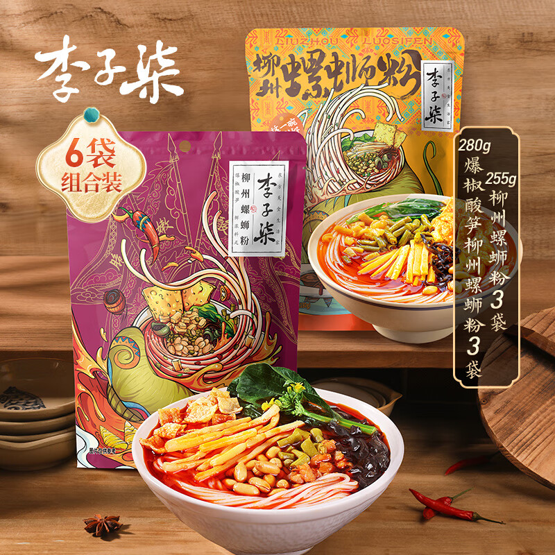 李子柒螺蛳粉(水煮型)组合装 广西柳州特产 方便速食米粉米线袋装 爆椒280g*2+京东诚心包238g*4