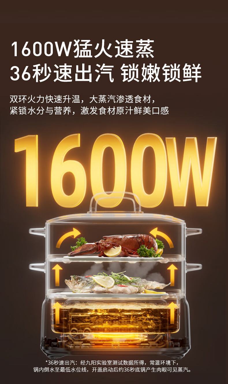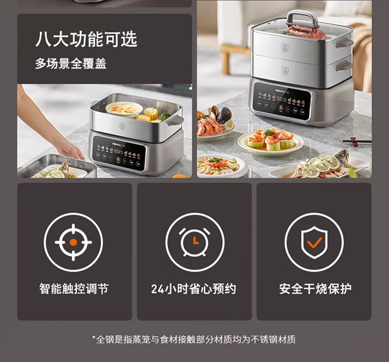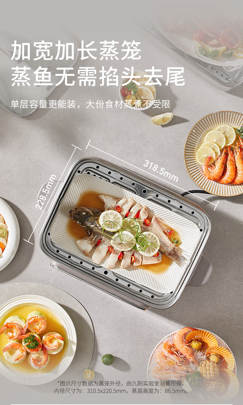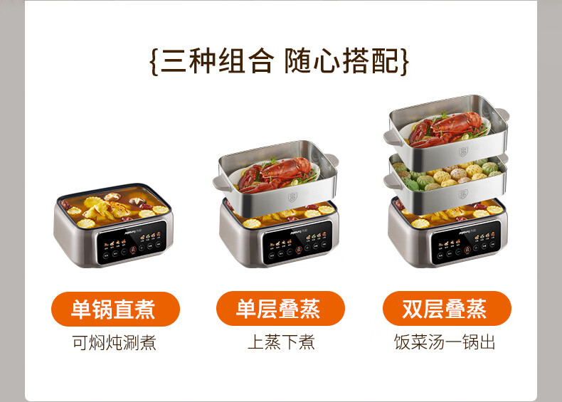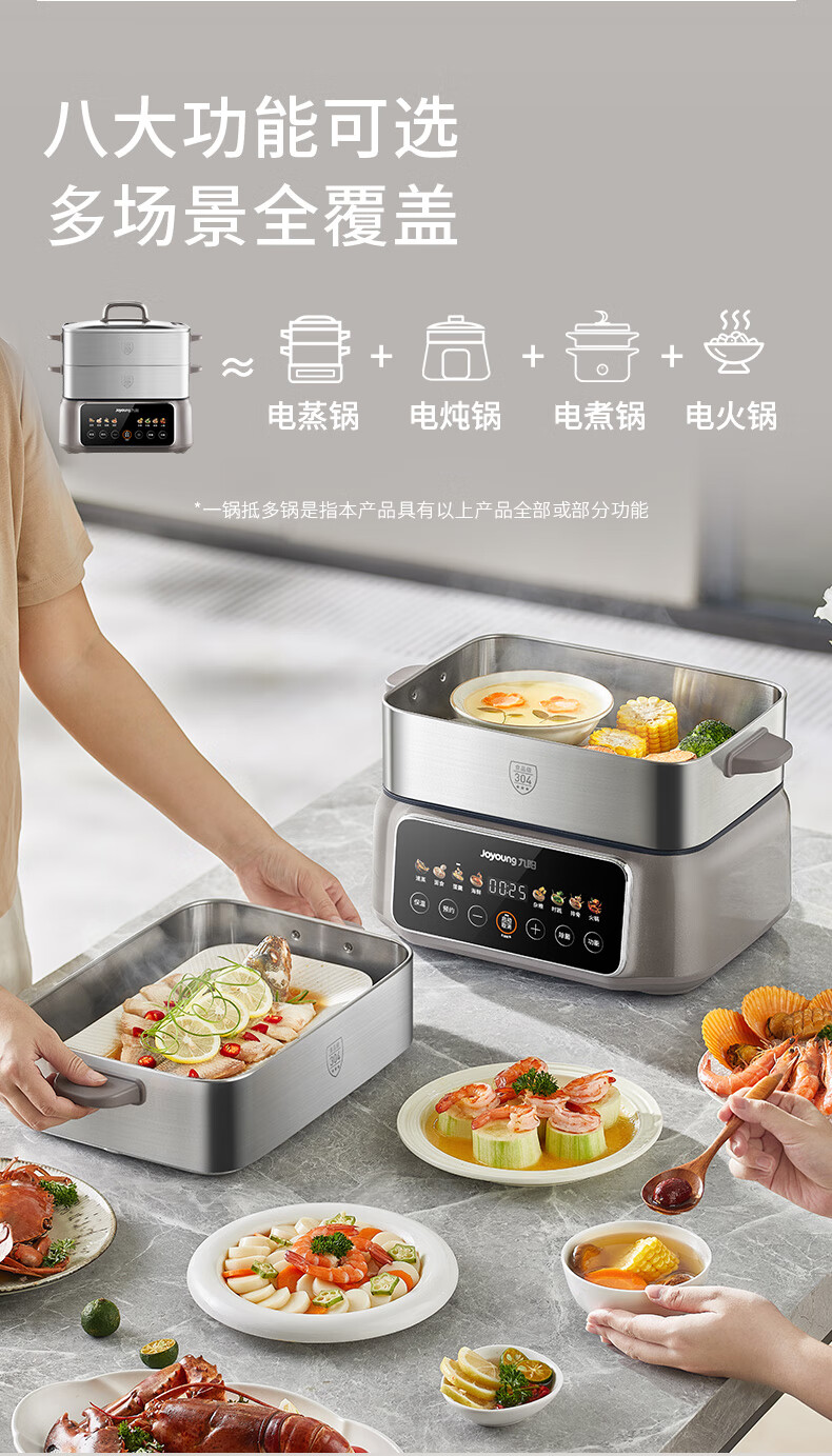 九阳(Joyoung)电蒸锅炖蒸煮一体3层18.5L大容量304不锈钢蒸屉电煮锅电火锅多功能3-6人家用可预约大功率电热锅 18.5L 【全钢蒸笼+36S出蒸汽】2层蒸笼+煮锅