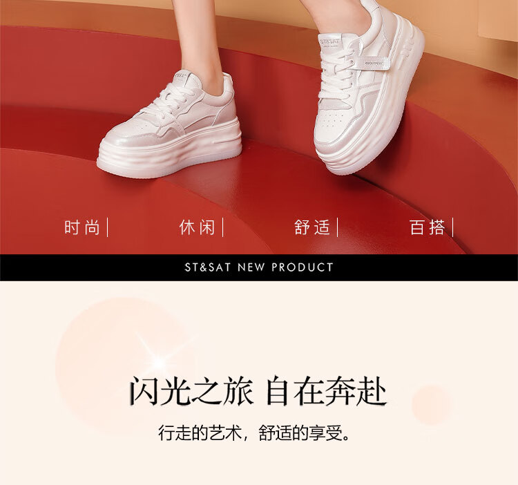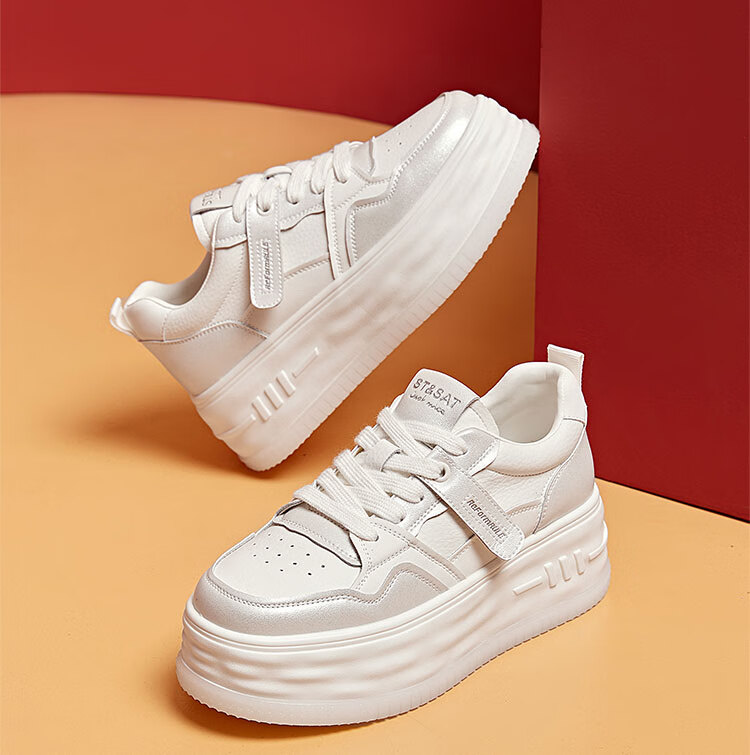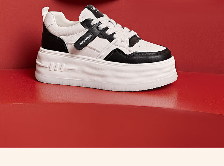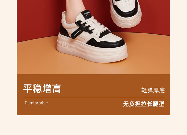 星期六厚底增高小白鞋女2025秋季新款时尚百搭休闲鞋潮流运动板鞋 黑色 36