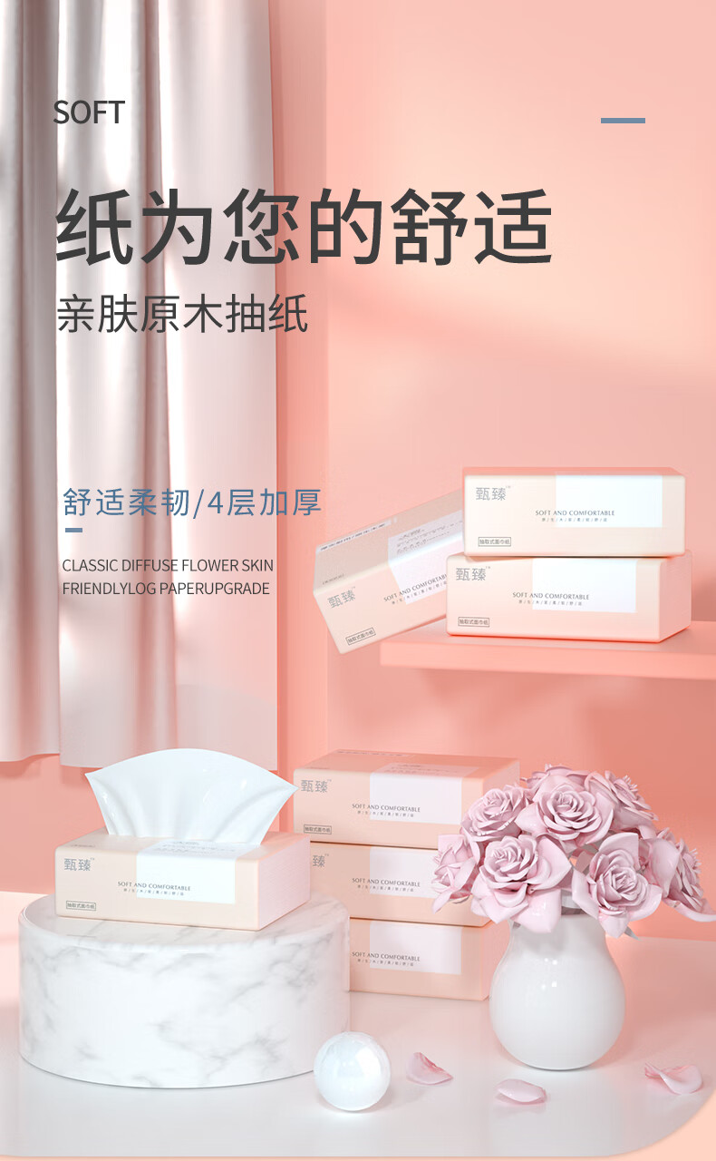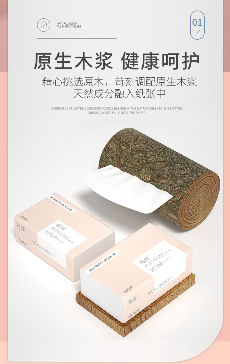天微【甄选直发】加量家用面巾纸原木便携抽取式纸巾抽纸卫生纸 4层32抽1包