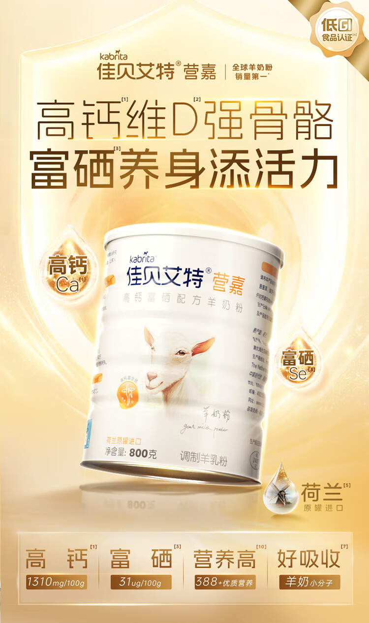 佳贝艾特羊奶粉营嘉高钙富硒无蔗糖成人中老年奶粉800g荷兰进口春节送礼 【荷兰进口】高钙800g