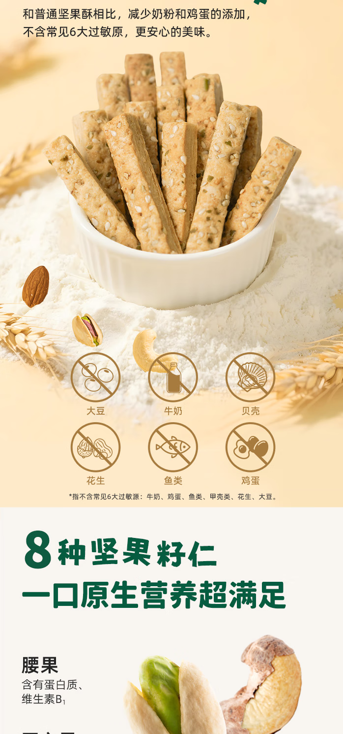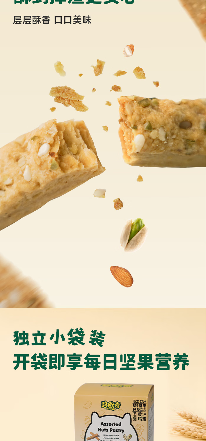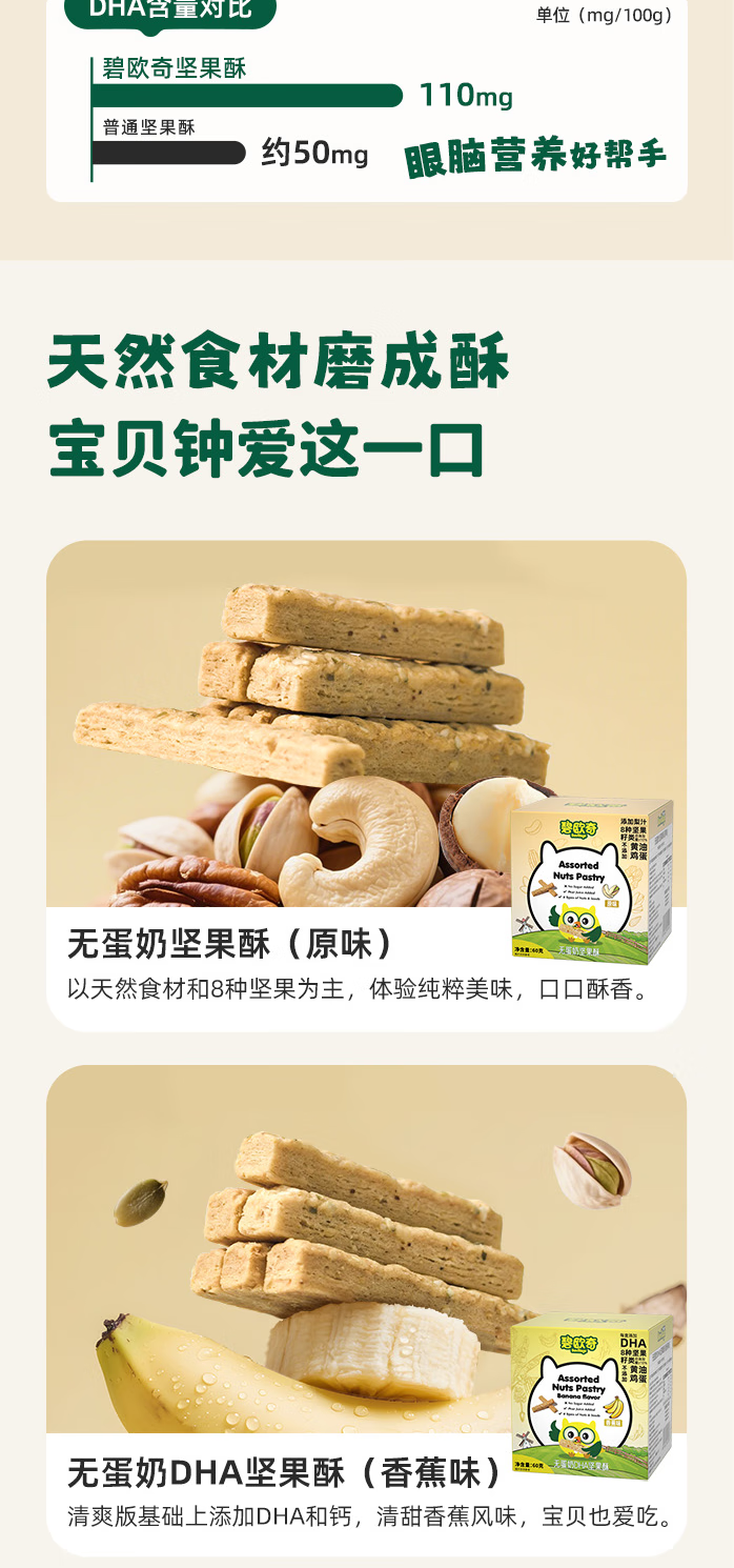 碧欧奇每日坚果酥 无蛋奶儿童宝宝零食磨牙棒饼干独立小包装 3盒(原味2+香蕉1)