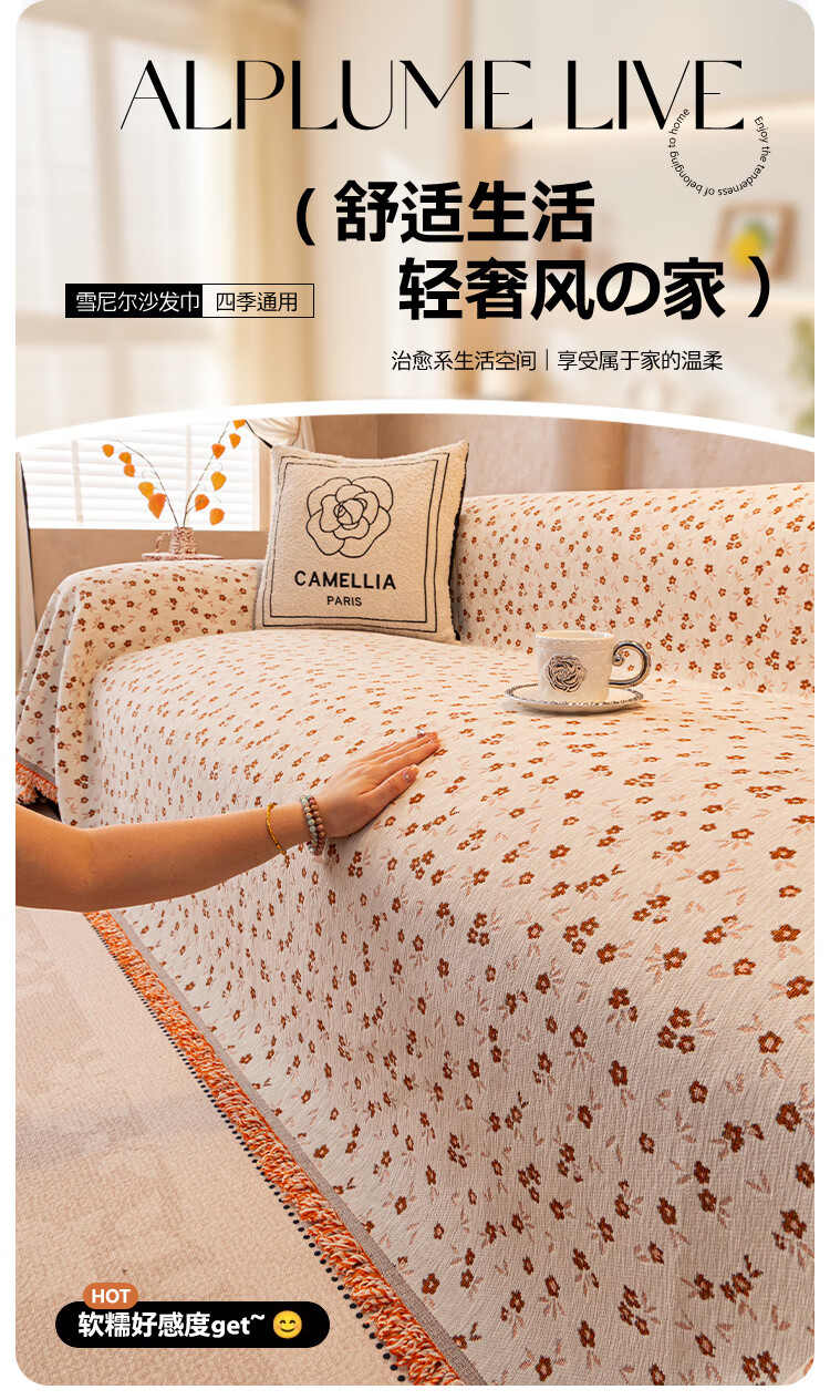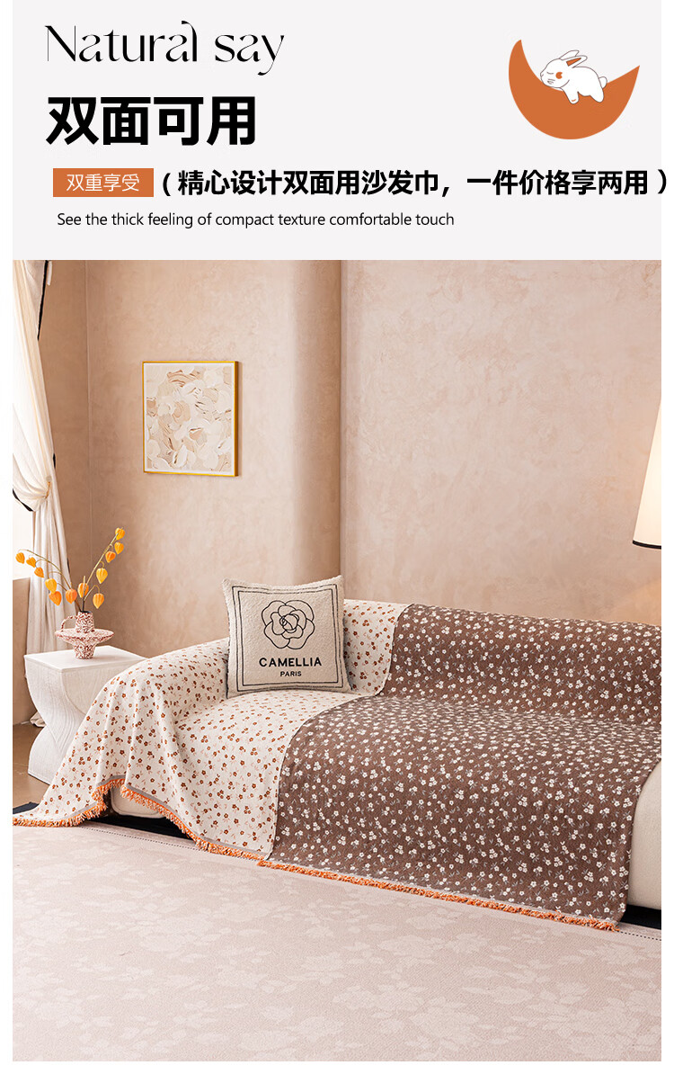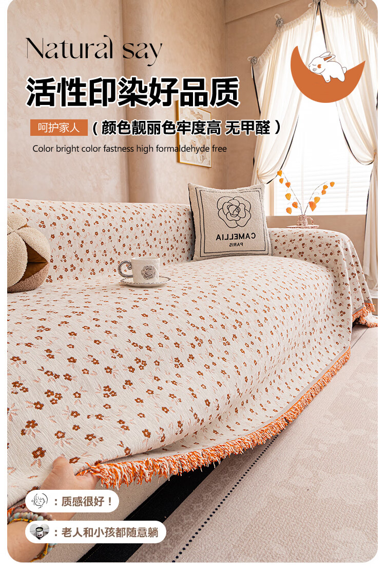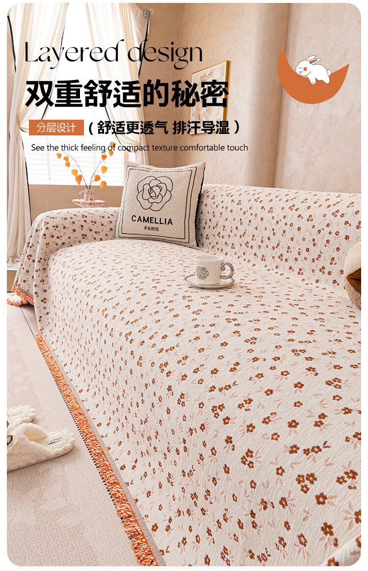 缔卓怡经典小碎花沙发盖巾防猫抓四季通用沙发垫套罩一整张防滑全盖毯 漫花私语-黑色 180cm*130cm (适用于单人位/脚踏)