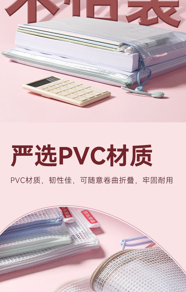 京东京造【热门商品】马卡龙色系A4文件袋网格拉链袋5个装学生科目分类试卷收纳袋考试袋大容量JD6006