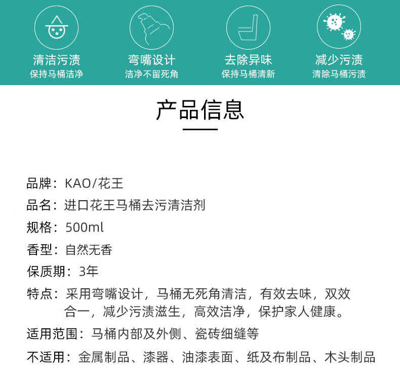 花王(KAO)马桶清洁剂500ml*2 弯嘴洁厕灵 洁厕液 厕所清洁剂 原装进口