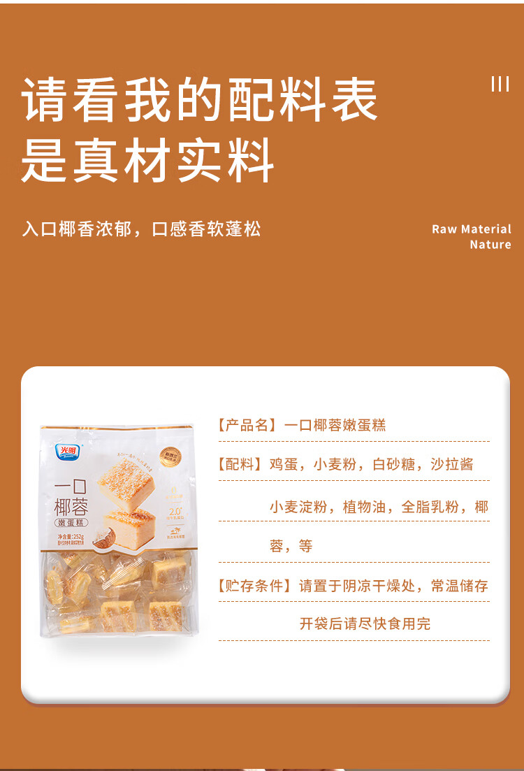 光明一口椰蓉嫩蛋糕 252g*袋 年货节吐司全麦面包蛋糕早餐零食代餐