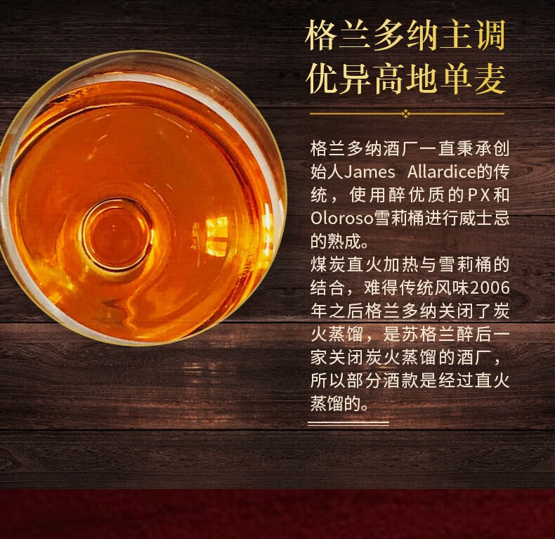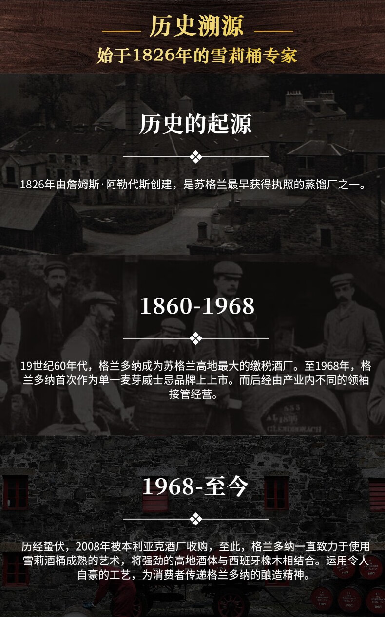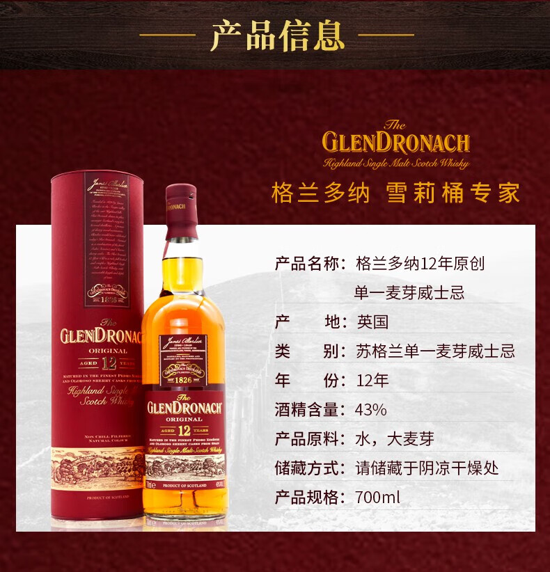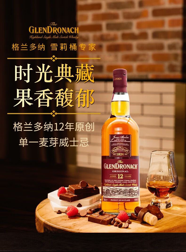 格兰多纳(GLENDRONACH)12年 单一麦芽威士忌 700ml 43度 礼盒装 年货送礼