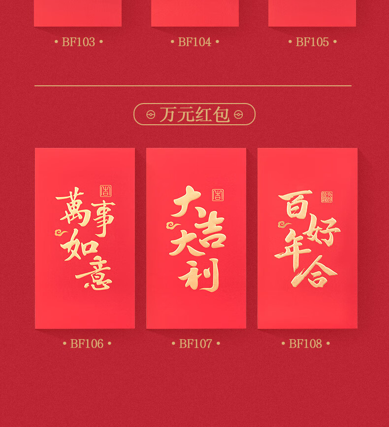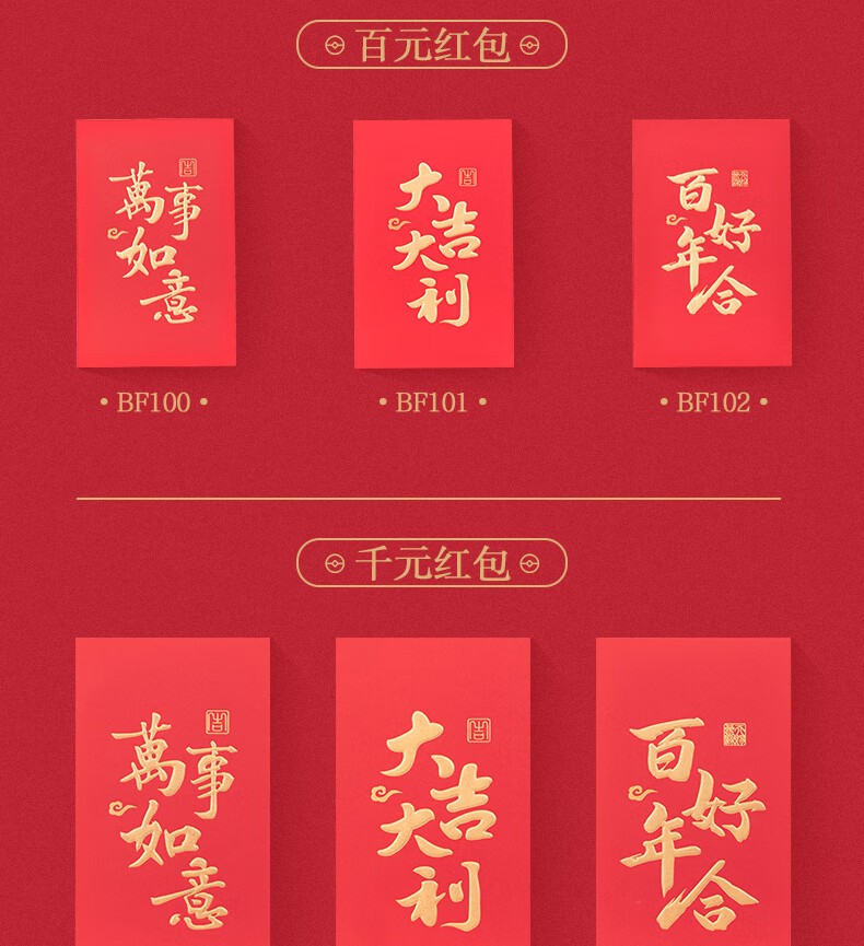 新年红包蛇年春节新年快乐压岁包大吉大利万事如意恭喜发财通用袋 新年快乐 6个装(大号)百元可平放