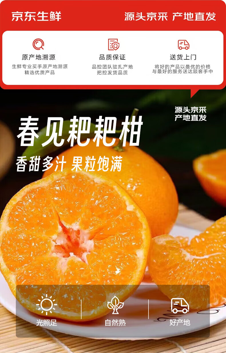 京觅四川春见耙耙柑粑粑柑净重8斤单果70mm+生鲜水果源头直发包邮