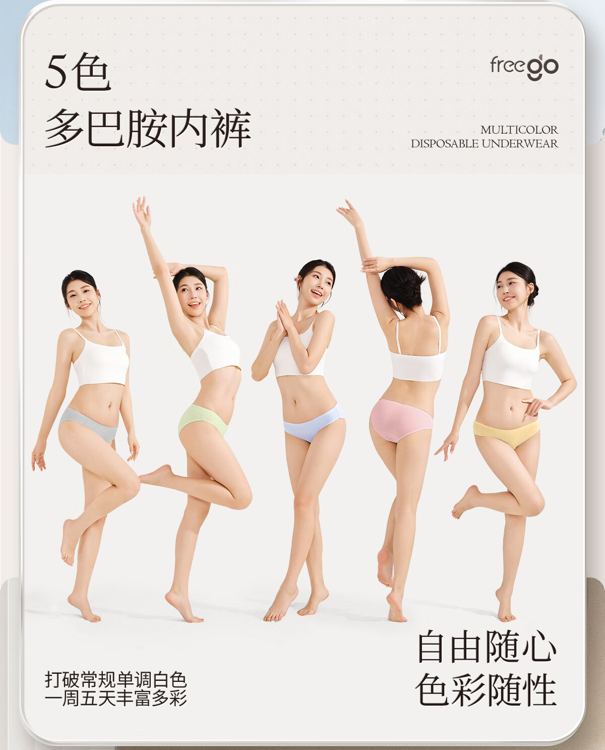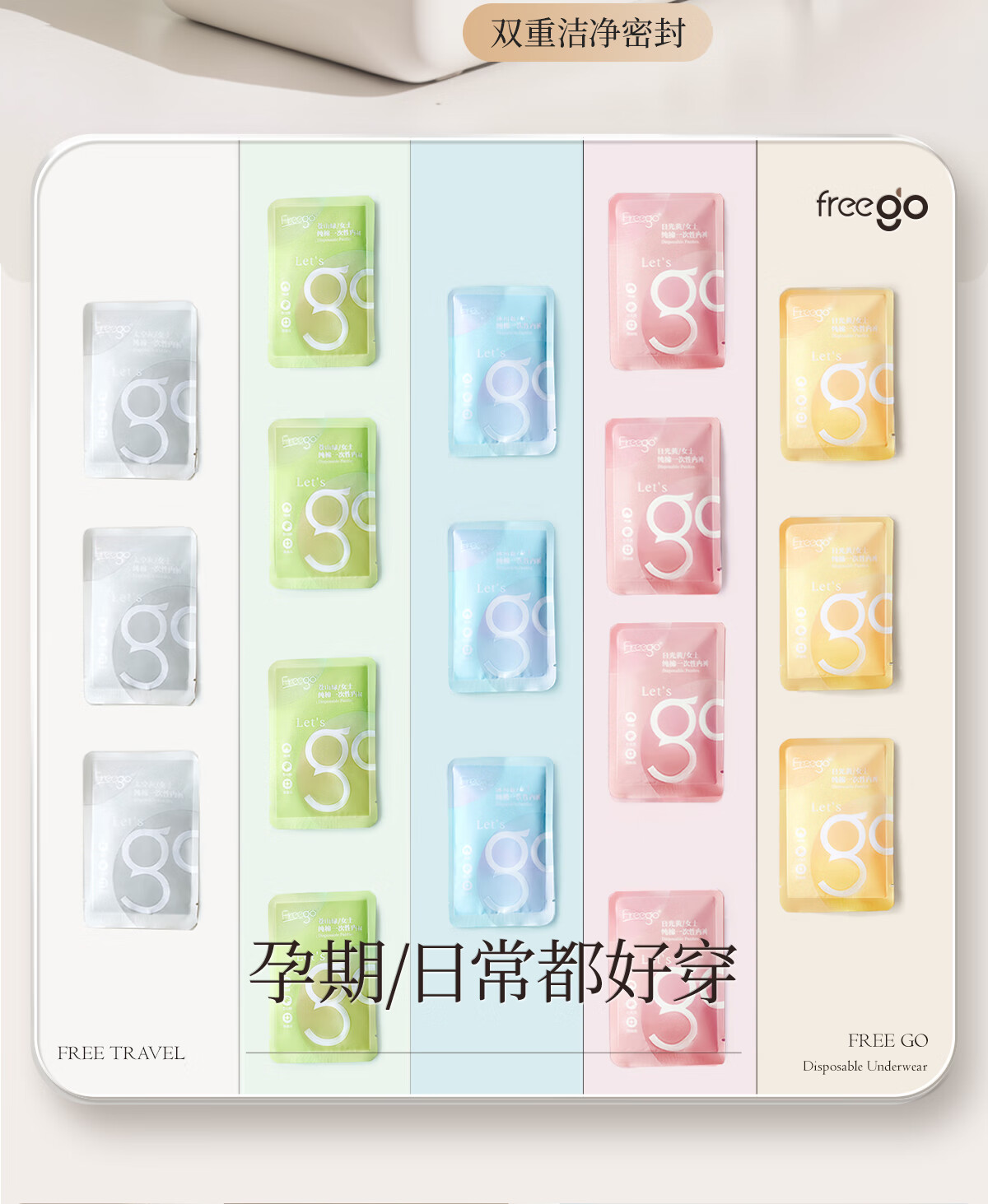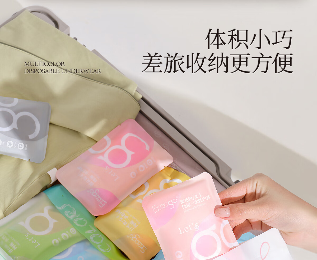Freego纯棉彩色一次性内裤女灭菌免洗日抛多彩孕妇产妇生理期女士XL5条