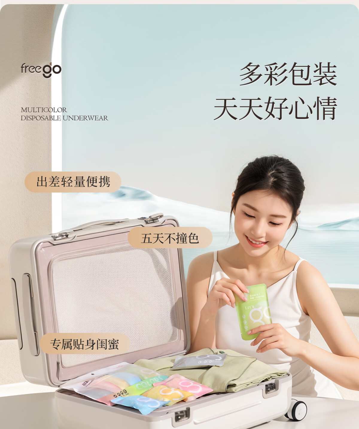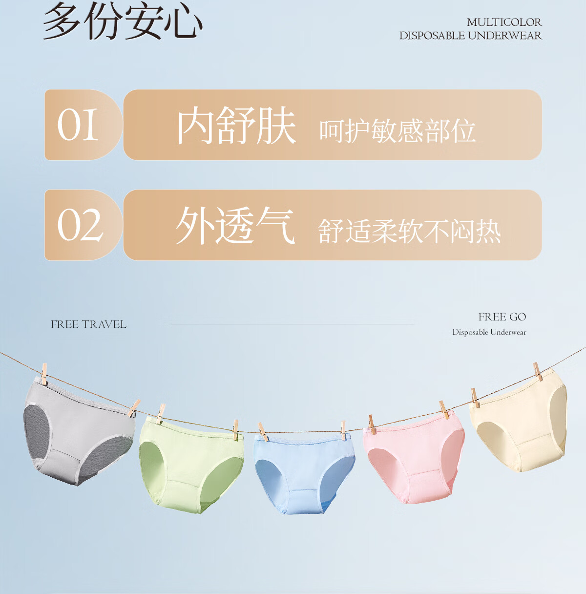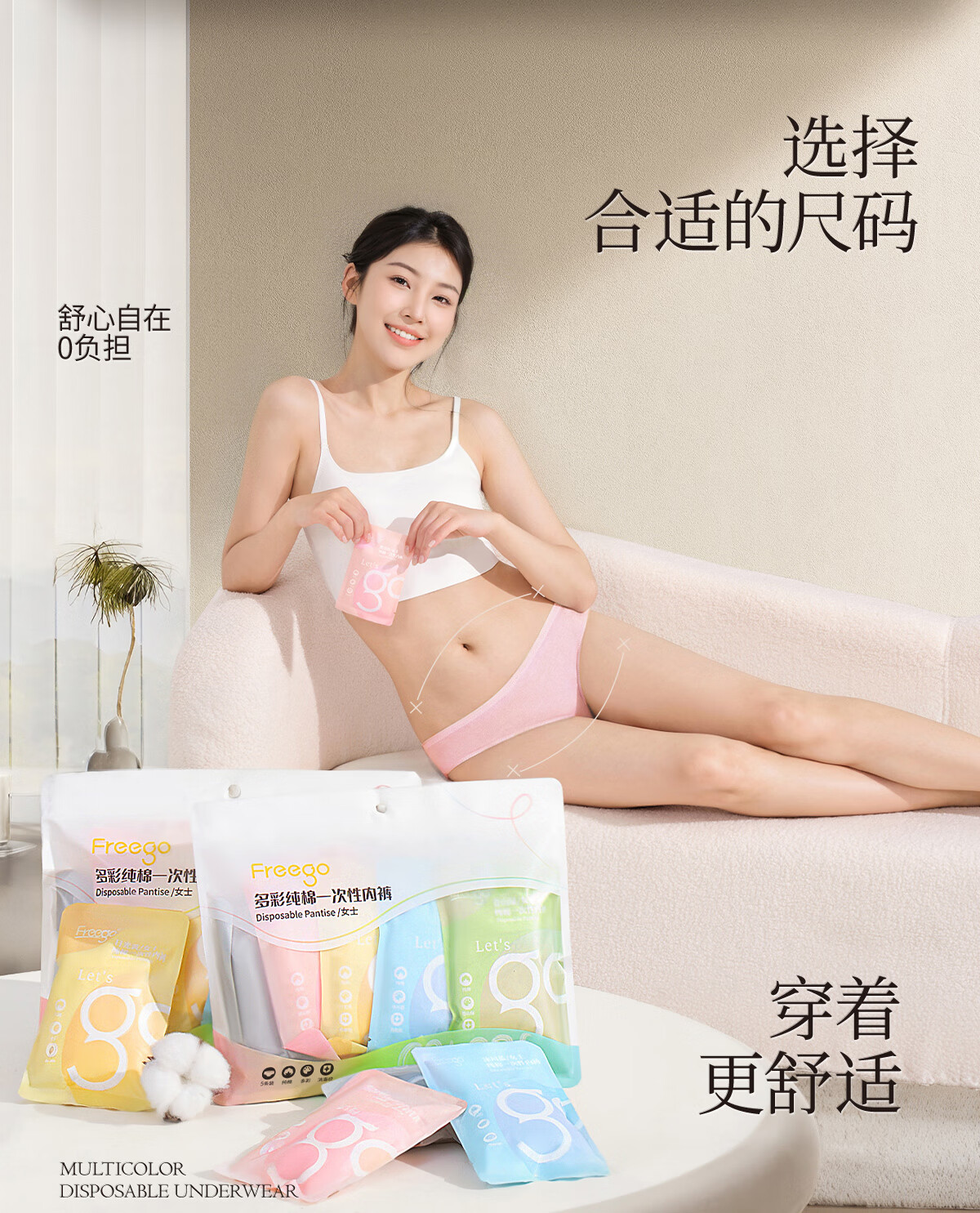 Freego纯棉彩色一次性内裤女灭菌免洗日抛多彩孕妇产妇生理期女士XL5条