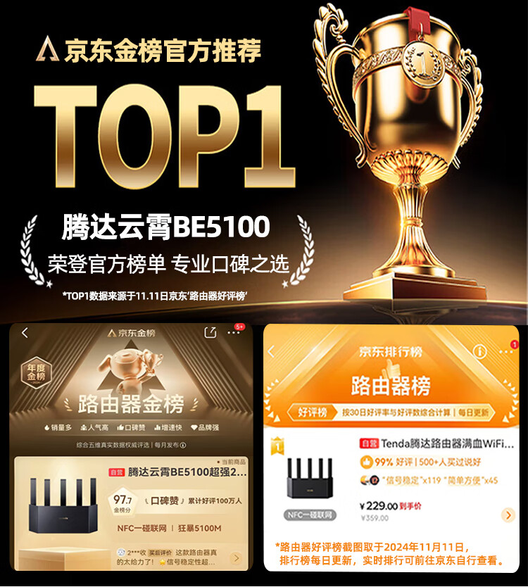 Tenda腾达路由器WiFi7【云霄BE5100】千兆穿墙王信号增强无线超强2.5g网口家用电竞放大器立式BE6L Pro