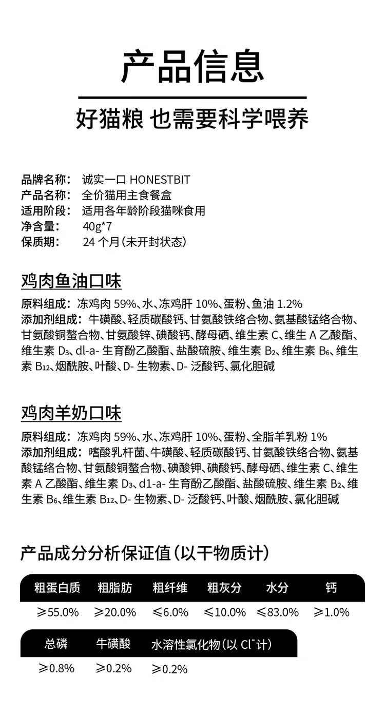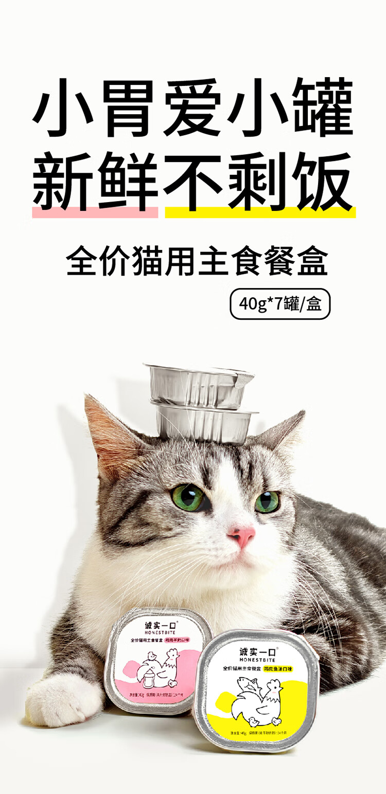 诚实一口全价成猫幼猫用主食餐盒营养湿粮混合口味40g*2