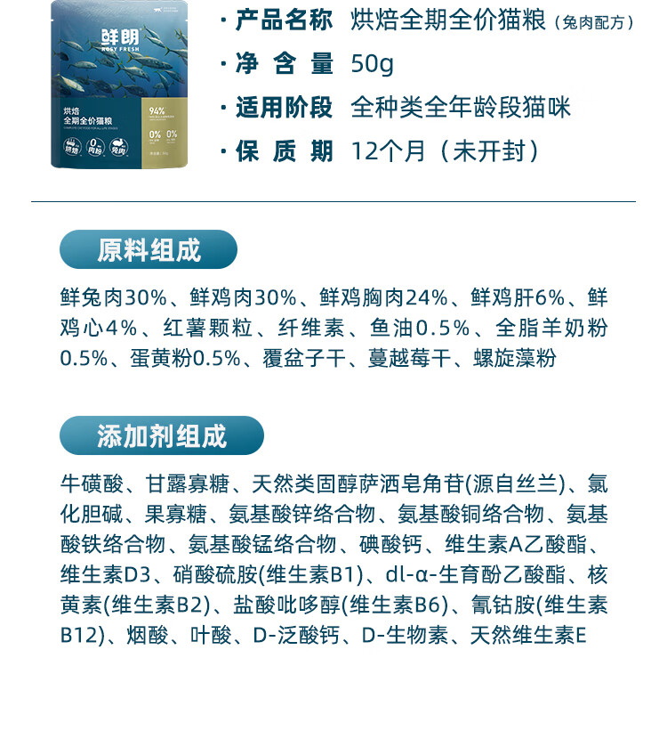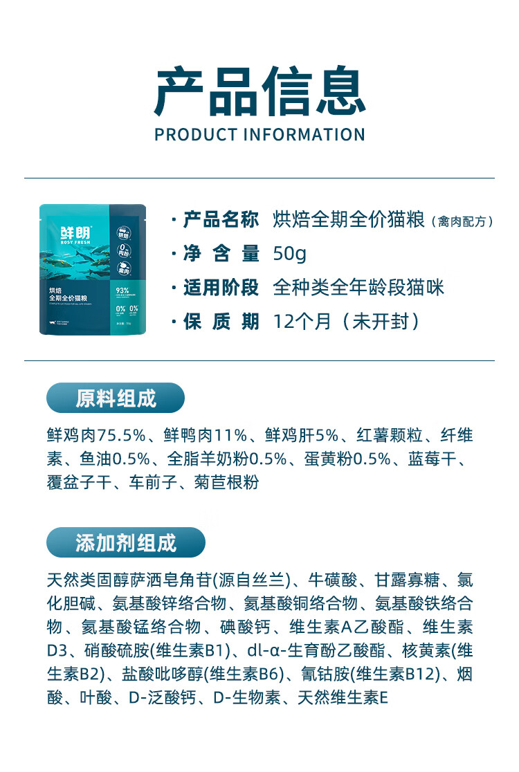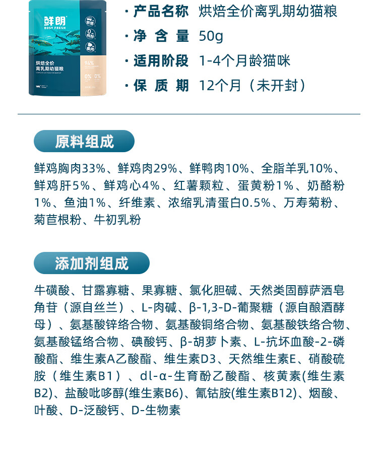 鲜朗低温烘焙猫粮冻干生骨肉天然无谷幼猫成猫全阶段鲜郎换粮试吃试用 烘焙猫粮禽肉试吃装 250g(实惠装50g*5包)
