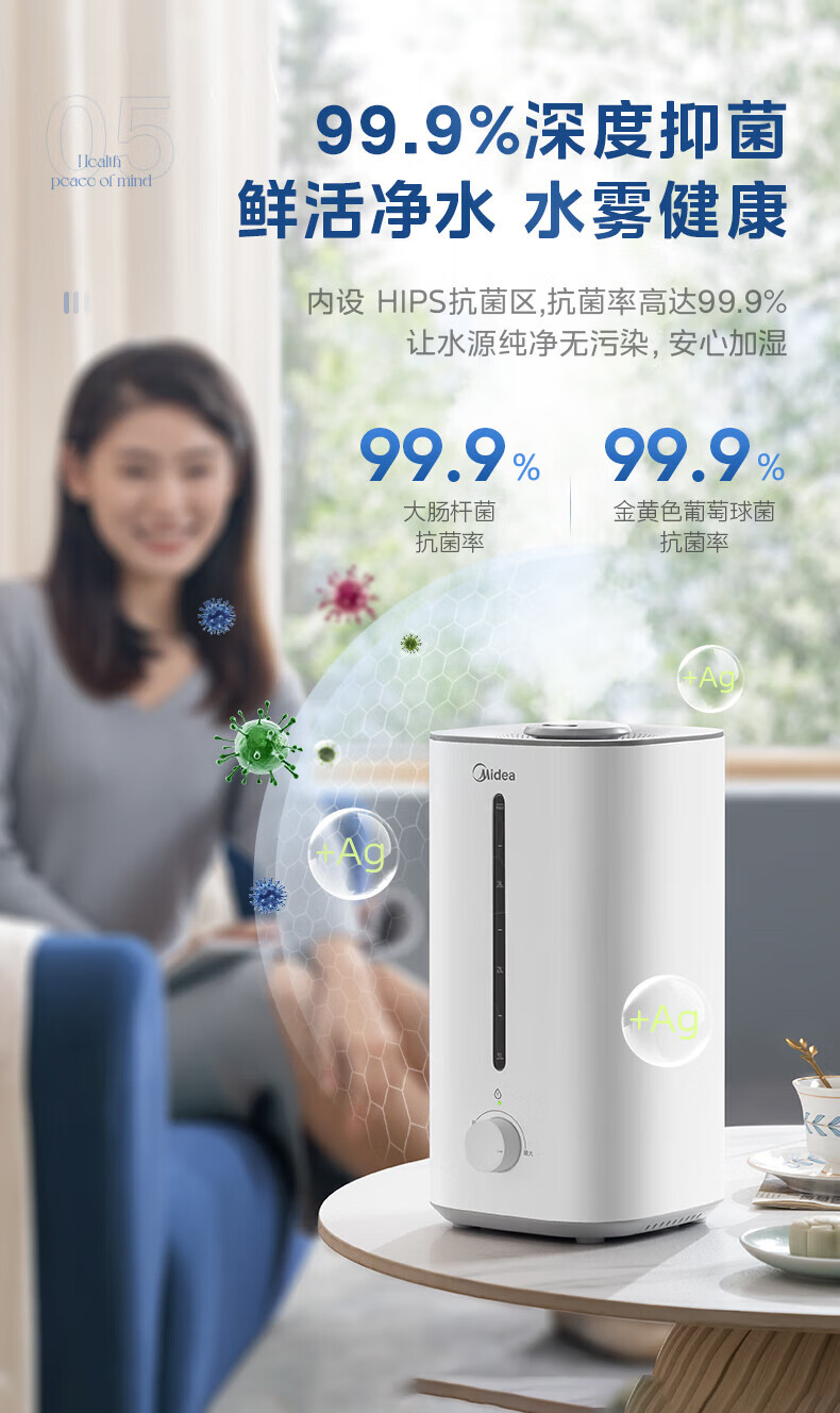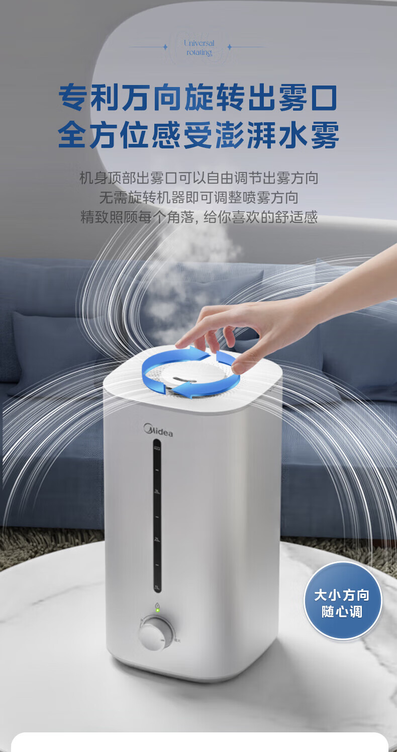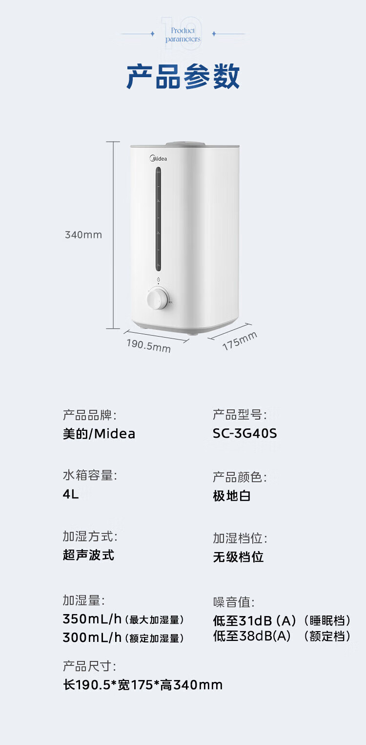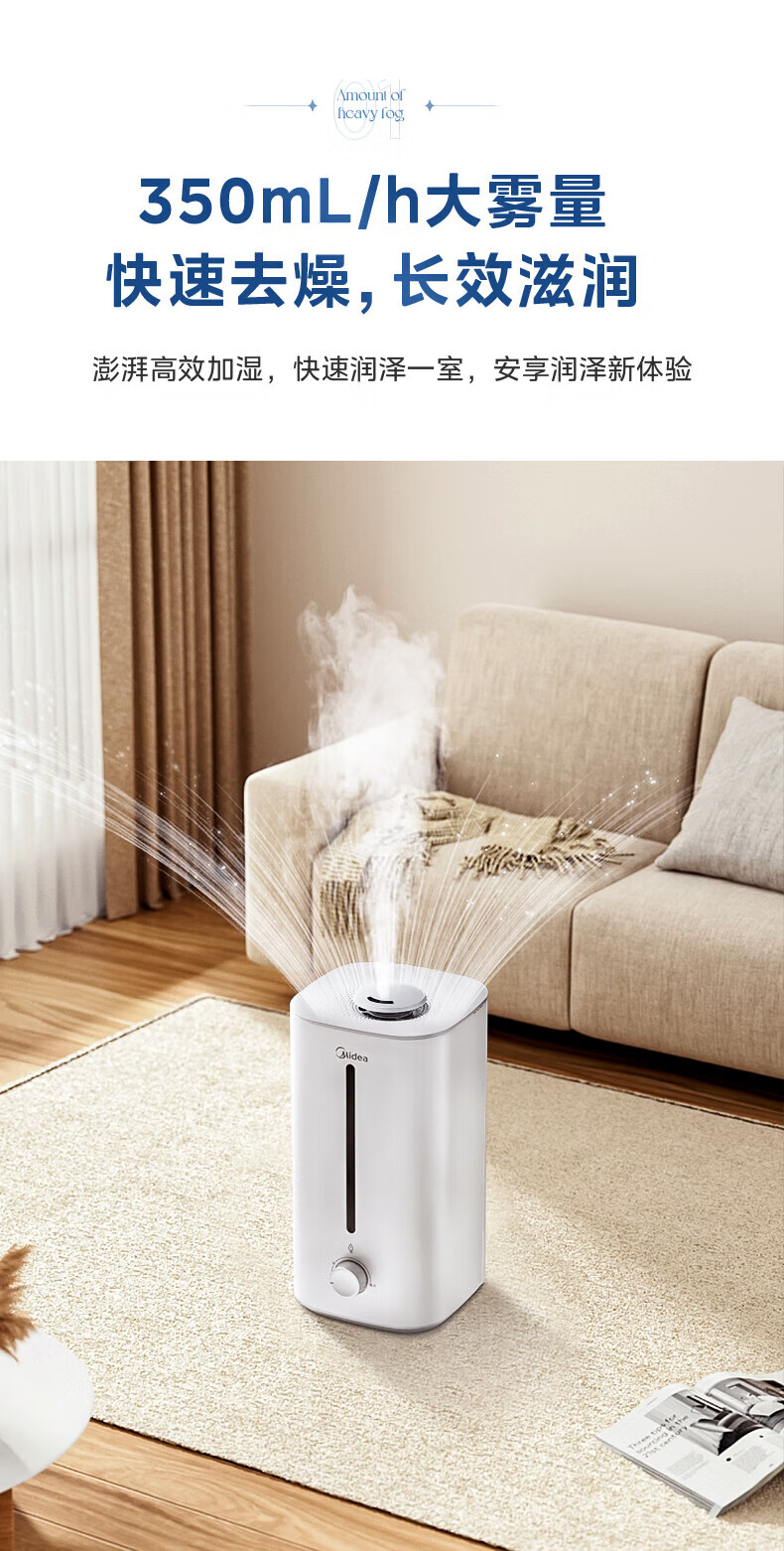 美的(Midea)加湿器空气净化器一体鼻炎家用卧室客厅孕妇婴幼儿静音除菌喷雾器桌面小型工业迷你雾化器SC-3G40S 【桌面安睡】350ml/h