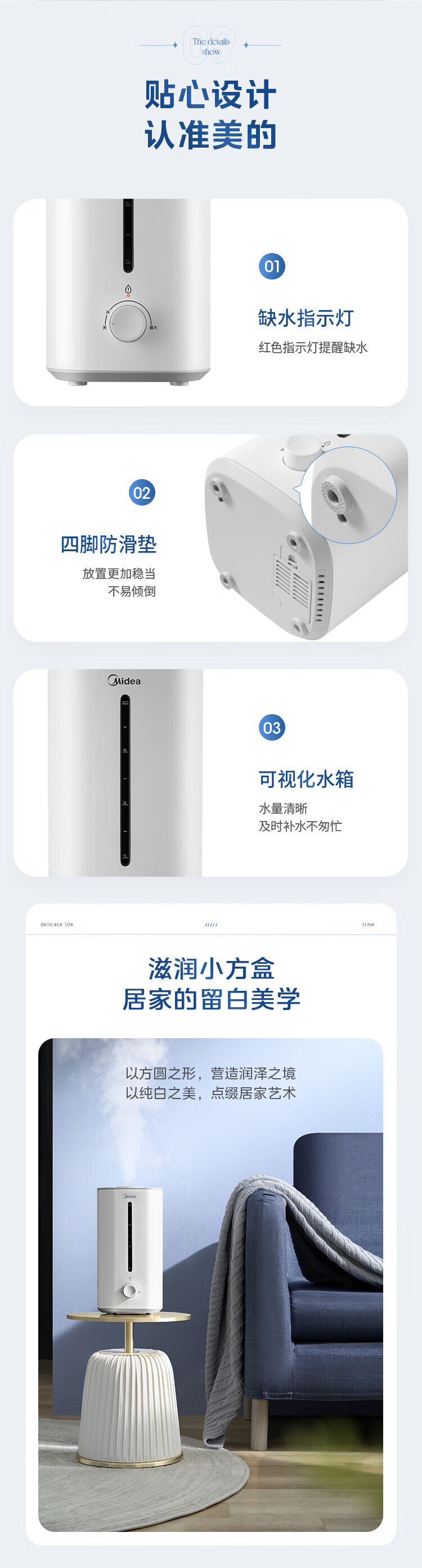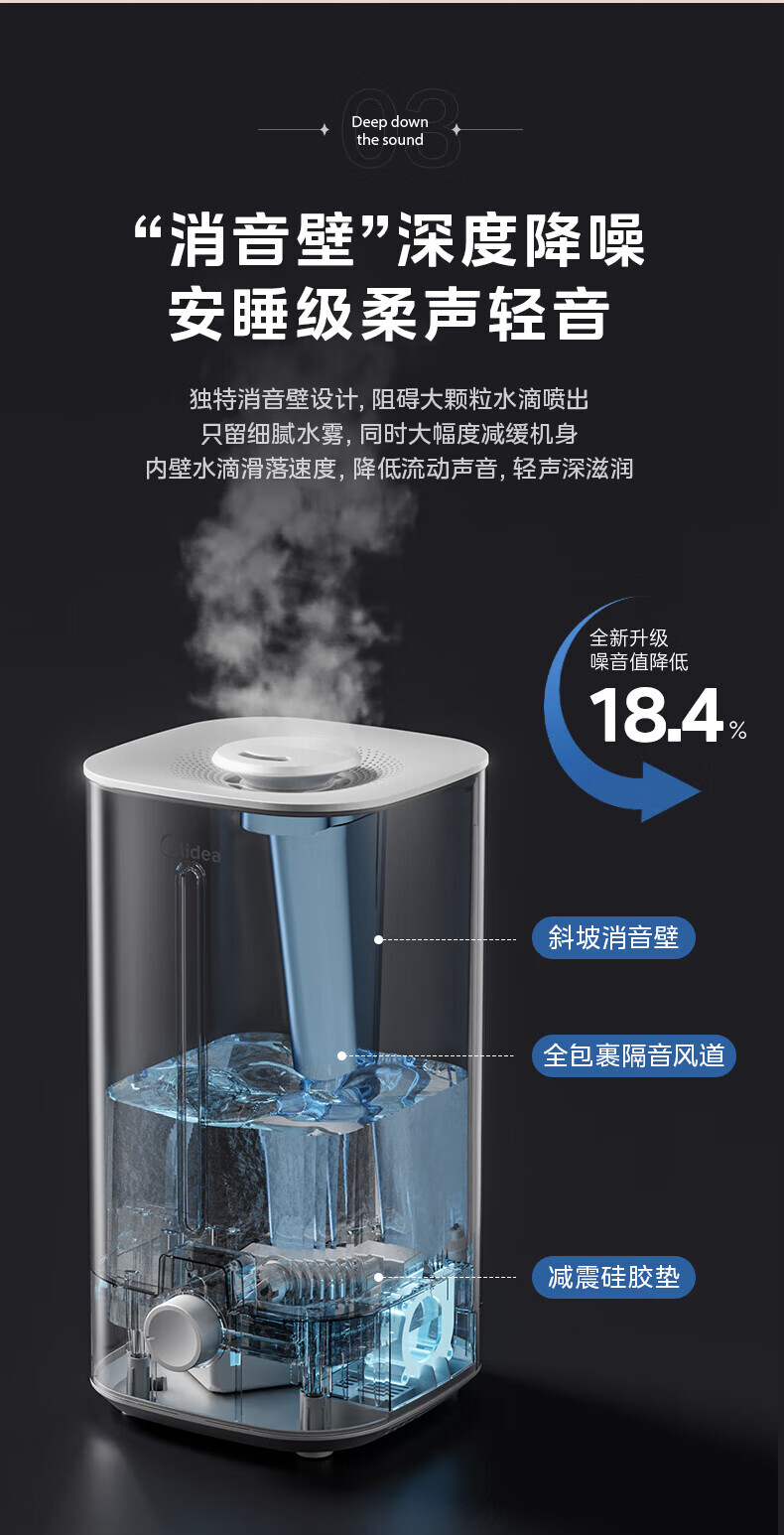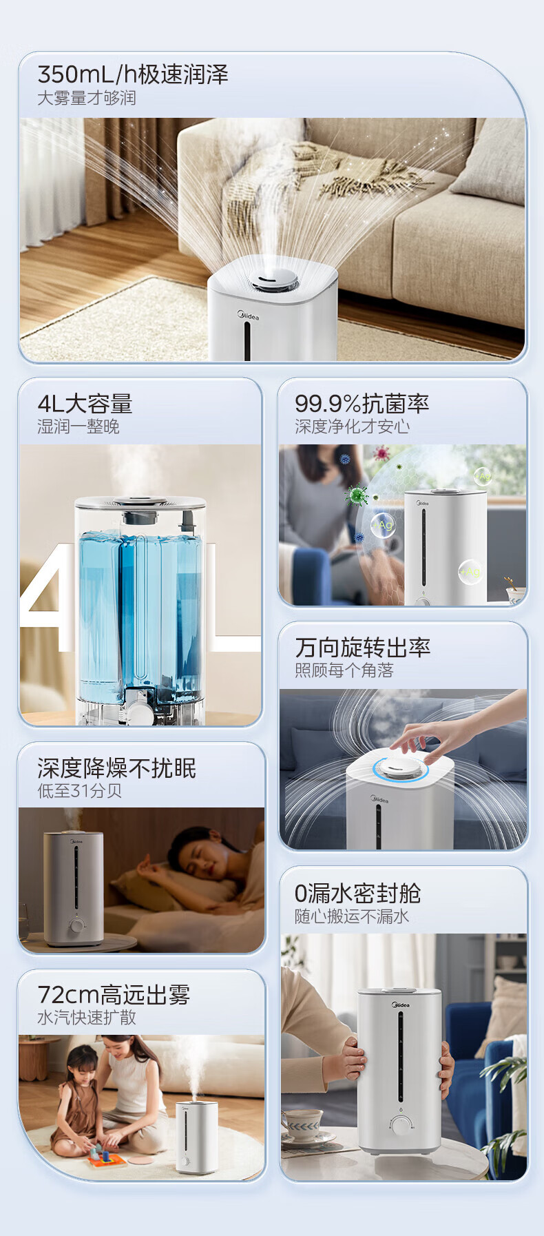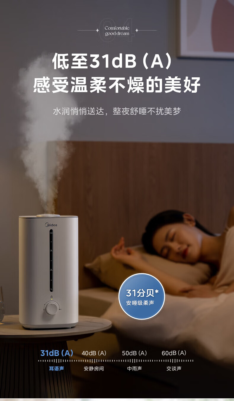 美的(Midea)加湿器空气净化器一体鼻炎家用卧室客厅孕妇婴幼儿静音除菌喷雾器桌面小型工业迷你雾化器SC-3G40S 【桌面安睡】350ml/h