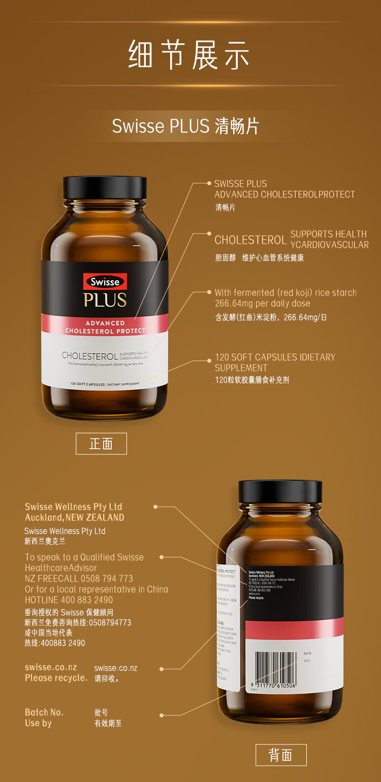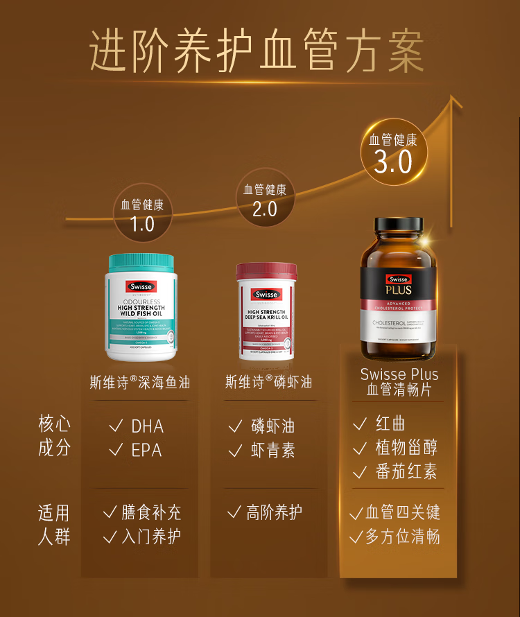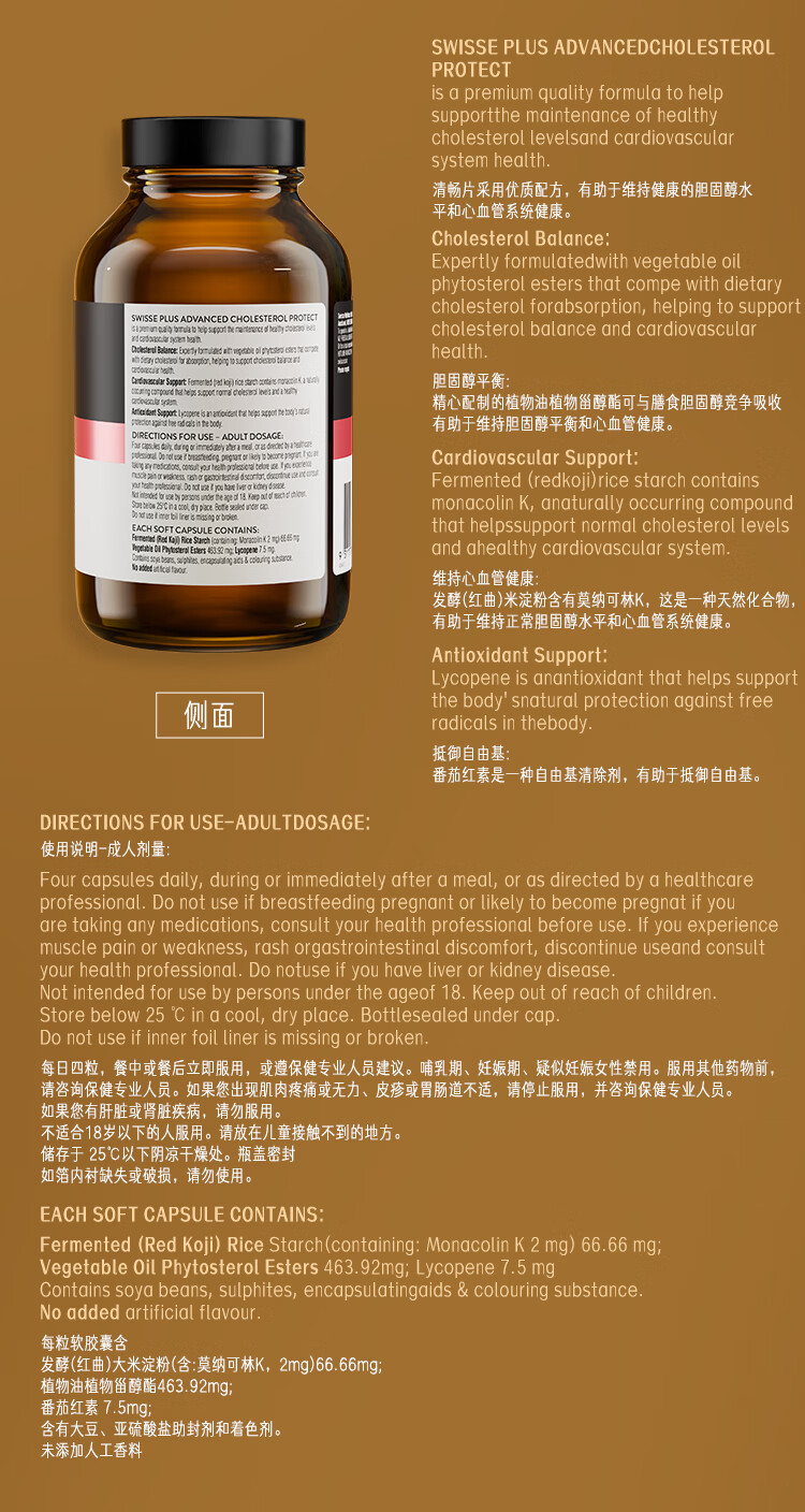 Swisse斯维诗 PLUS血管清畅片 红曲植物甾醇番茄红素护心血管 120粒/瓶
