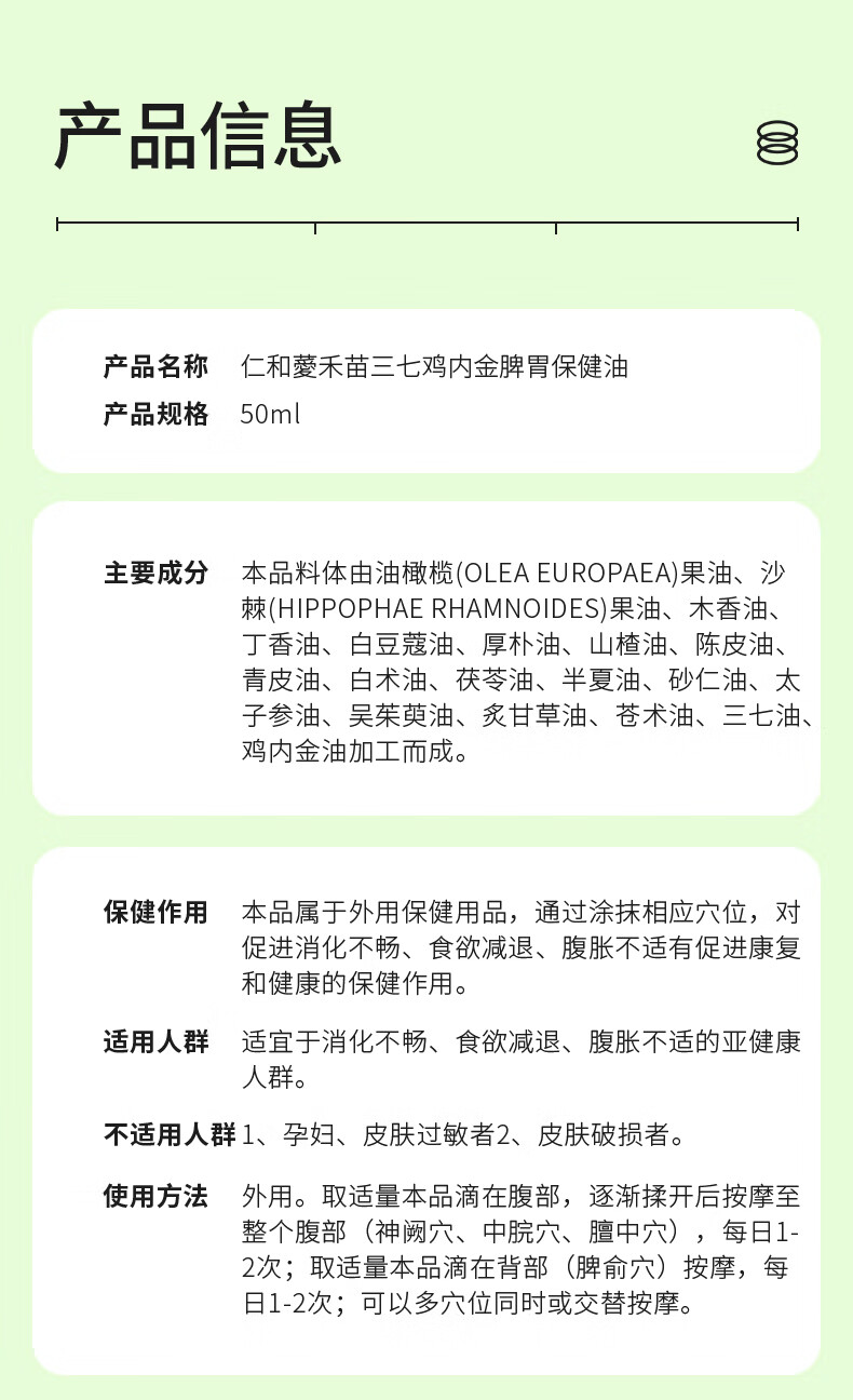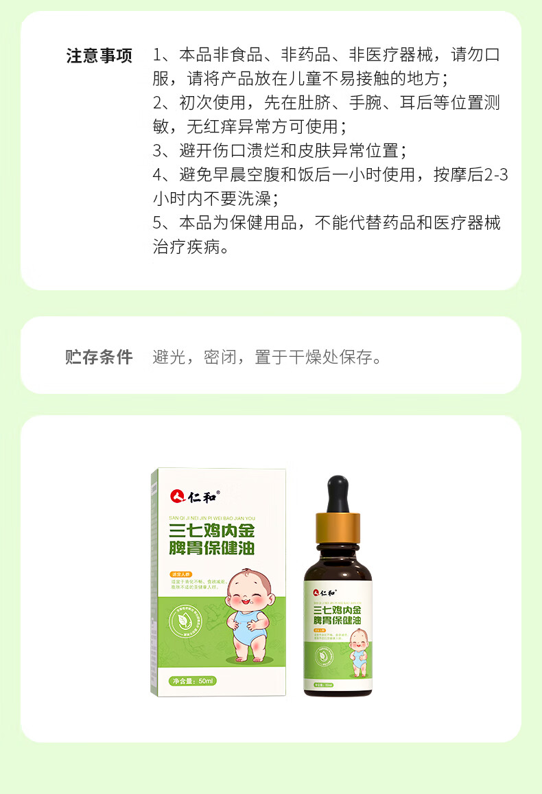 仁和小儿推拿精油温通健脾胃儿童按摩鸡内金推拿油免洗开背精油50ml