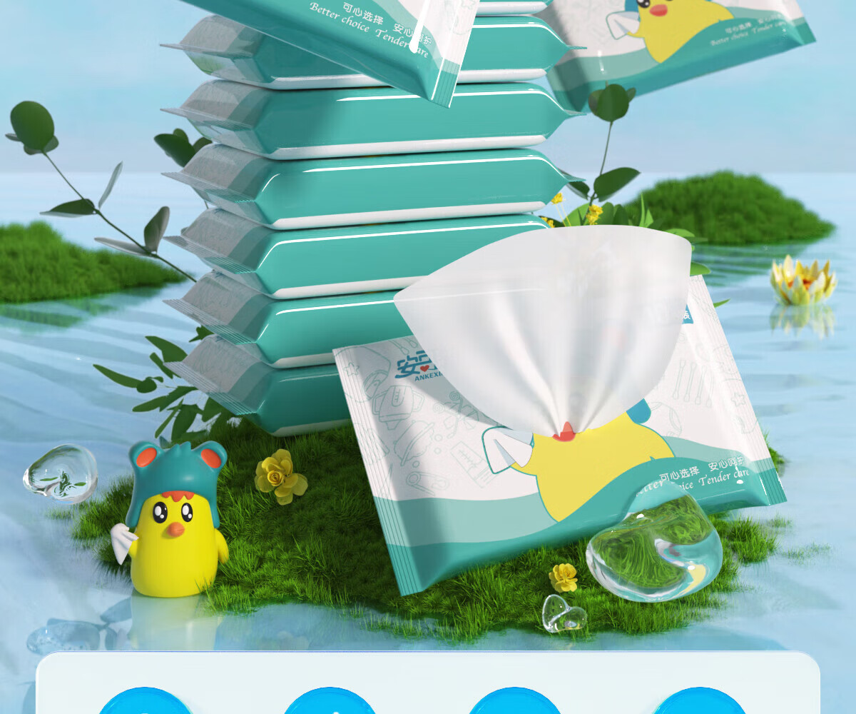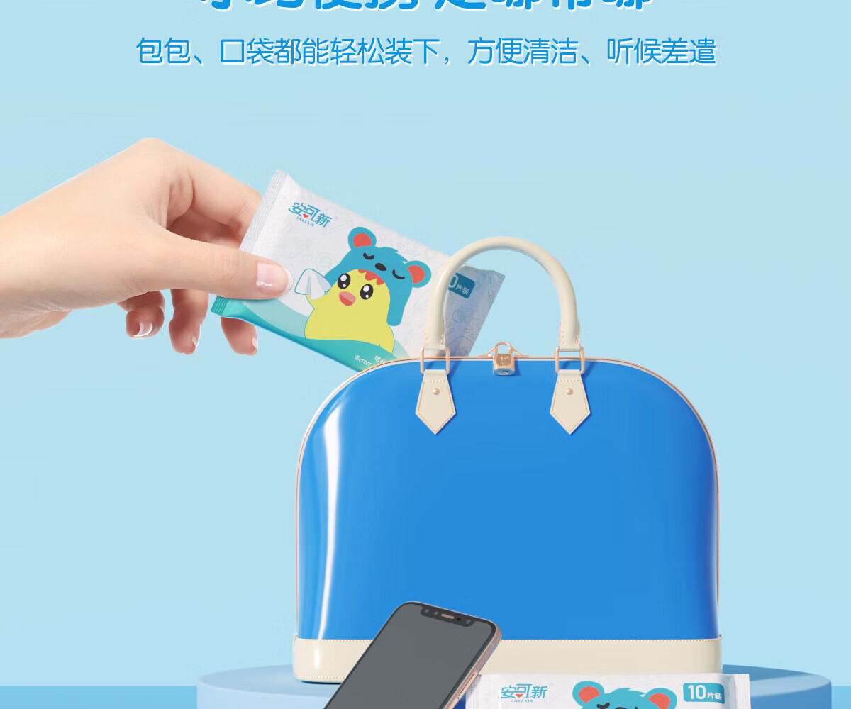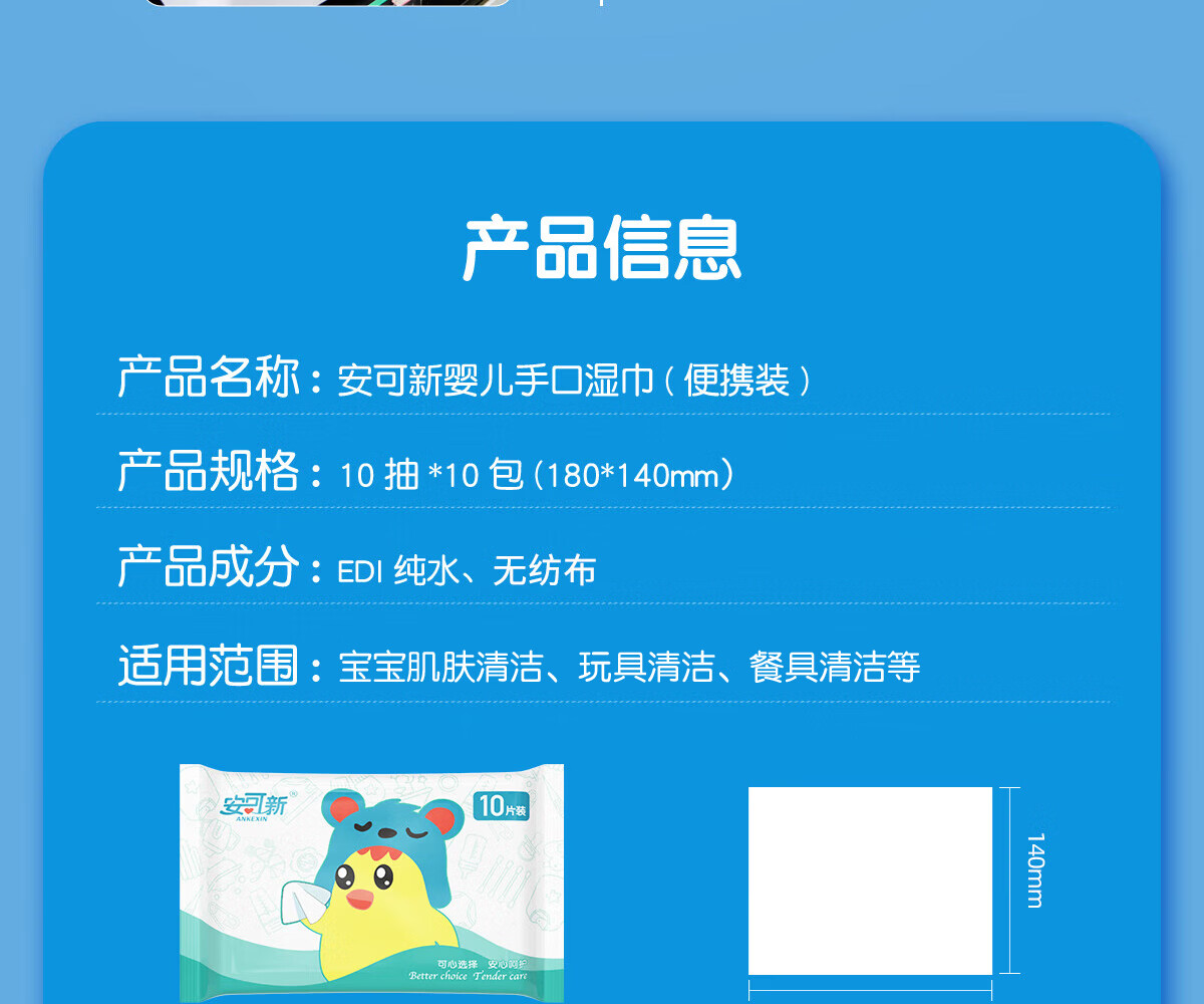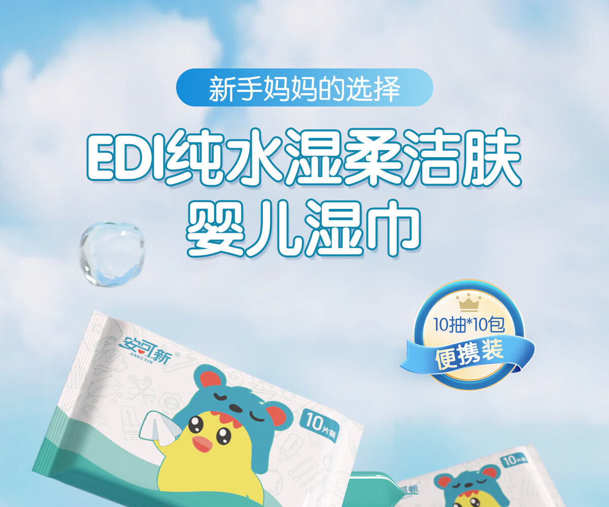 安可新婴儿手口湿巾10抽*10包宝宝湿纸巾便携小包学生儿童出行随身装