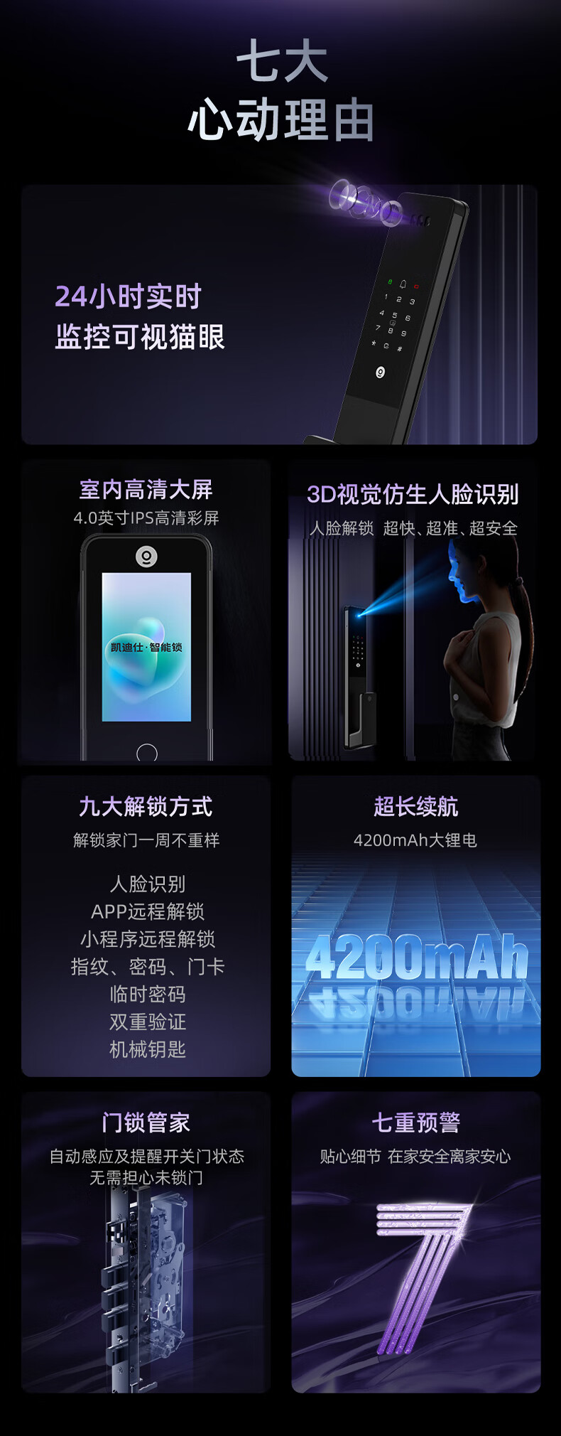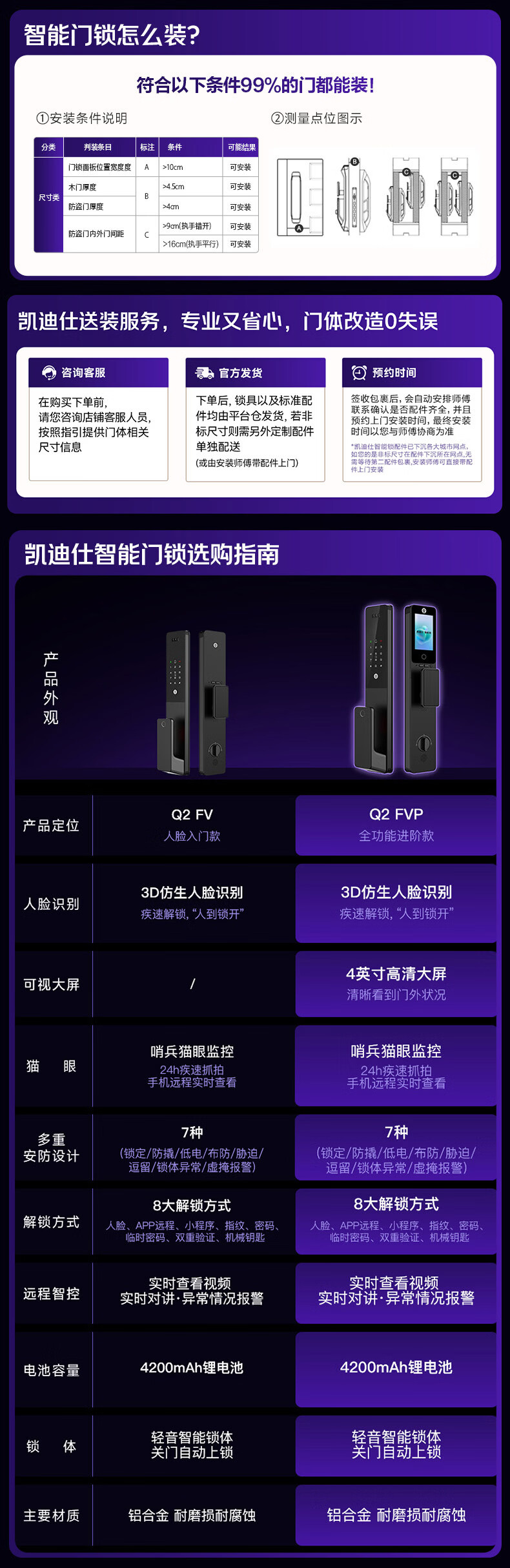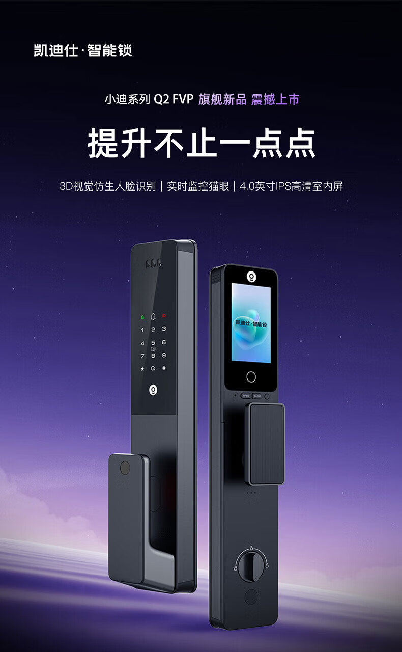 凯迪仕(KAADAS)Q2 FVP智能门锁 3D人脸识别猫眼大屏指纹密码锁全自动智能防盗锁 Q2 FV