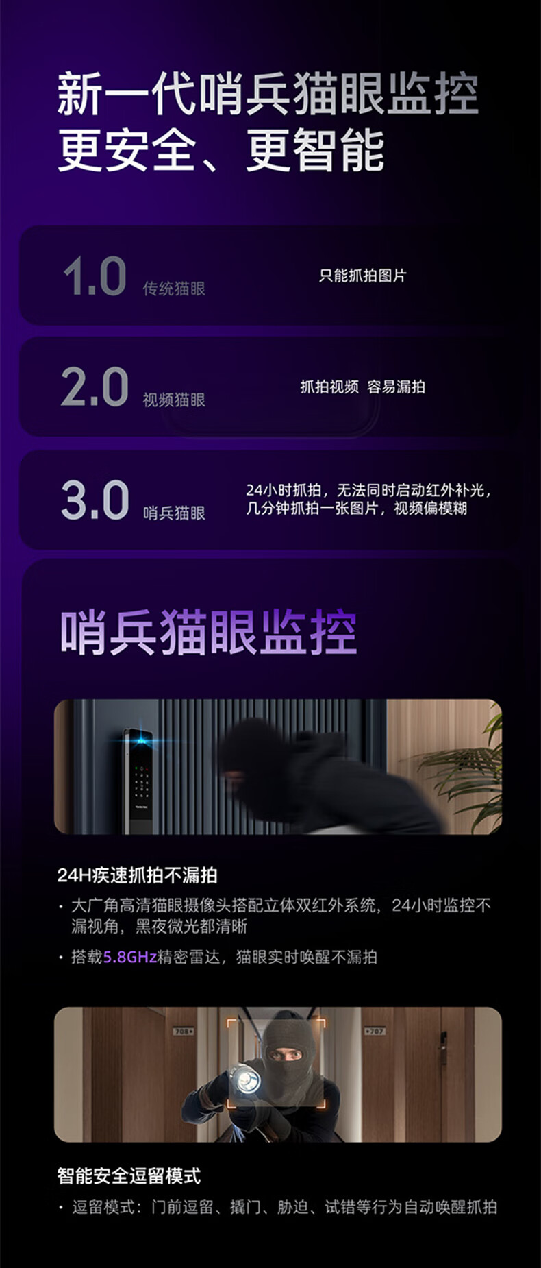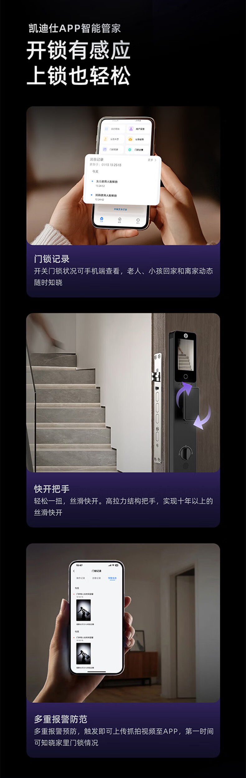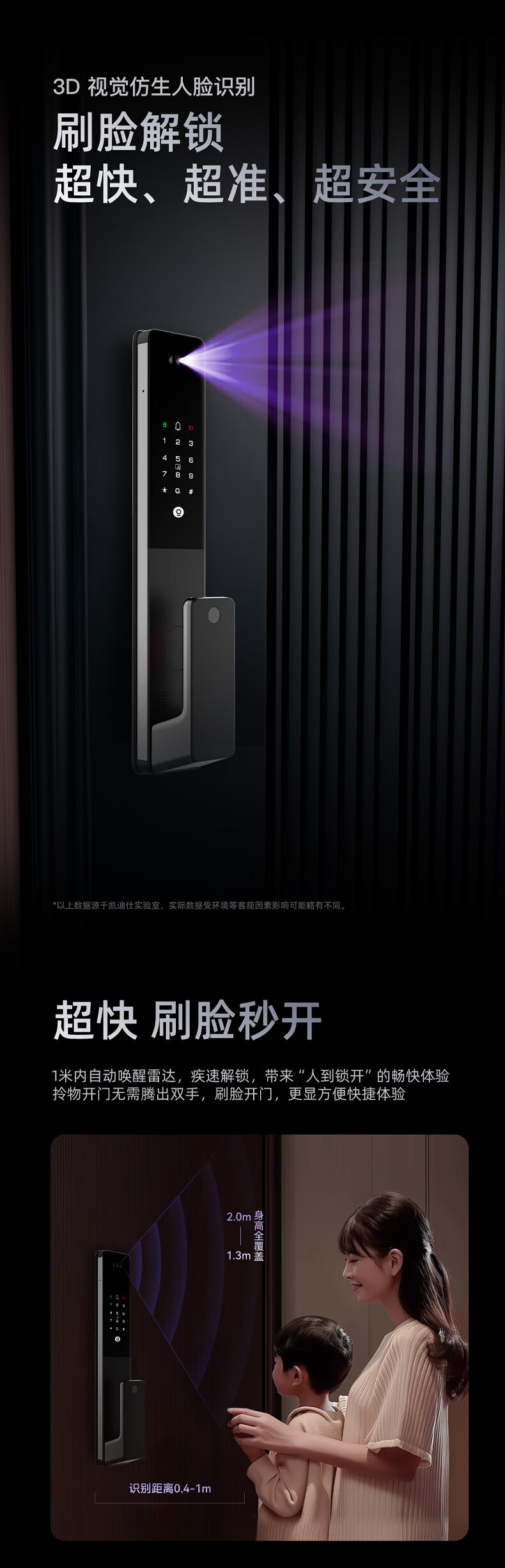 凯迪仕(KAADAS)Q2 FVP智能门锁 3D人脸识别猫眼大屏指纹密码锁全自动智能防盗锁 Q2 FV