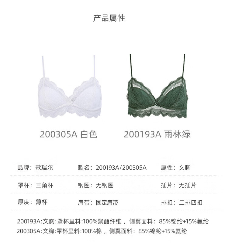 Gainreel歌瑞尔舒适透气性感蕾丝内衣女无钢圈法式三角杯柔软支撑上托减龄文胸罩 白肤色220371A 80C